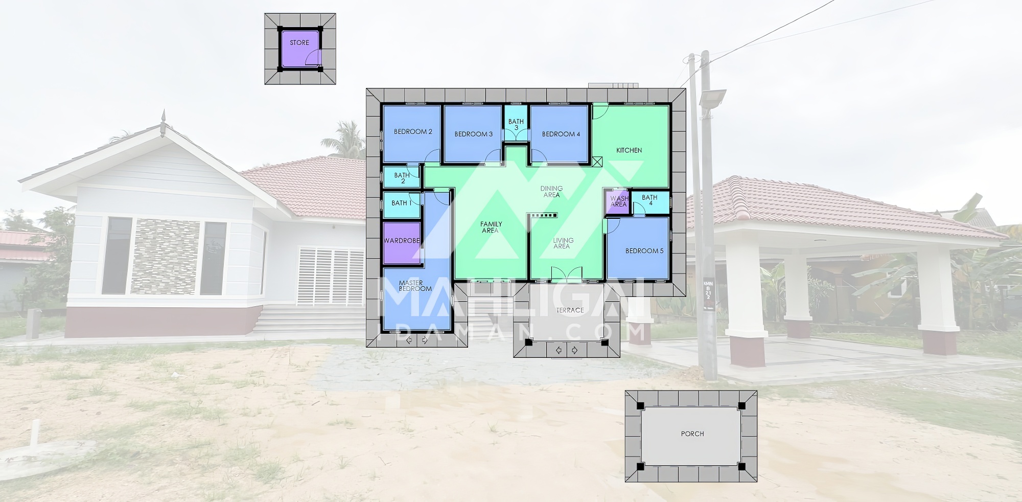 Banglo satu tingkat milik klien kami Encik Faiez telah siap dibina sepenuhnya di Kemumin, Kota Bharu, Kelantan. Banglo ini dilengkapi dengan lima (5) bilik tidur dan empat (4) bilik air. Banglo yang berkeluasan 2,555 kaki persegi ini menggabungkan ciri-ciri banglo moden iaitu dari segi rekabentuk dalaman dan luaran yang sangat menarik dari segi penggunaan warna biru pastel dan maroon. Bahagian dalam rumah pula mereka memilih warna putih menaikkan lagi seri dan kemewahan dalam rumah.