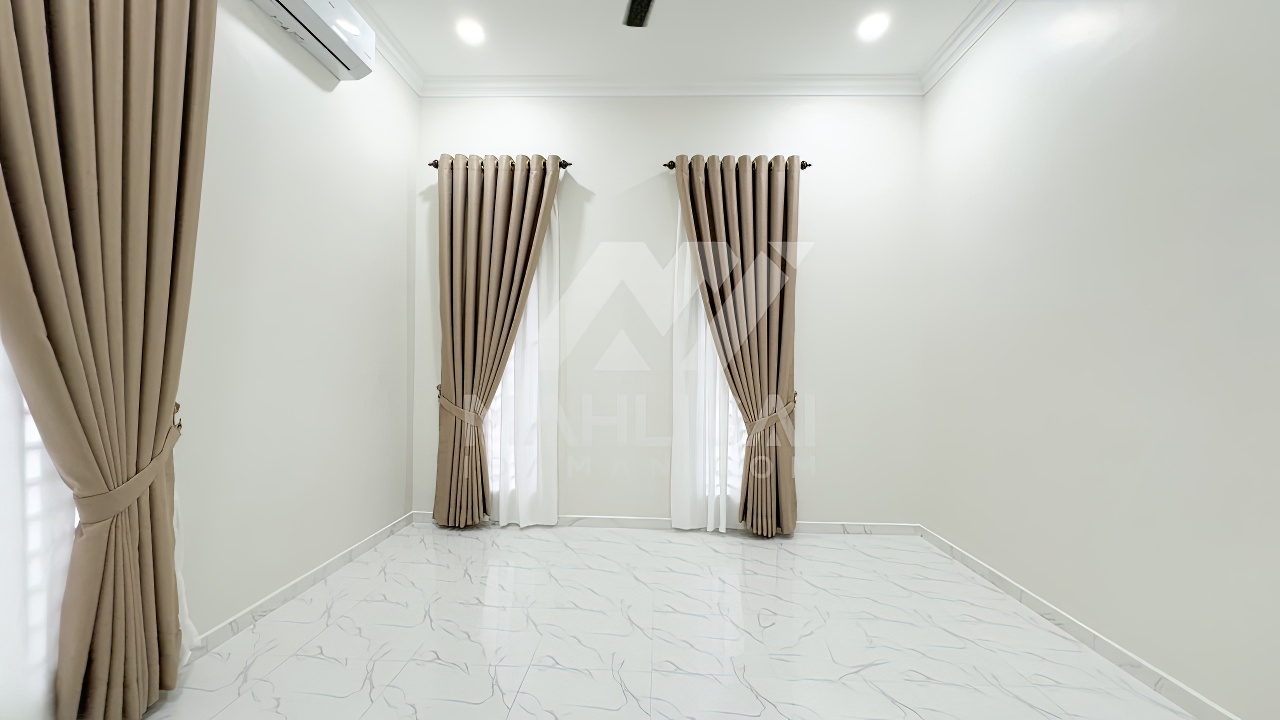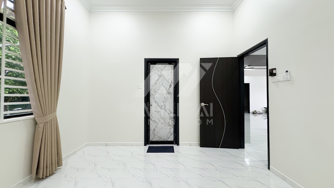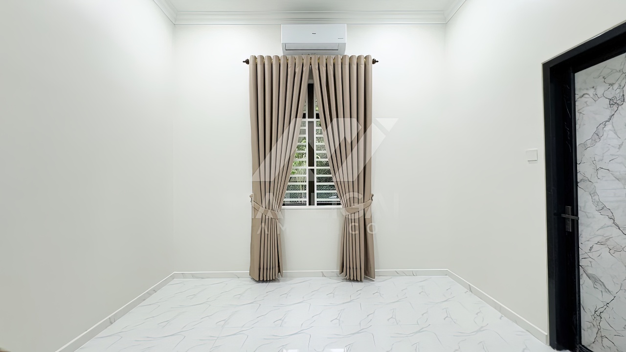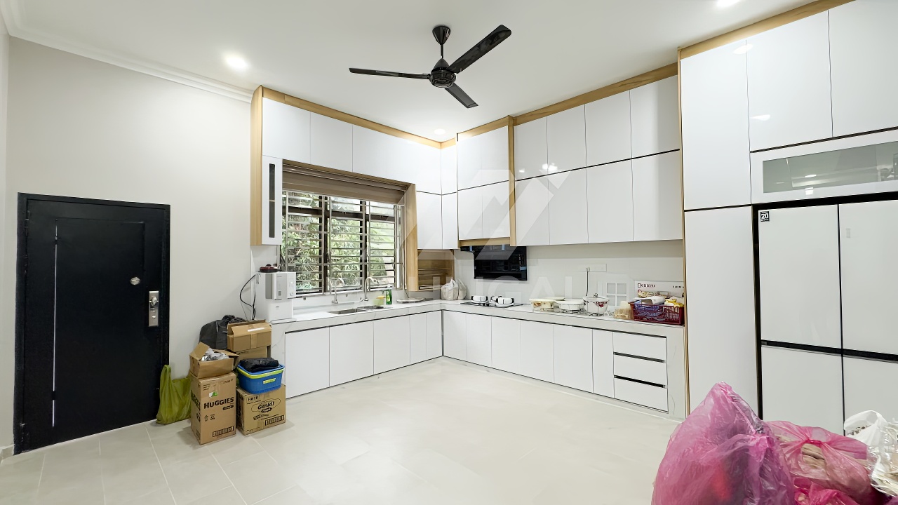Banglo ini dibina dengan spesifikasi asas pakej gold dengan penambahan aksesori iaitu pemasangan cornice pada keseluruhan tingkap dan dinding luar rumah, groove line pada dinding di bahagian luar rumah