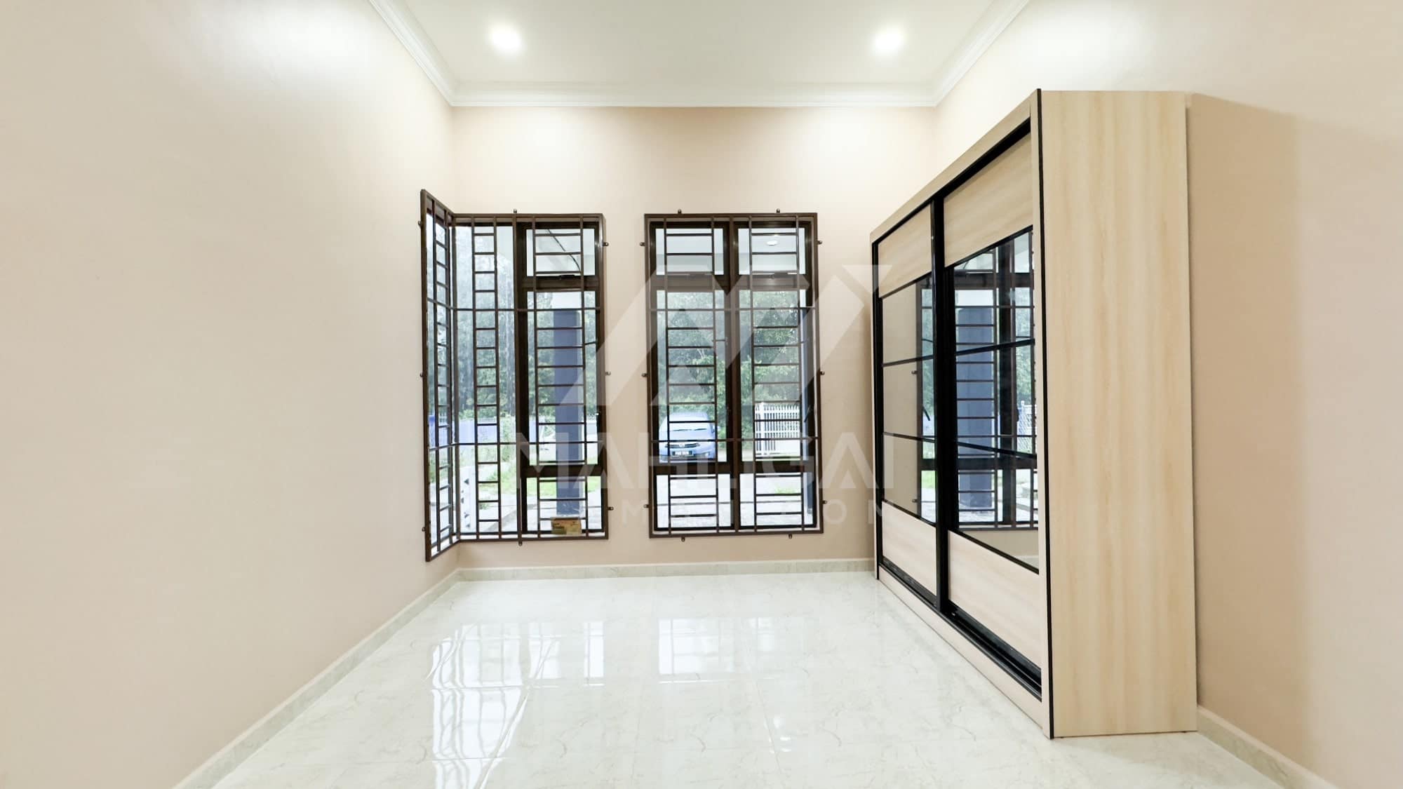 Banglo ini dibina dengan spesifikasi asas Pakej Gold dengan penambahan aksesori iaitu pemasangan cornice pada keseluruhan tingkap dan dinding luar rumah, groove line pada dinding di bahagian luar rumah.