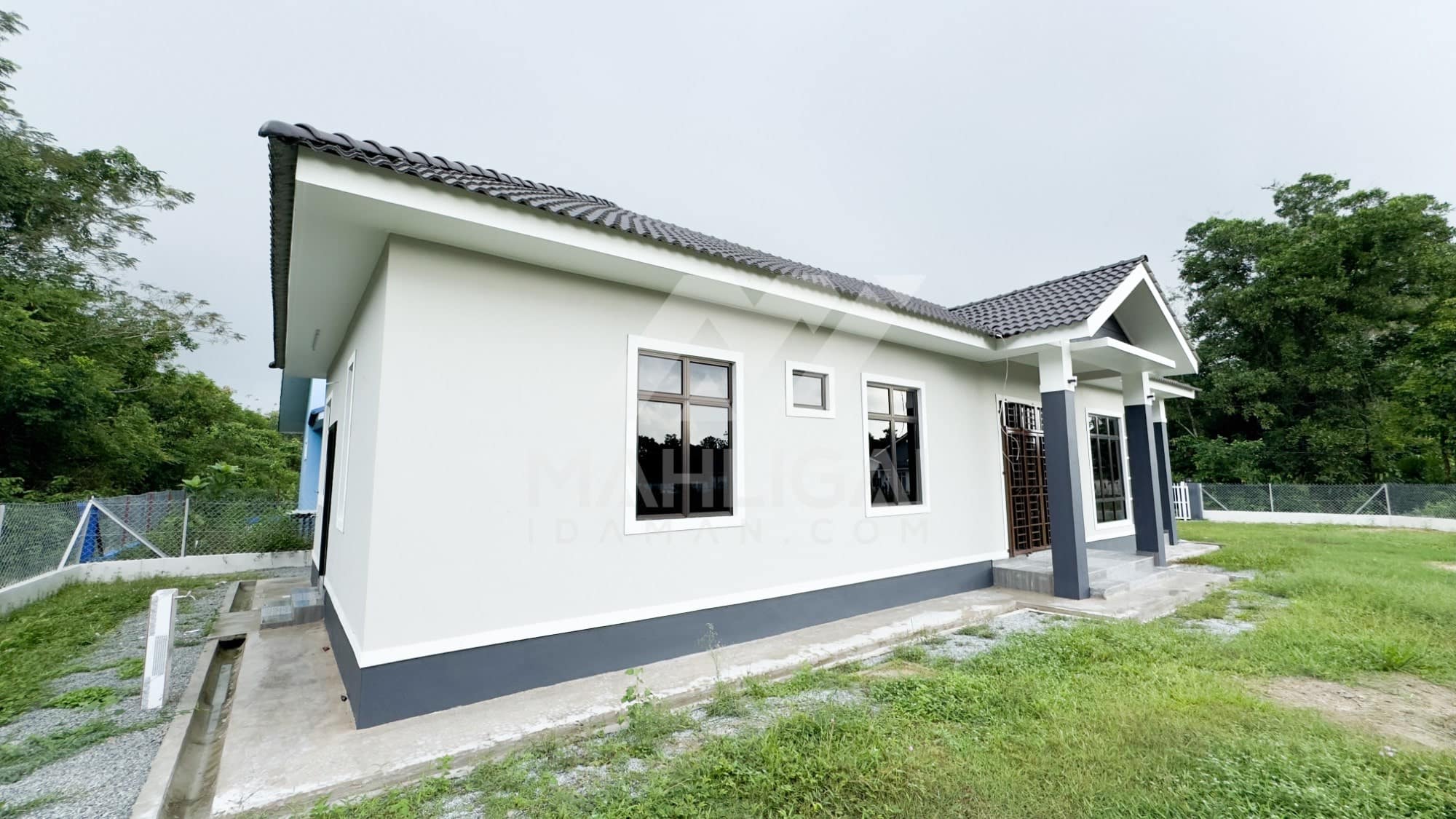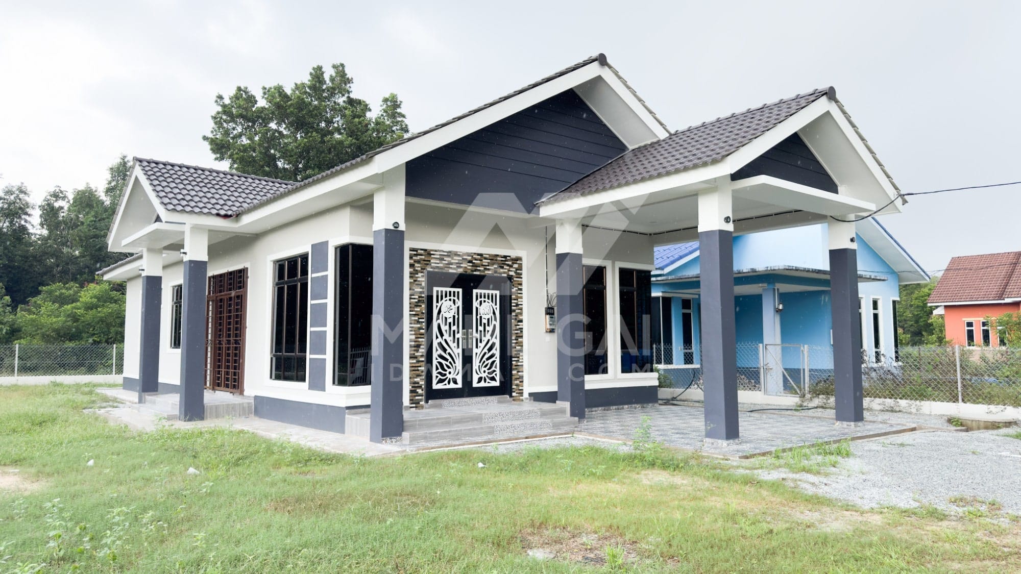 Kini banglo 1 tingkat milik klien kami Puan Farhanis telah siap dibina sepenuhnya di Kg Padang Pak Amat, Pasir Puteh, Kelantan. Banglo ini dilengkapi dengan tiga bilik tidur dan tiga bilik air. Banglo yang berkeluasan 1,508 kaki persegi ini menggabungkan ciri-ciri banglo moden iaitu dari segi rekabentuk dalaman dan luaran yang sangat menarik dari segi penggunaan silver biru. Bahagian dalam rumah pula mereka memilih warna putih dan ungu menaikkan lagi seri dan kemewahan dalam rumah.