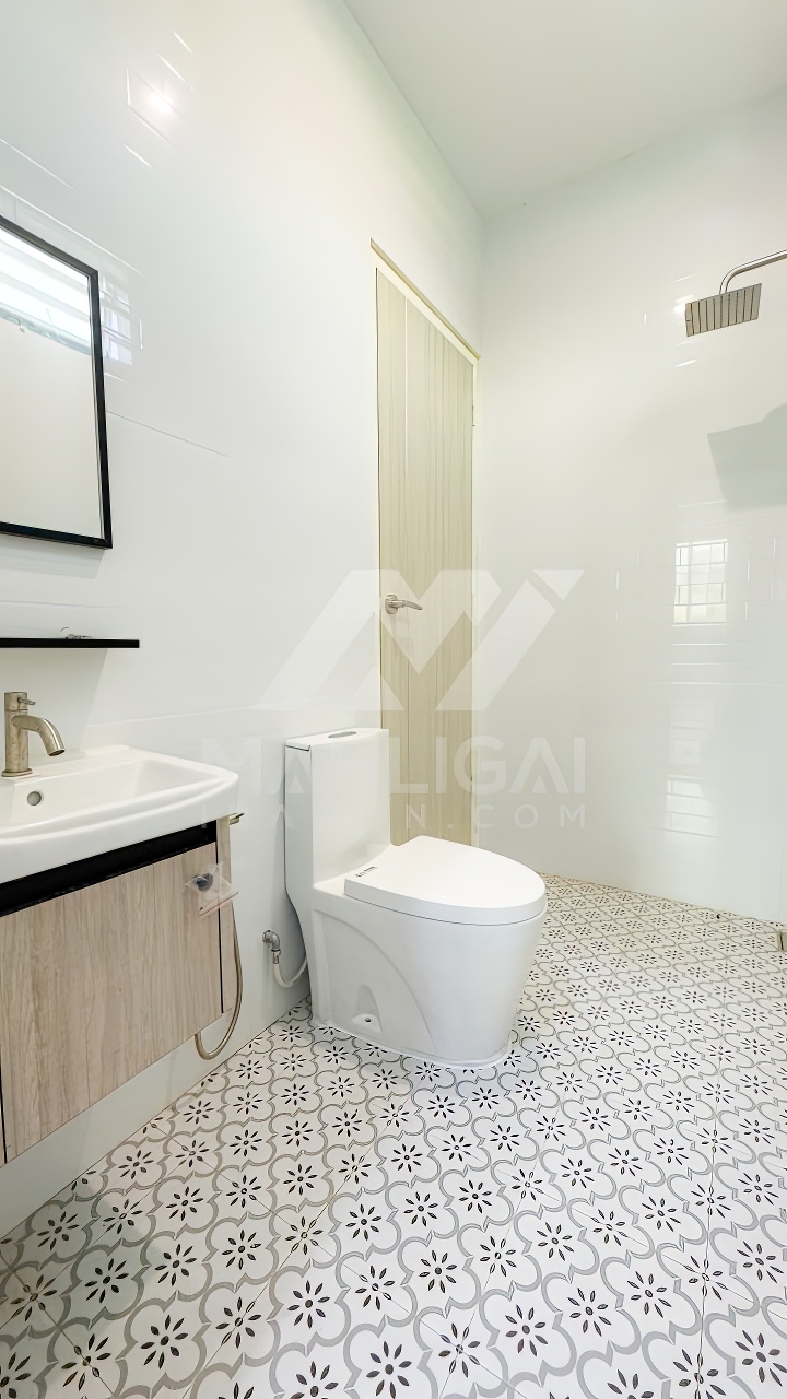 Banglo ini dibina dengan spesifikasi asas pakej gold dengan penambahan aksesori iaitu pemasangan cornice pada keseluruhan tingkap dan dinding luar rumah, groove line pada dinding di bahagian luar rumah