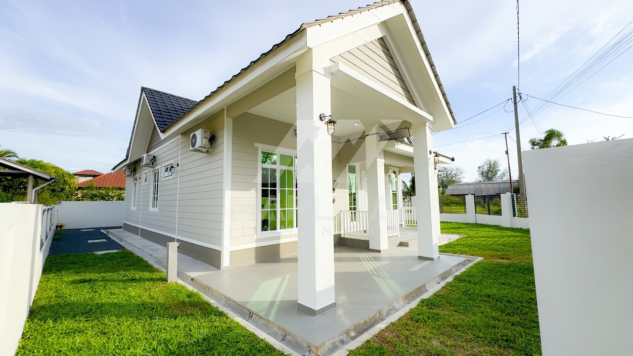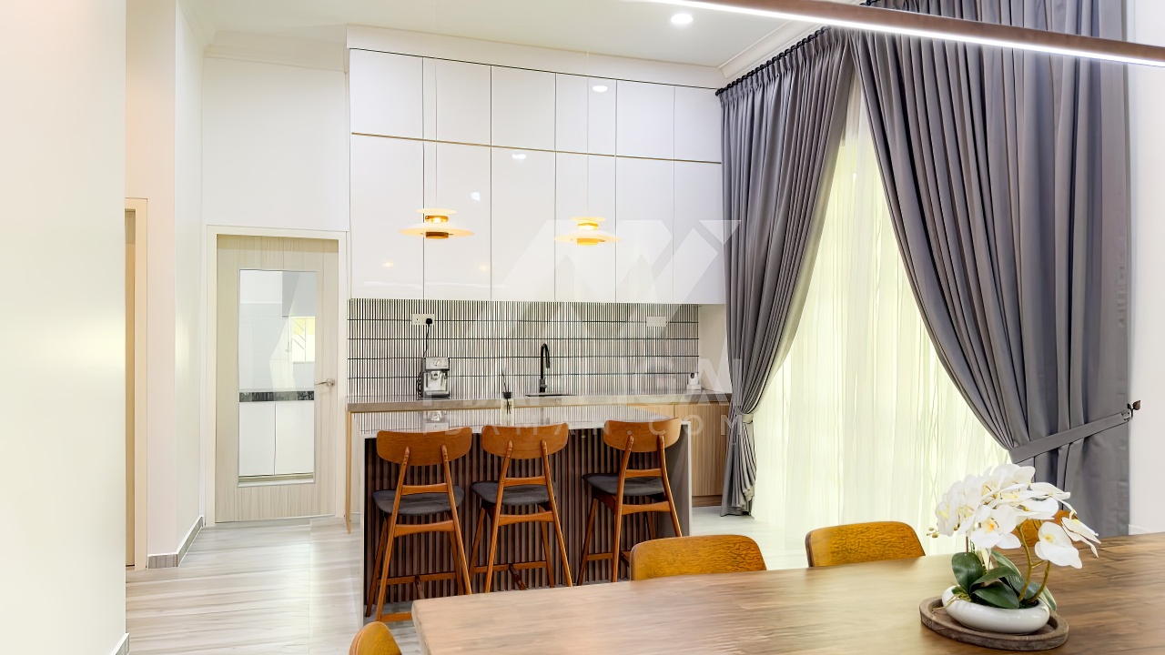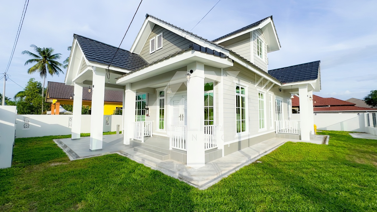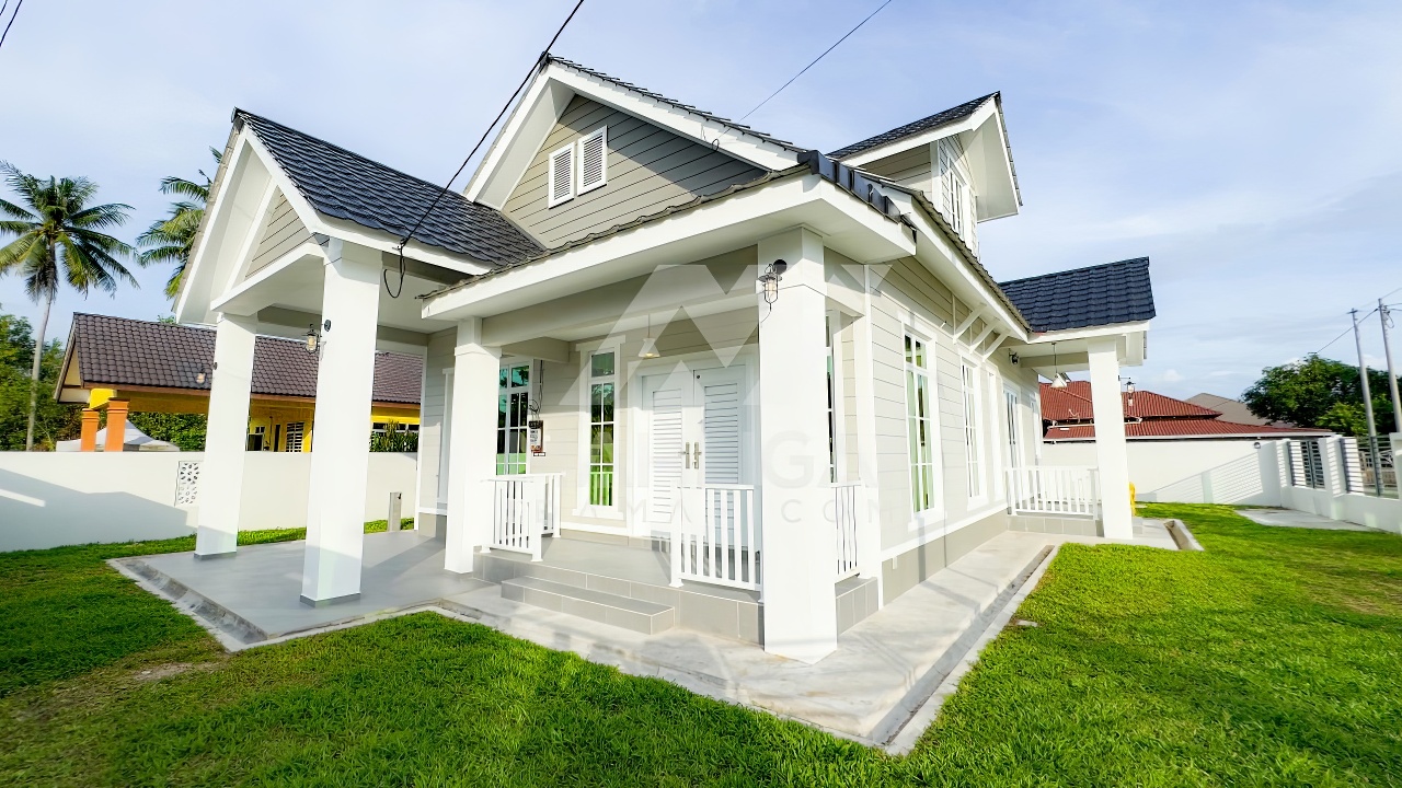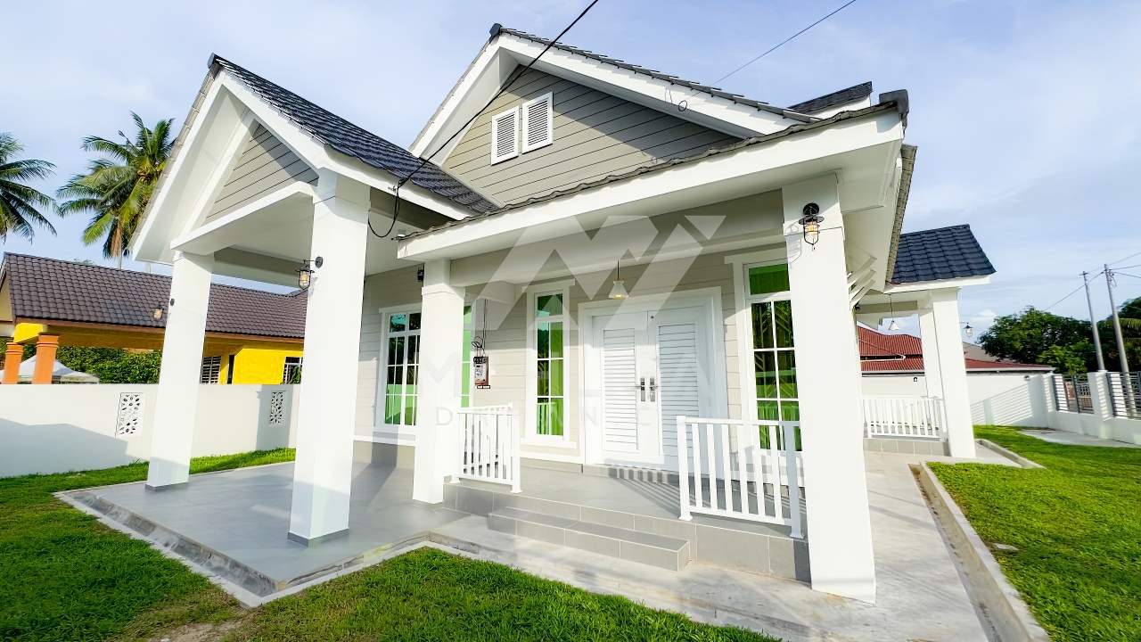 Banglo ini dibina dengan spesifikasi asas pakej gold dengan penambahan aksesori iaitu pemasangan cornice pada keseluruhan tingkap dan dinding luar rumah, groove line pada dinding di bahagian luar rumah