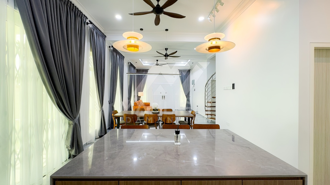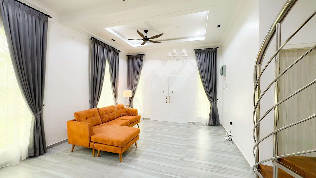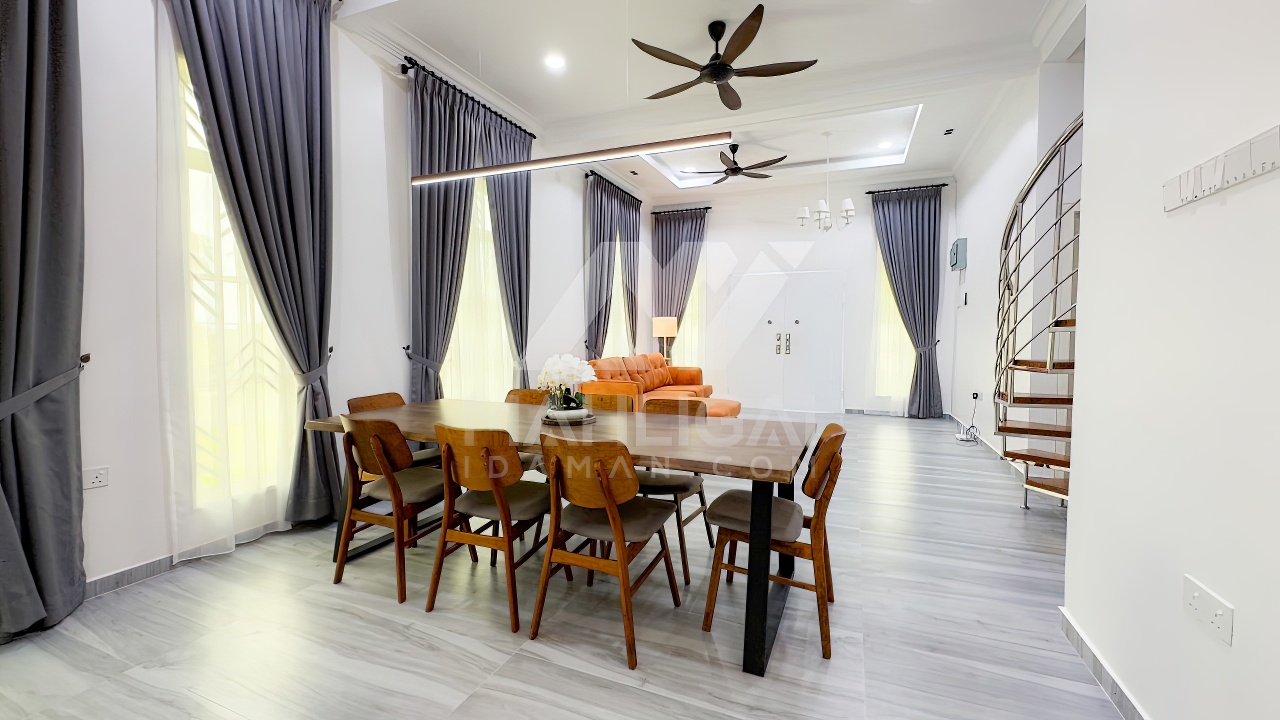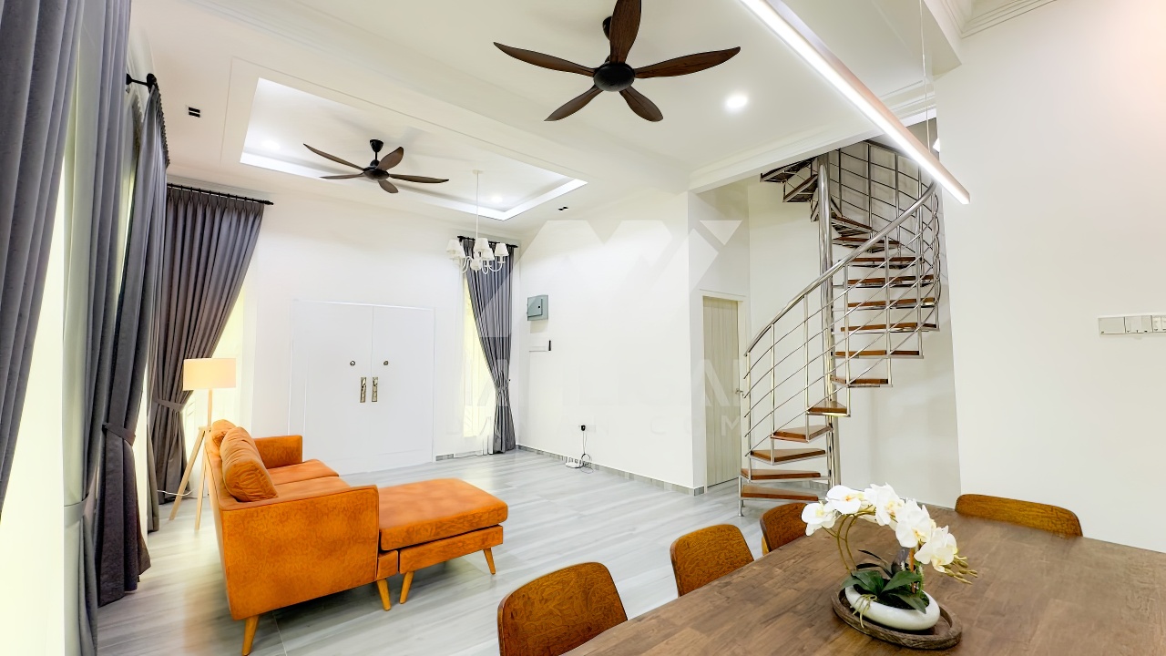 Banglo ini dibina dengan spesifikasi asas pakej gold dengan penambahan aksesori iaitu pemasangan cornice pada keseluruhan tingkap dan dinding luar rumah, groove line pada dinding di bahagian luar rumah