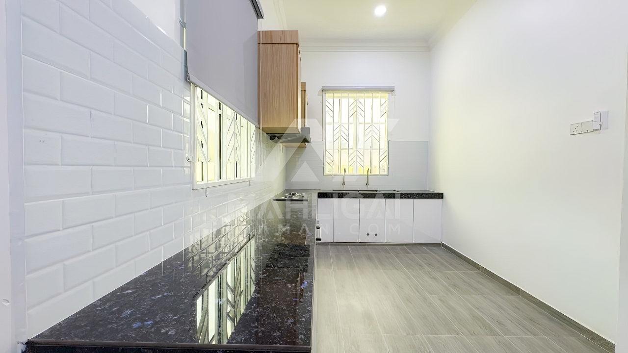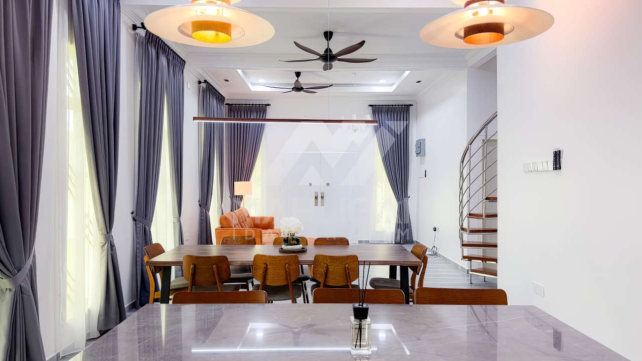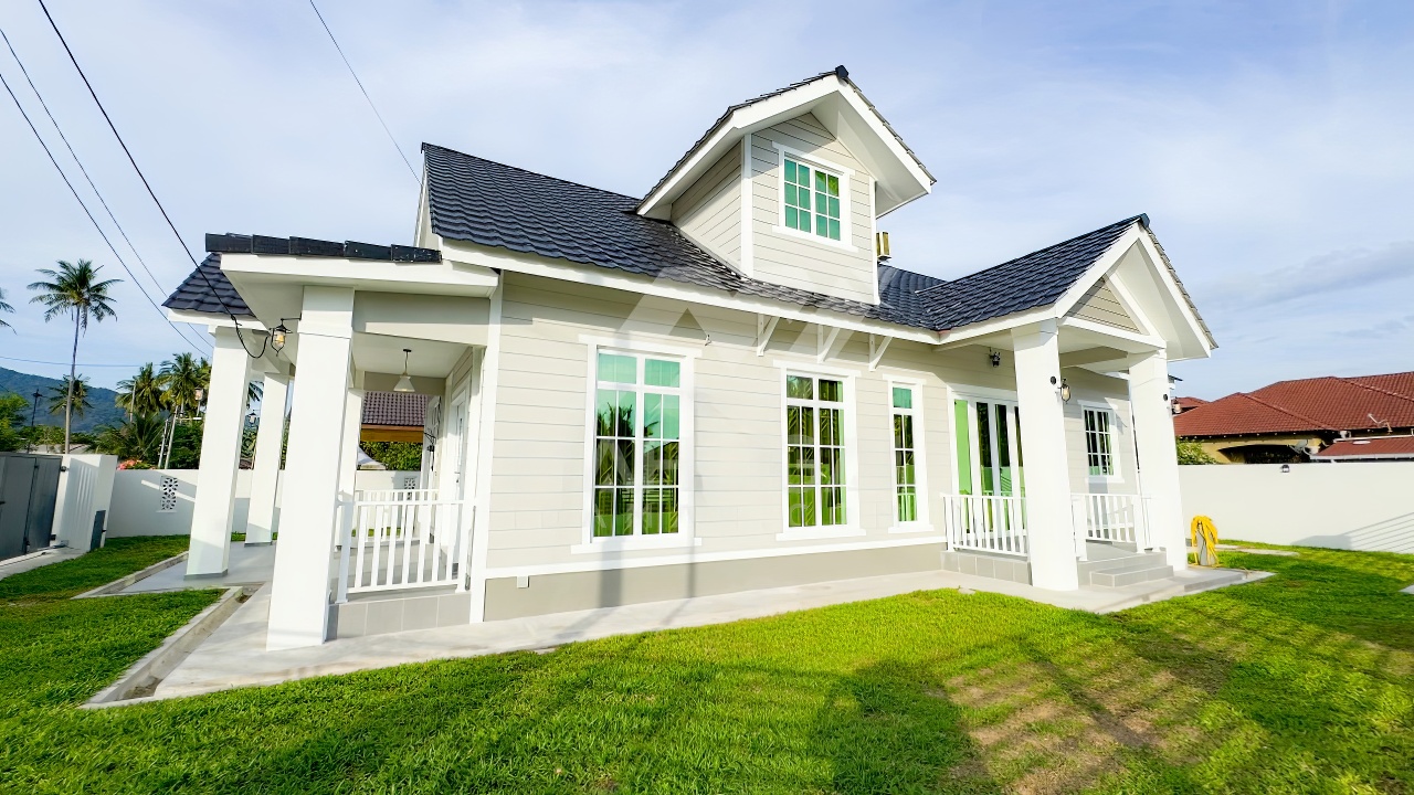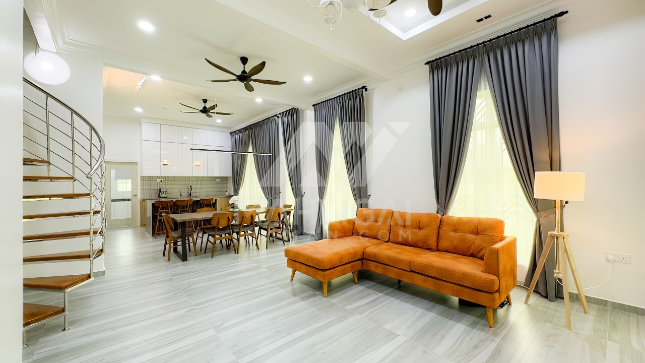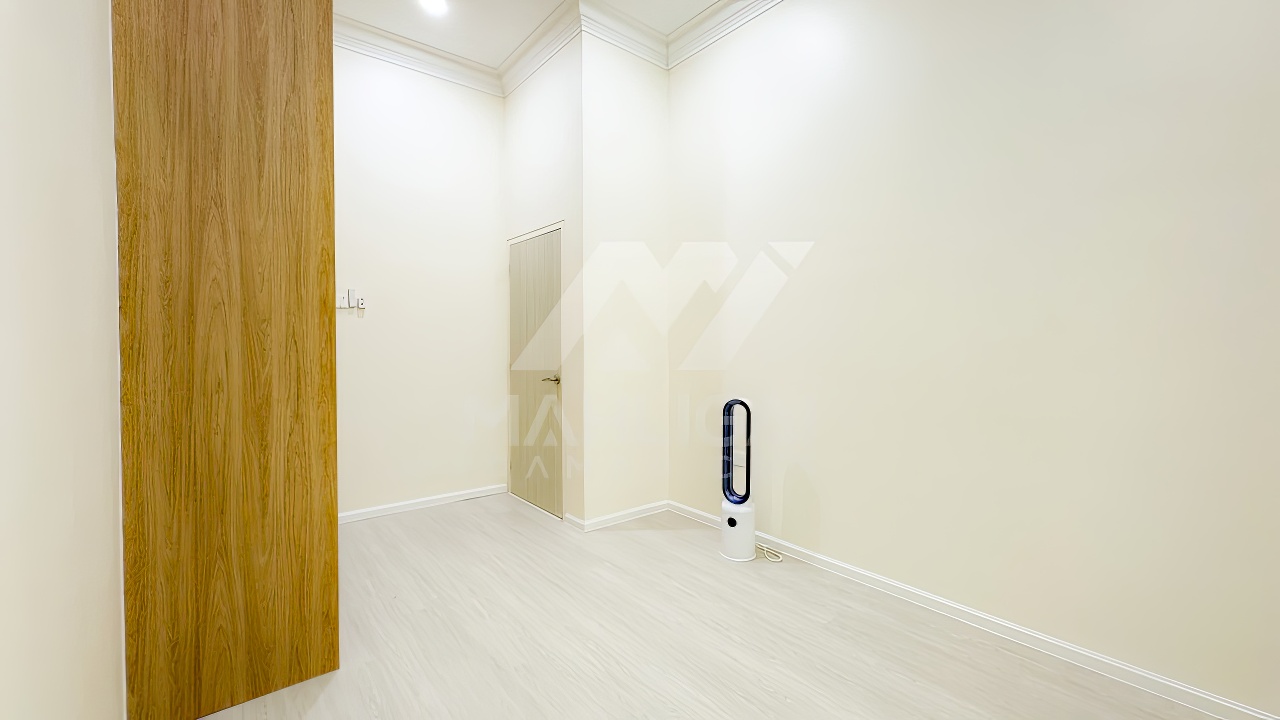 Banglo ini dibina dengan spesifikasi asas pakej gold dengan penambahan aksesori iaitu pemasangan cornice pada keseluruhan tingkap dan dinding luar rumah, groove line pada dinding di bahagian luar rumah