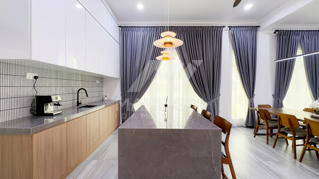 Banglo dua tingkat milik klien kami Tuan Zainol Abidin kini telah siap dibina sepenuhnya di Pantai Sura, Dungun, Terengganu. Banglo ini dilengkapi dengan tiga (3) bilik tidur dan tiga (3) bilik air. Banglo yang berkeluasan 1,755 kaki persegi ini menggabungkan ciri-ciri banglo moden iaitu dari segi rekabentuk dalaman dan luaran yang sangat menarik dari segi penggunaan warna beige. Bahagian dalam rumah pula mereka memilih warna putih menaikkan lagi seri dan kemewahan dalam rumah.