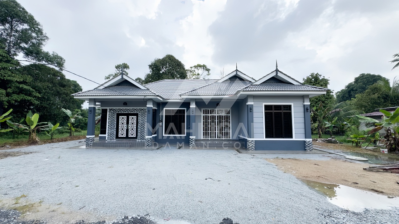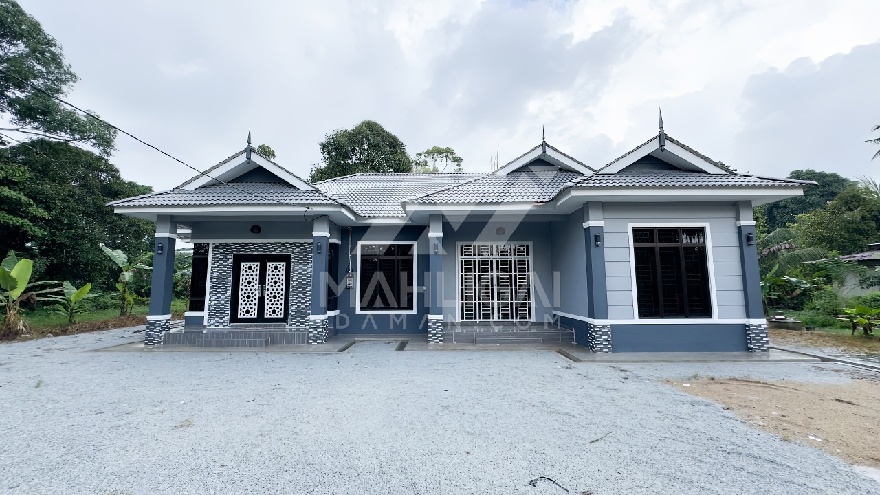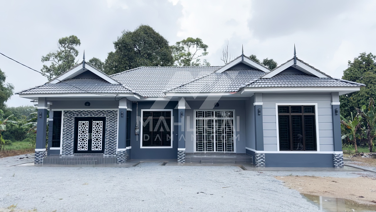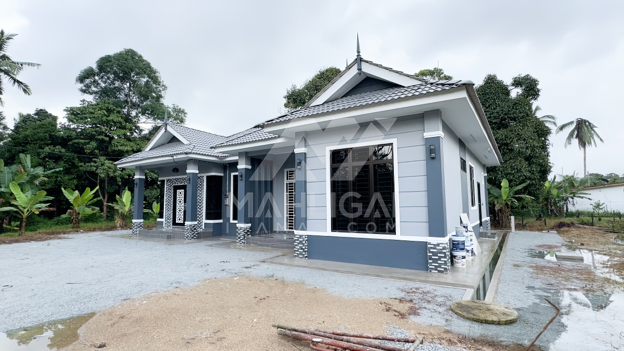 Banglo satu tingkat milik klien kami Puan Hafzan kini telah siap dibina sepenuhnya di Kg Gaal, Pasir Puteh, Kelantan. Banglo ini dilengkapi dengan lima (5) bilik tidur dan tiga (3) bilik air. Banglo yang berkeluasan 1,954 kaki persegi ini menggabungkan ciri-ciri banglo moden iaitu dari segi rekabentuk dalaman dan luaran yang sangat menarik dari segi penggunaan warna biru dan silver. Bahagian dalam rumah pula mereka memilih warna putih dan beige menaikkan lagi seri dan kemewahan dalam rumah.