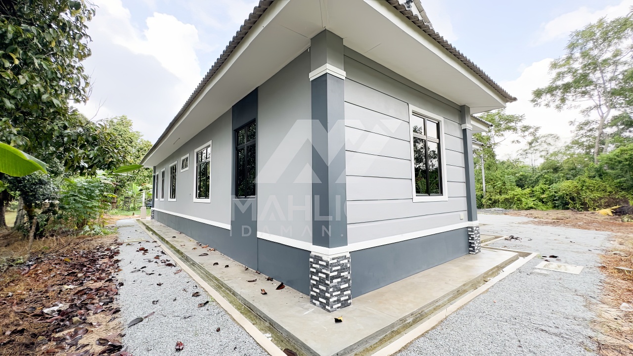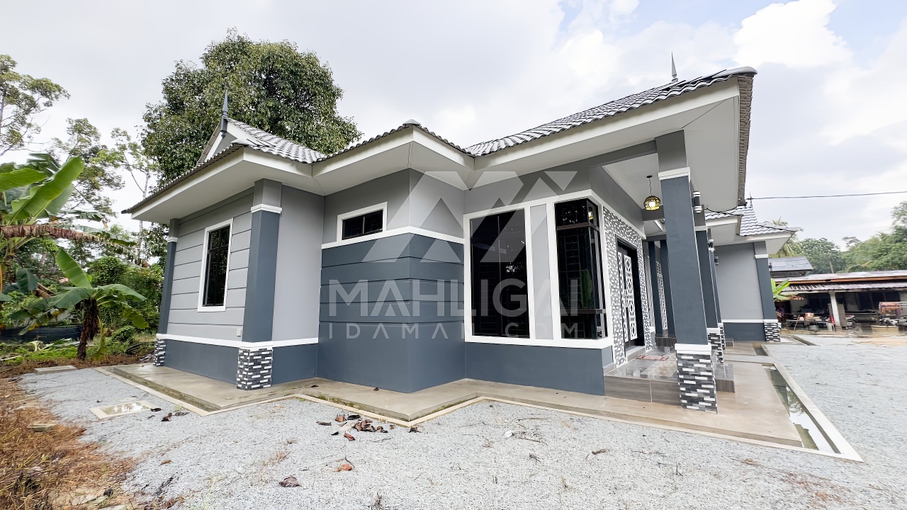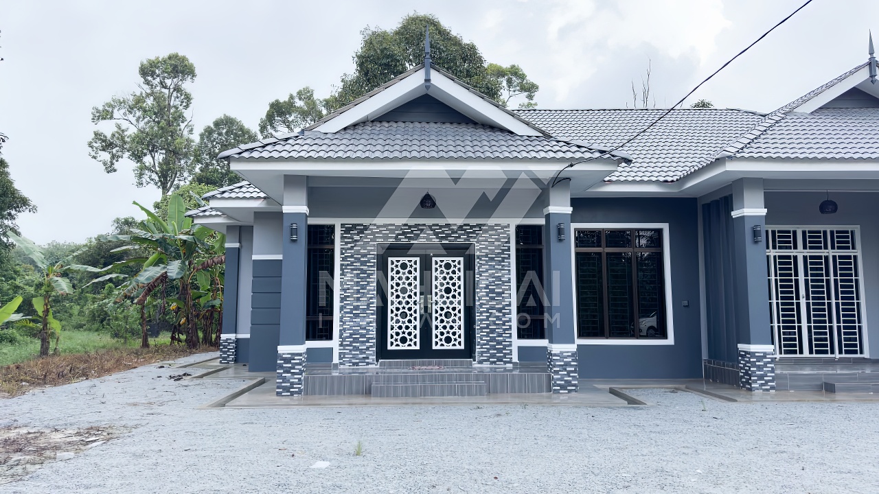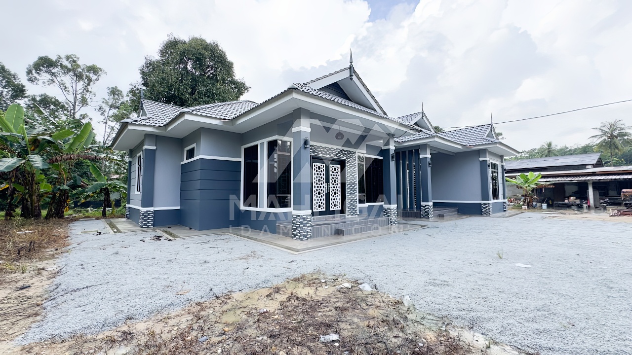 Banglo satu tingkat milik klien kami Puan Hafzan kini telah siap dibina sepenuhnya di Kg Gaal, Pasir Puteh, Kelantan. Banglo ini dilengkapi dengan lima (5) bilik tidur dan tiga (3) bilik air. Banglo yang berkeluasan 1,954 kaki persegi ini menggabungkan ciri-ciri banglo moden iaitu dari segi rekabentuk dalaman dan luaran yang sangat menarik dari segi penggunaan warna biru dan silver. Bahagian dalam rumah pula mereka memilih warna putih dan beige menaikkan lagi seri dan kemewahan dalam rumah.