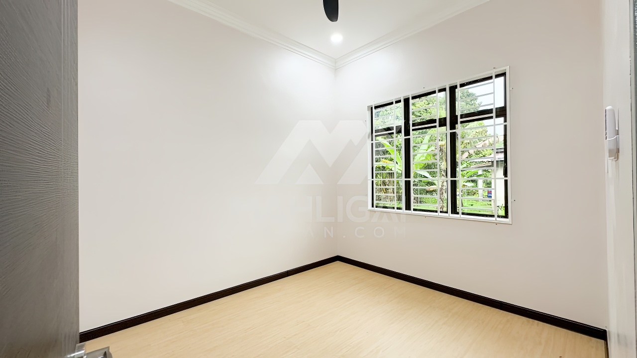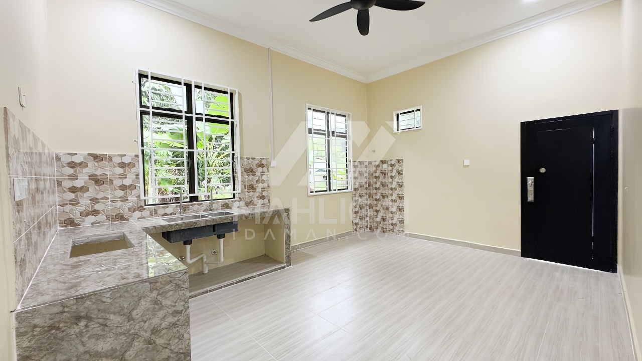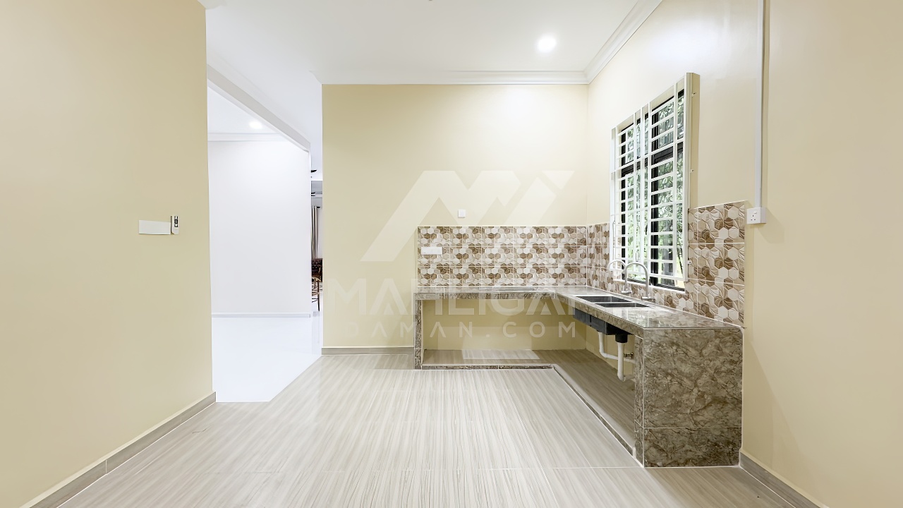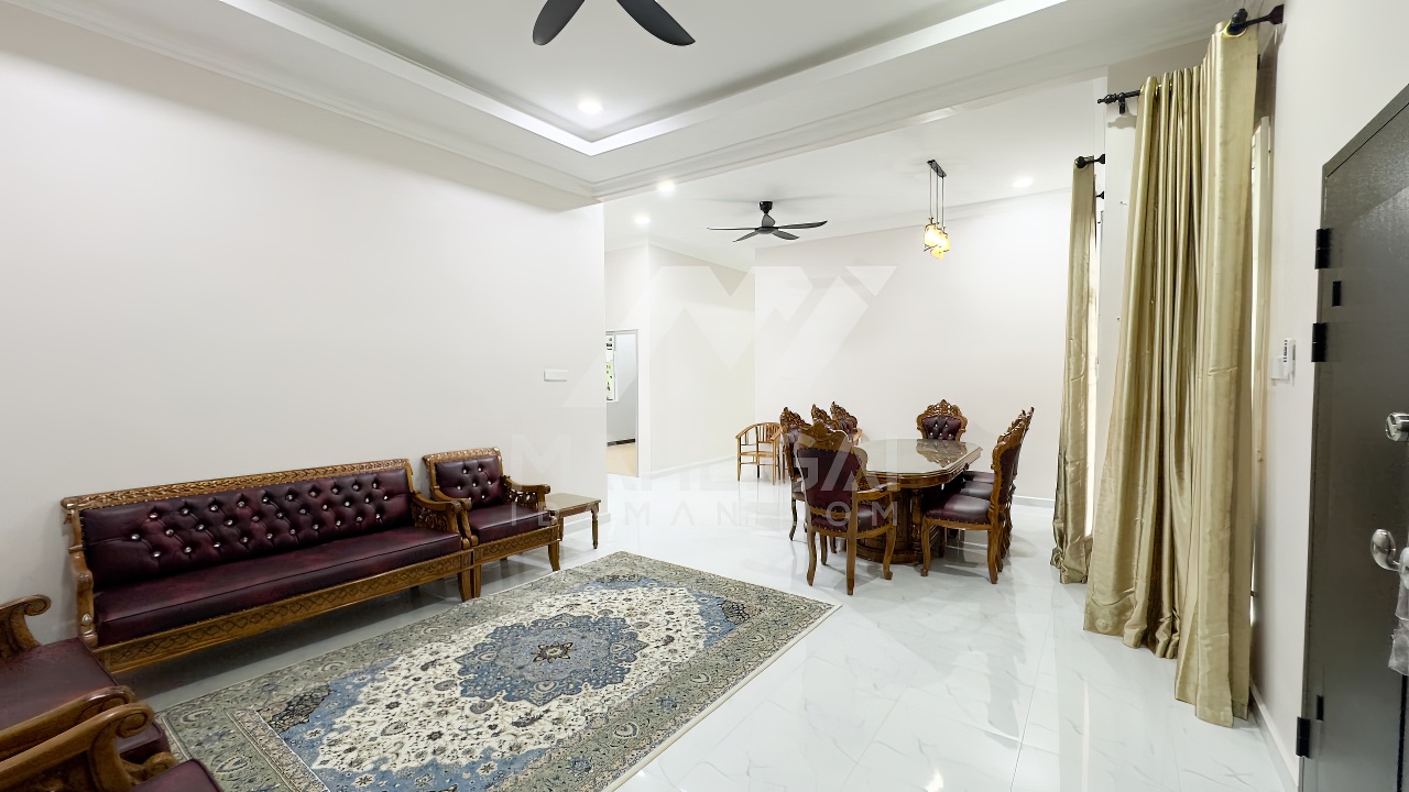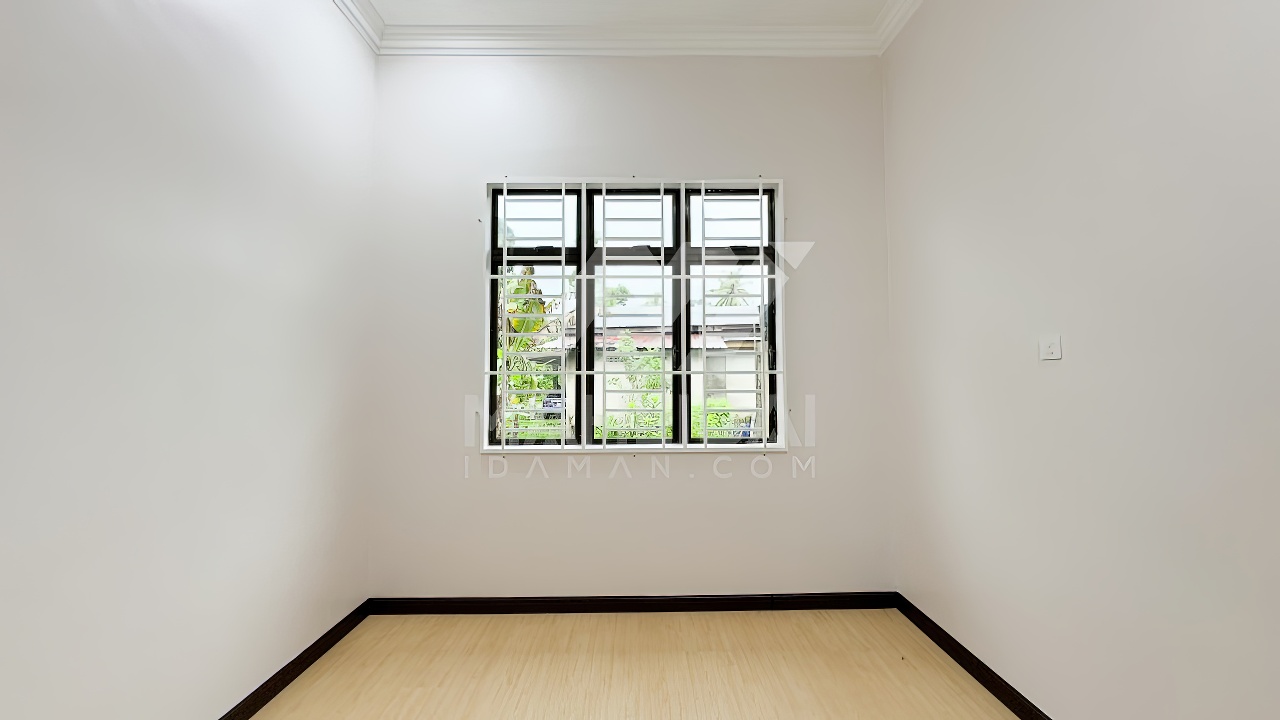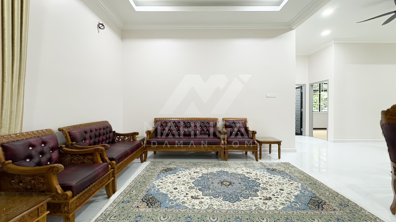 Banglo ini dibina dengan spesifikasi asas pakej silver dengan penambahan aksesori iaitu pemasangan cornice pada keseluruhan tingkap dan dinding luar rumah, groove line pada dinding di bahagian luar rumah