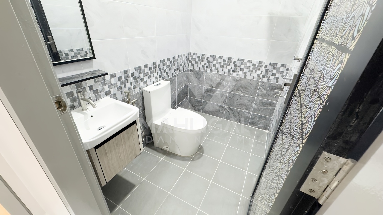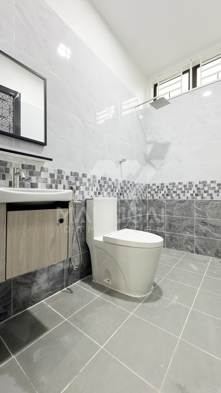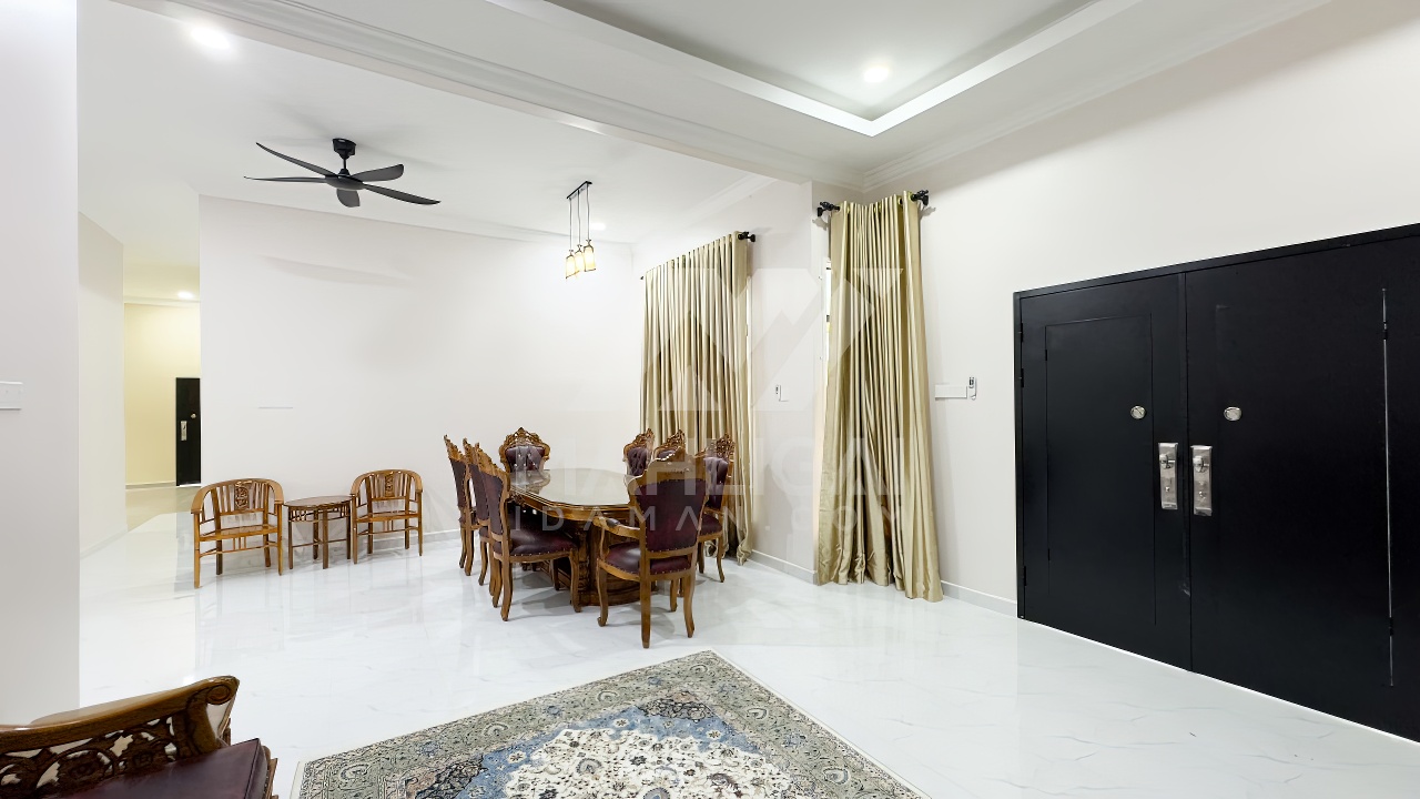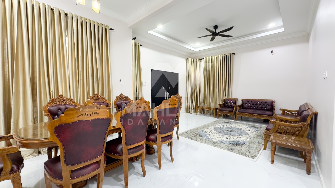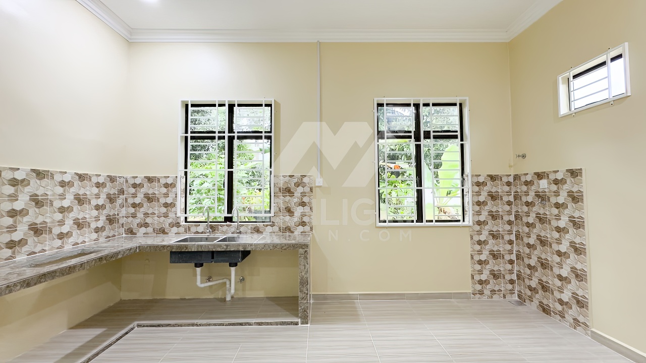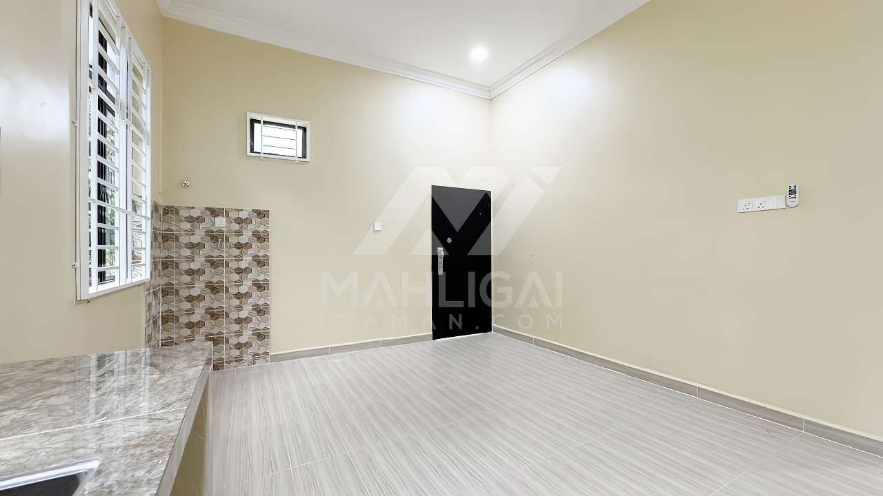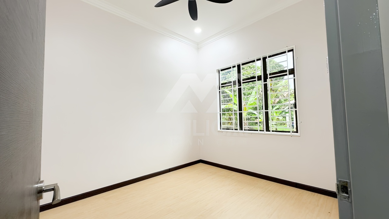 Banglo ini dibina dengan spesifikasi asas pakej silver dengan penambahan aksesori iaitu pemasangan cornice pada keseluruhan tingkap dan dinding luar rumah, groove line pada dinding di bahagian luar rumah