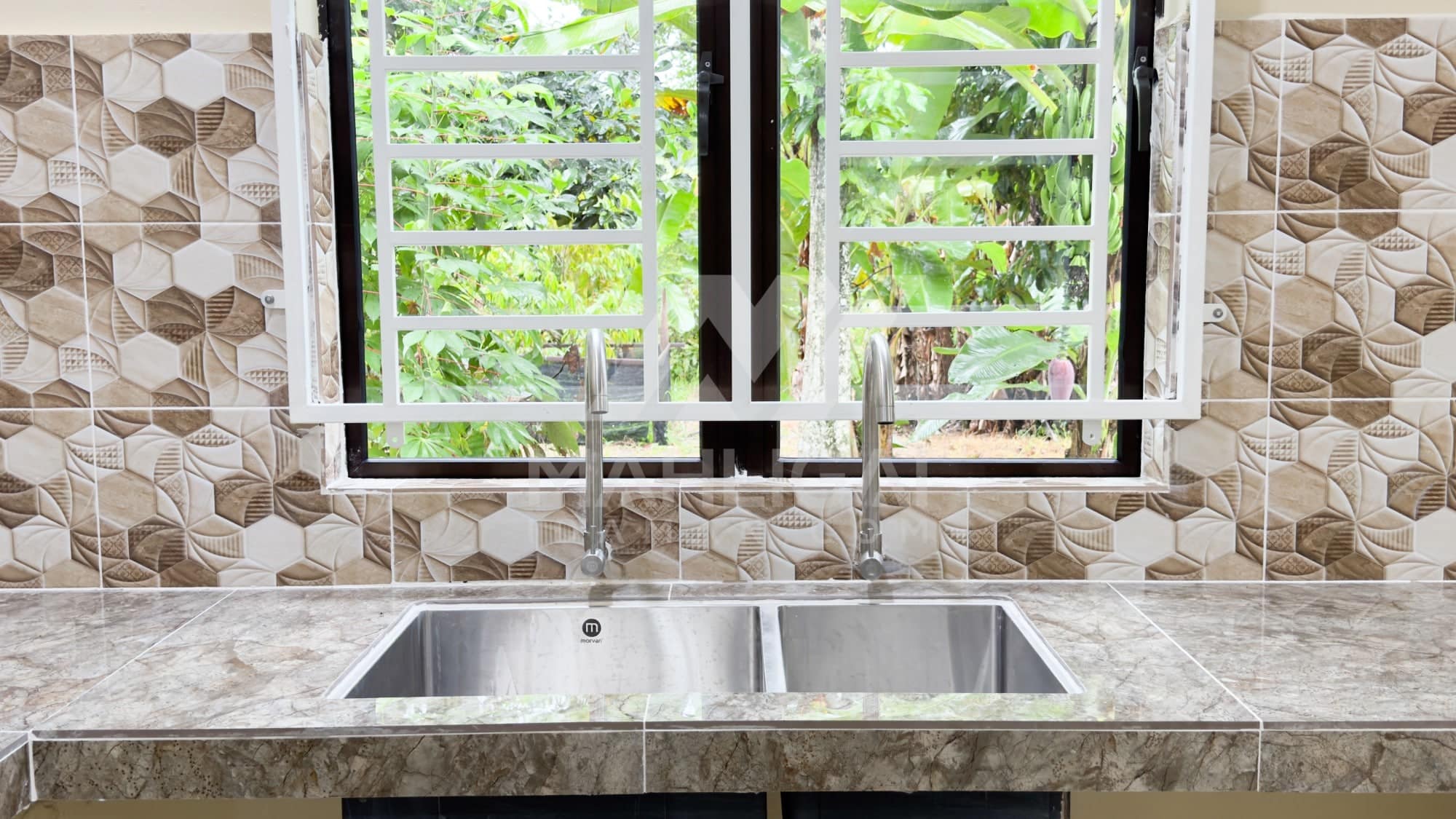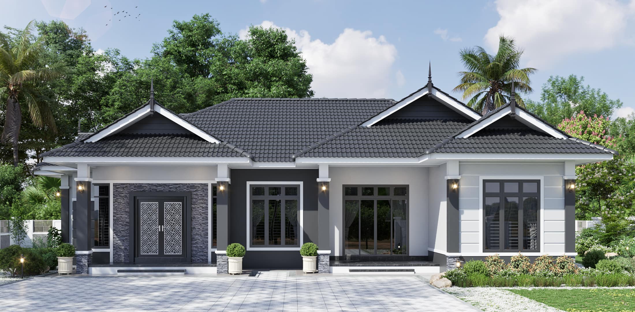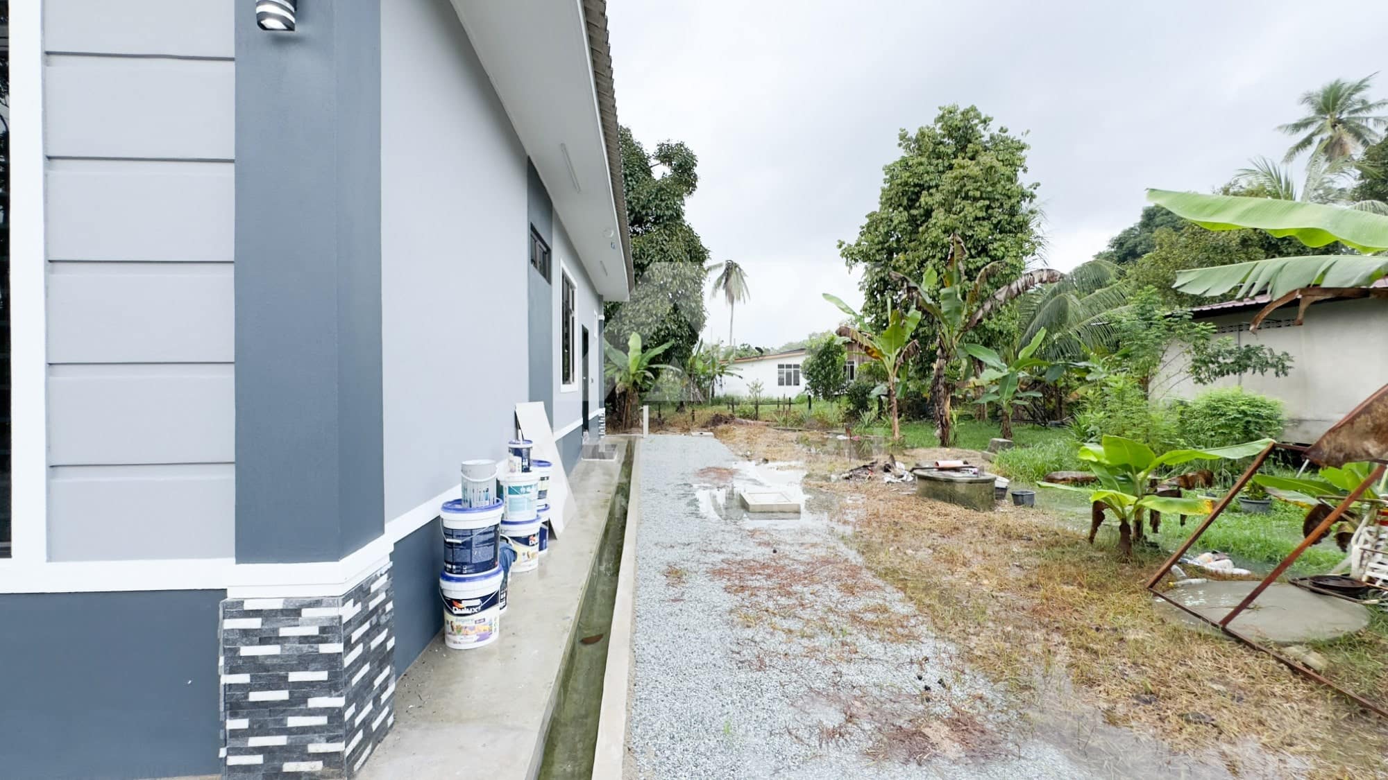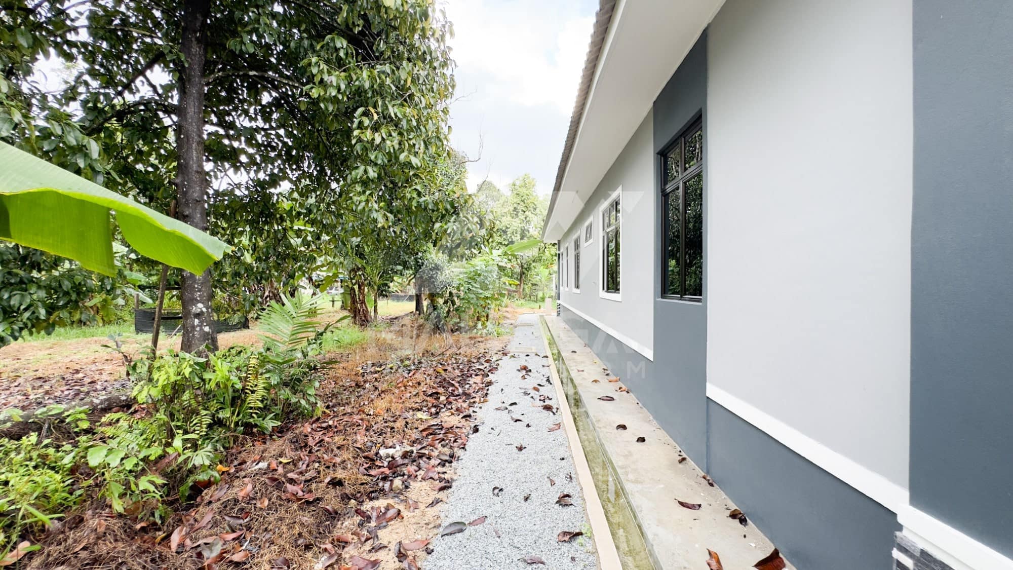 Banglo ini dibina dengan spesifikasi asas Pakej Silver dengan penambahan aksesori iaitu pemasangan cornice pada keseluruhan tingkap dan dinding luar rumah, groove line pada dinding di bahagian luar rumah.