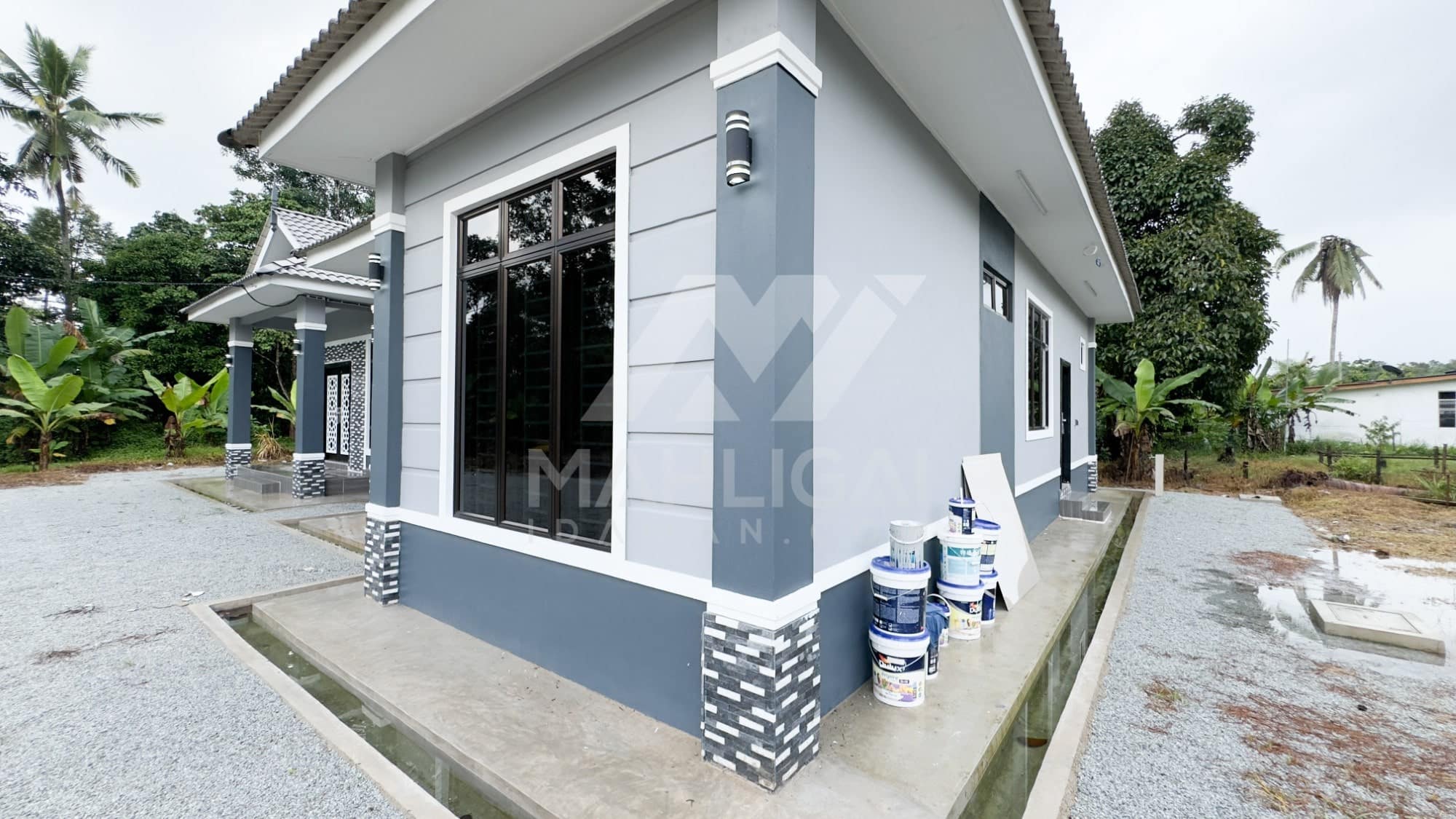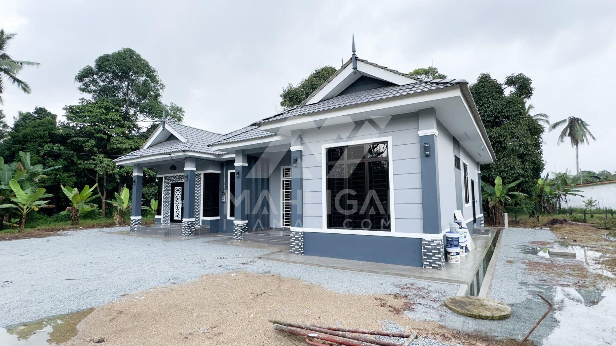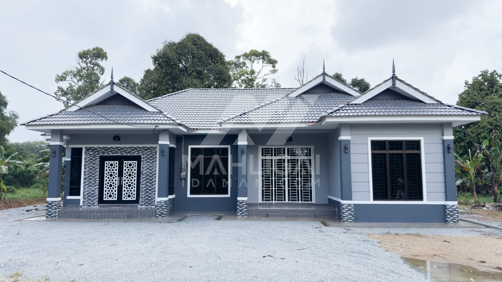 Kini banglo 1 tingkat milik klien kami Puan Hafzan telah siap dibina sepenuhnya di Kg Gaal, Pasir Puteh, Kelantan. Banglo ini dilengkapi dengan lima bilik tidur dan tiga bilik air. Banglo yang berkeluasan 1,954 kaki persegi ini menggabungkan ciri-ciri banglo moden iaitu dari segi rekabentuk dalaman dan luaran yang sangat menarik dari segi penggunaan biru dan silver. Bahagian dalam rumah pula mereka memilih warna putih dan beige menaikkan lagi seri dan kemewahan dalam rumah.