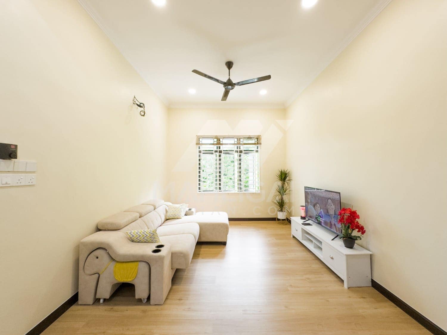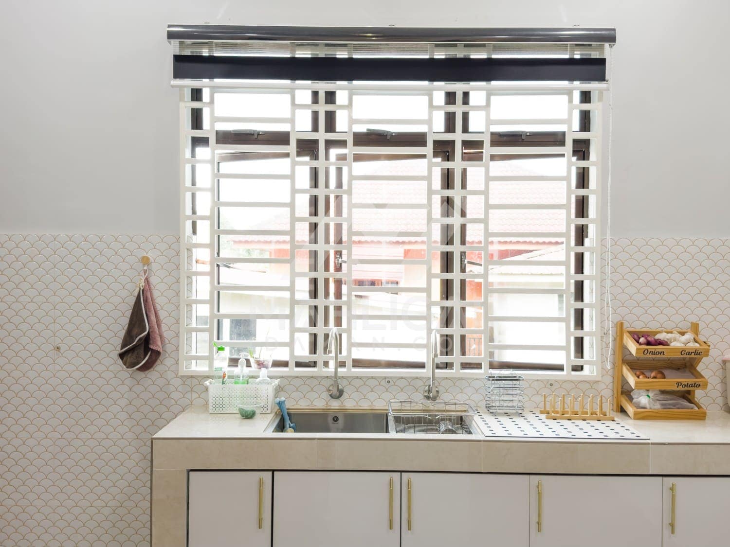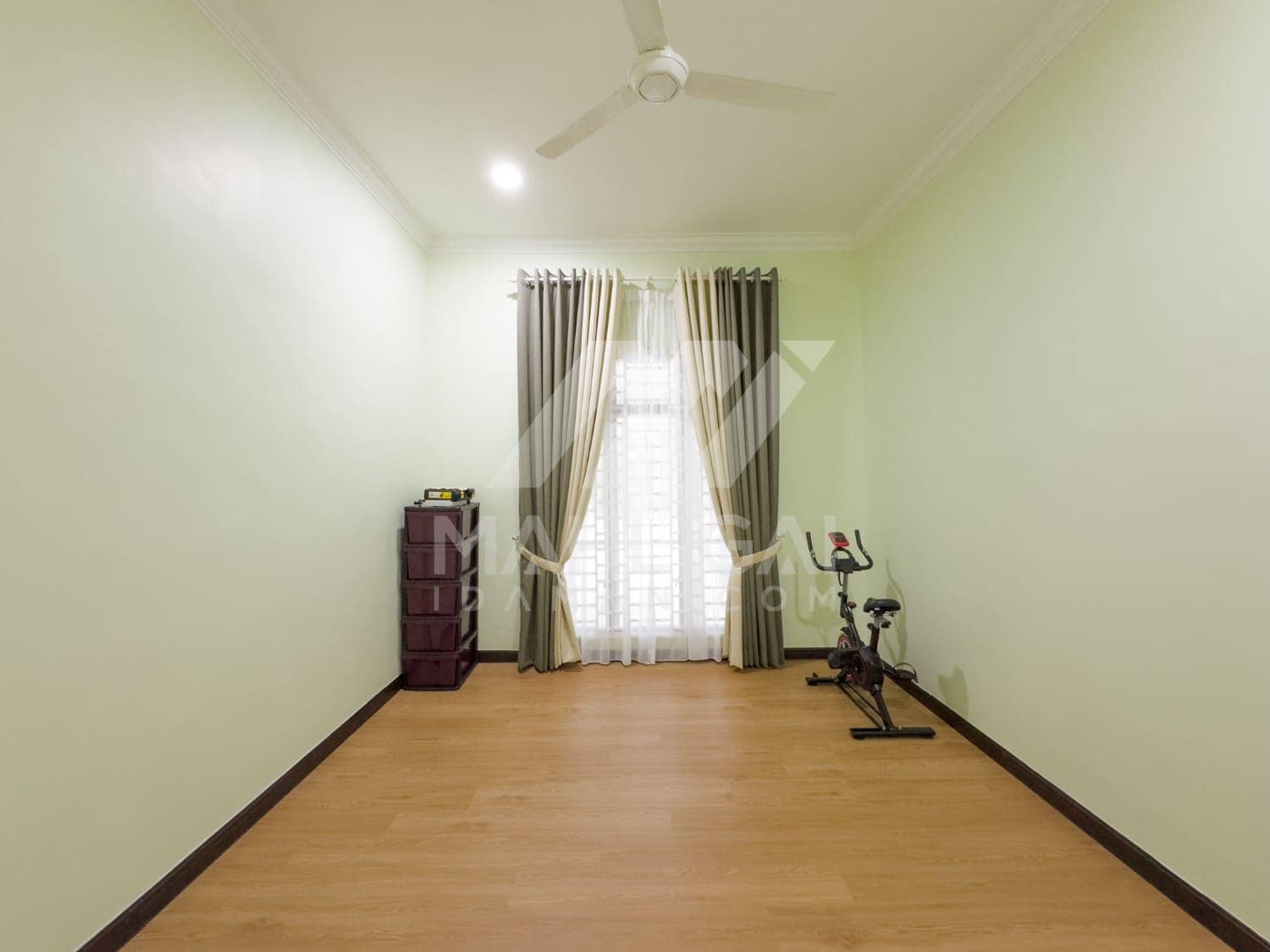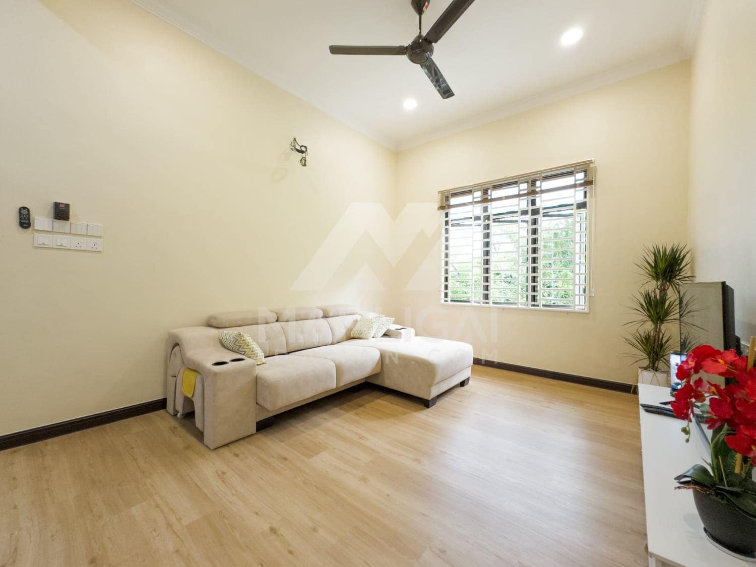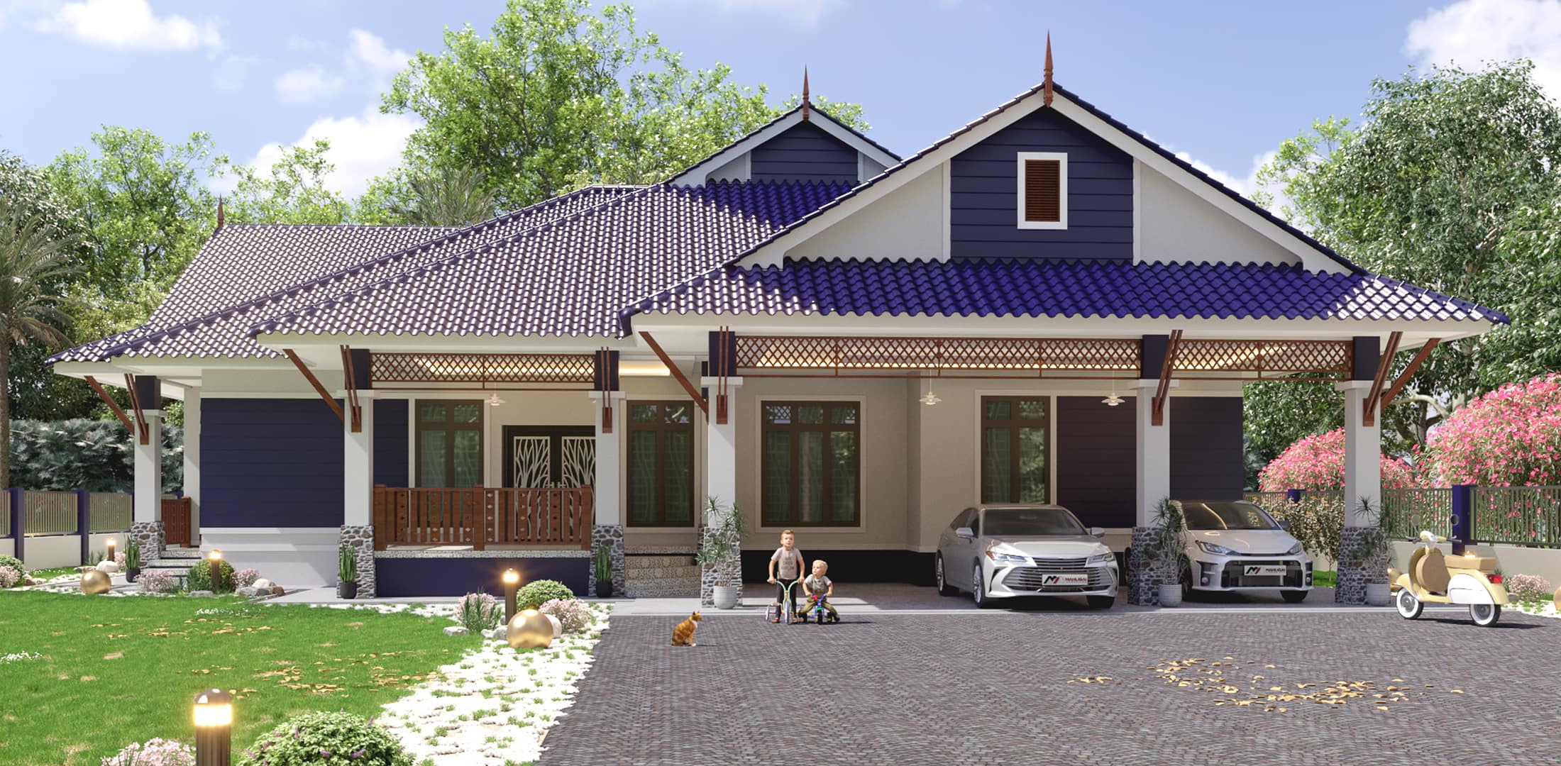 Banglo ini dibina dengan spesifikasi asas Pakej Gold dengan penambahan aksesori iaitu pemasangan cornice pada keseluruhan tingkap dan dinding luar rumah, groove line pada dinding di bahagian luar rumah.