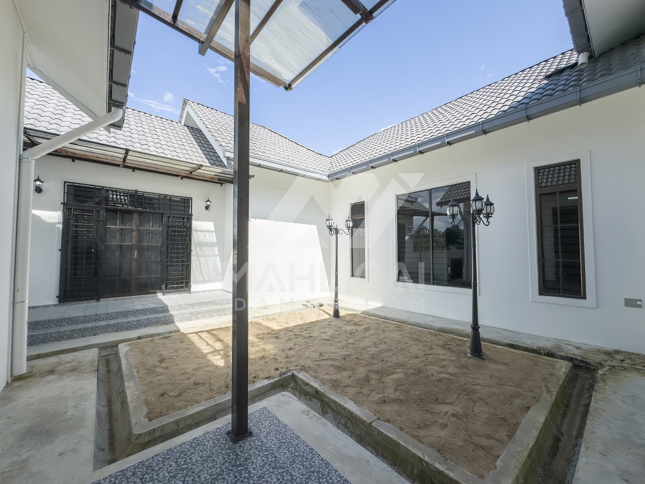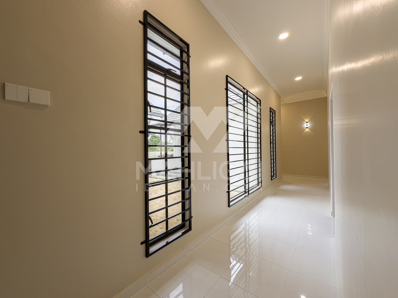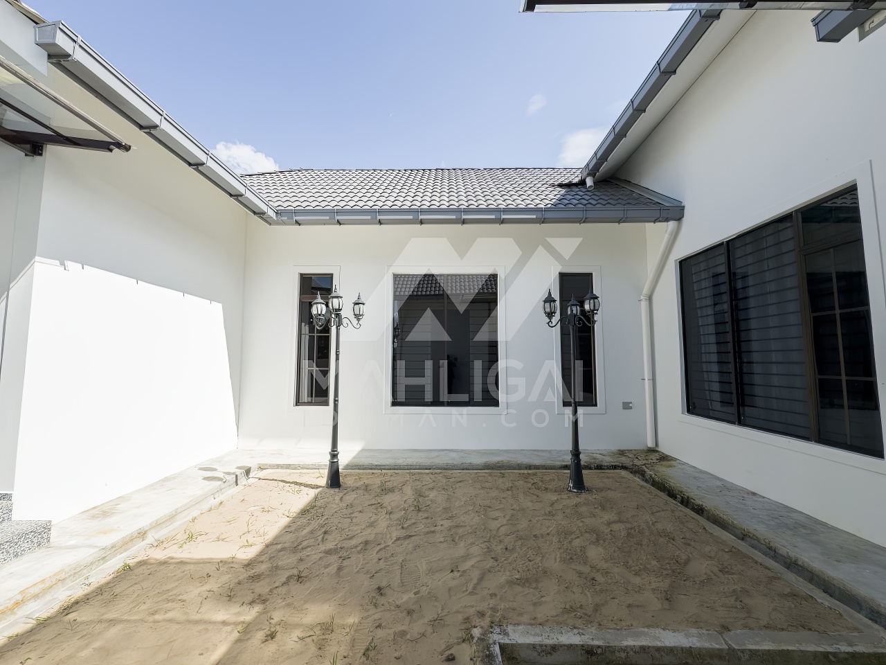 Banglo ini dibina dengan spesifikasi asas pakej silver dengan penambahan aksesori iaitu pemasangan cornice pada keseluruhan tingkap dan dinding luar rumah, groove line pada dinding di bahagian luar rumah