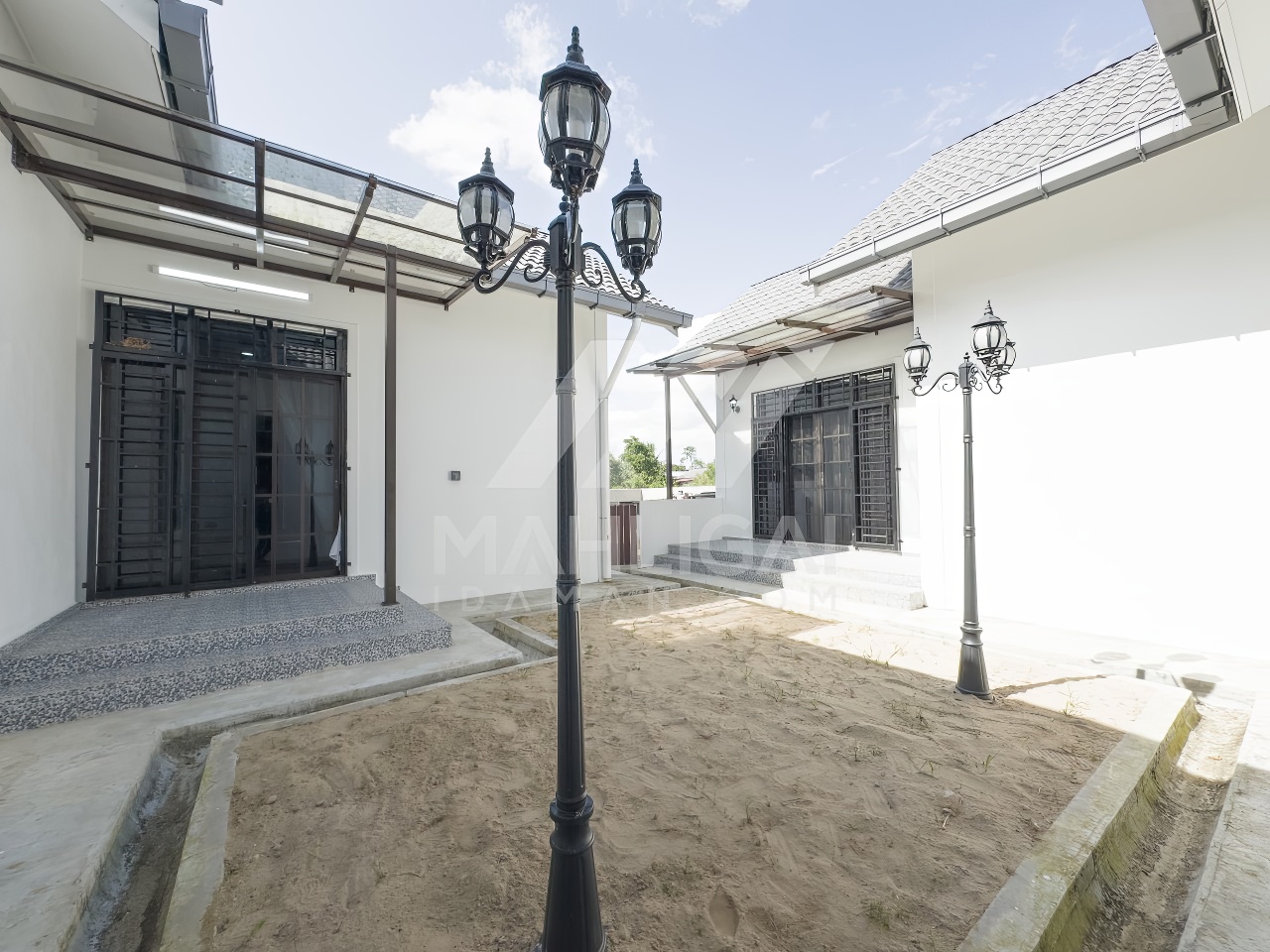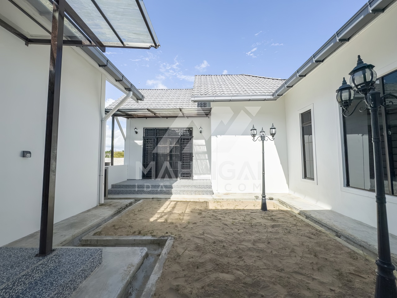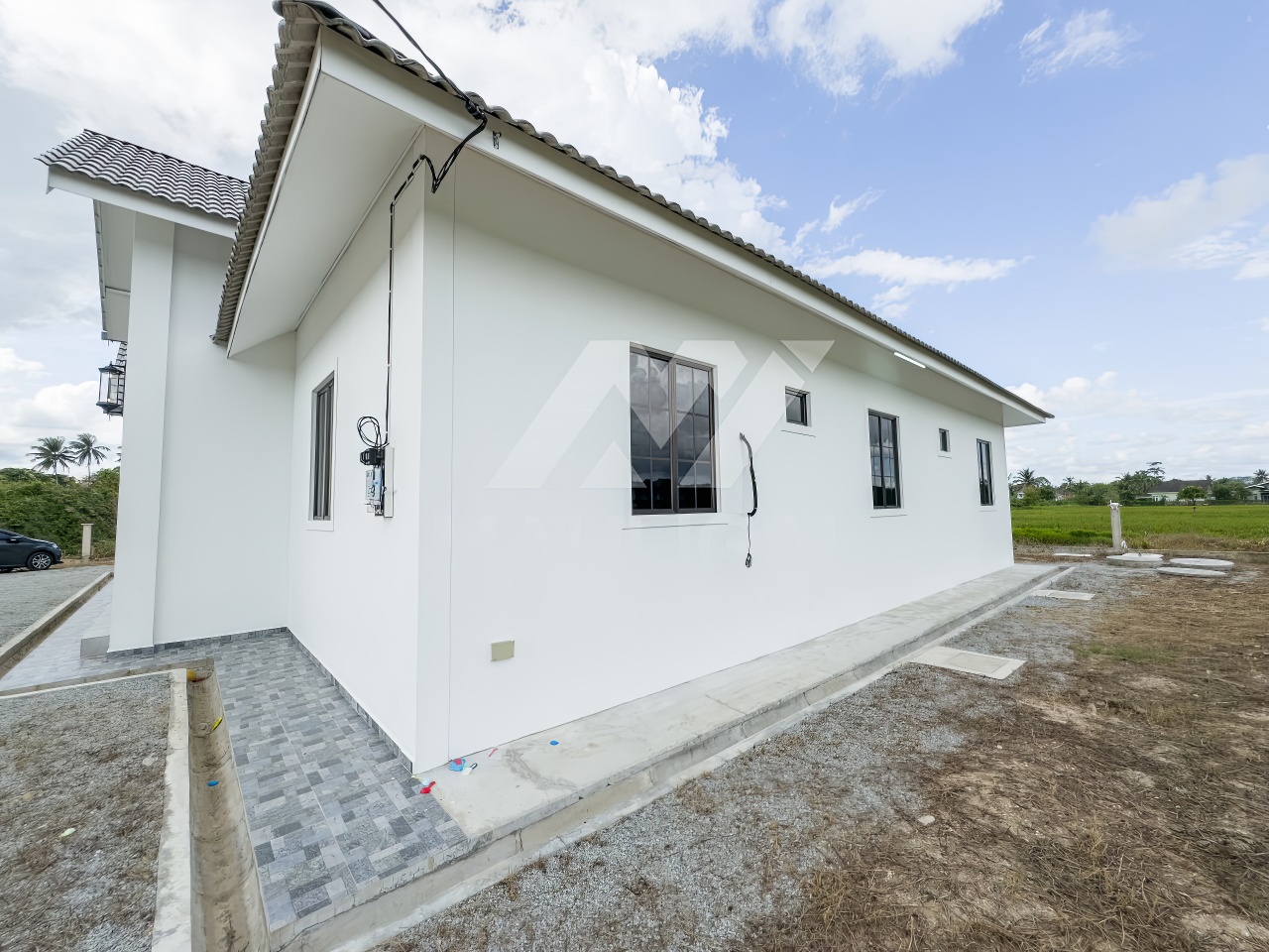 Banglo ini dibina dengan spesifikasi asas pakej silver dengan penambahan aksesori iaitu pemasangan cornice pada keseluruhan tingkap dan dinding luar rumah, groove line pada dinding di bahagian luar rumah