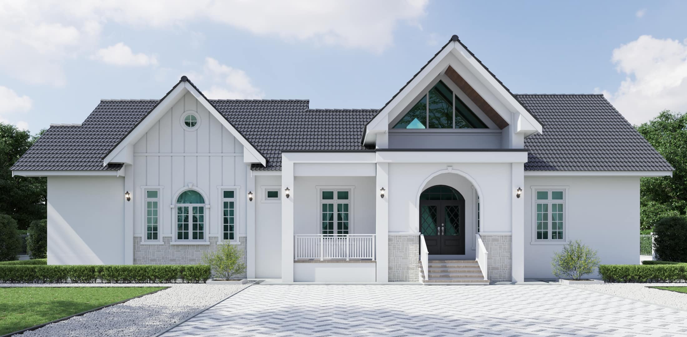 Banglo ini dibina dengan spesifikasi asas Pakej Gold dengan penambahan aksesori iaitu pemasangan cornice pada keseluruhan tingkap dan dinding luar rumah, groove line pada dinding di bahagian luar rumah.