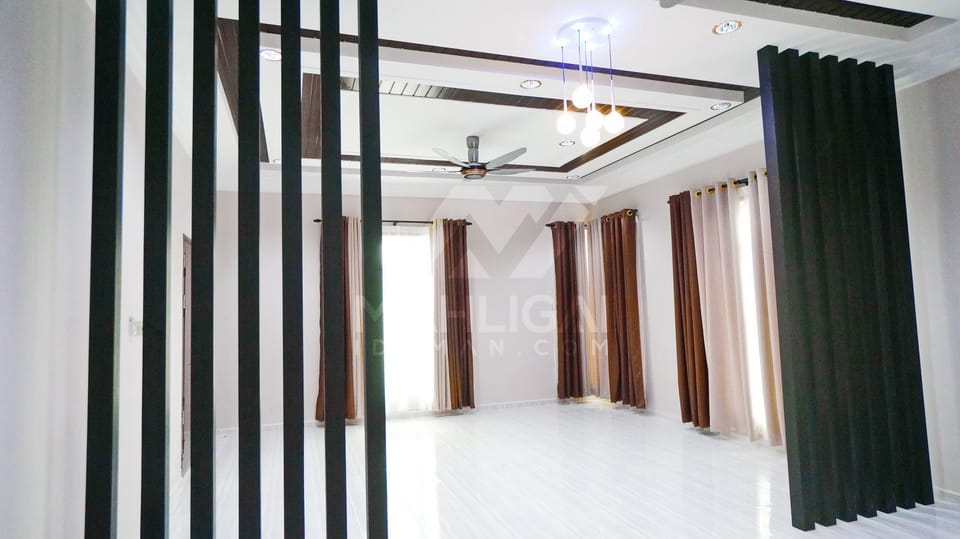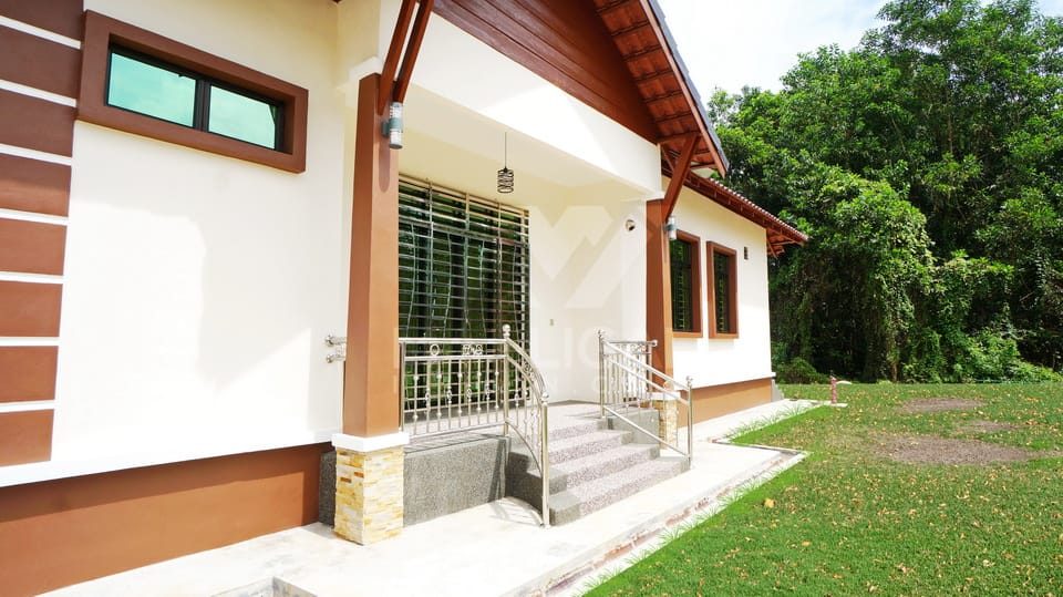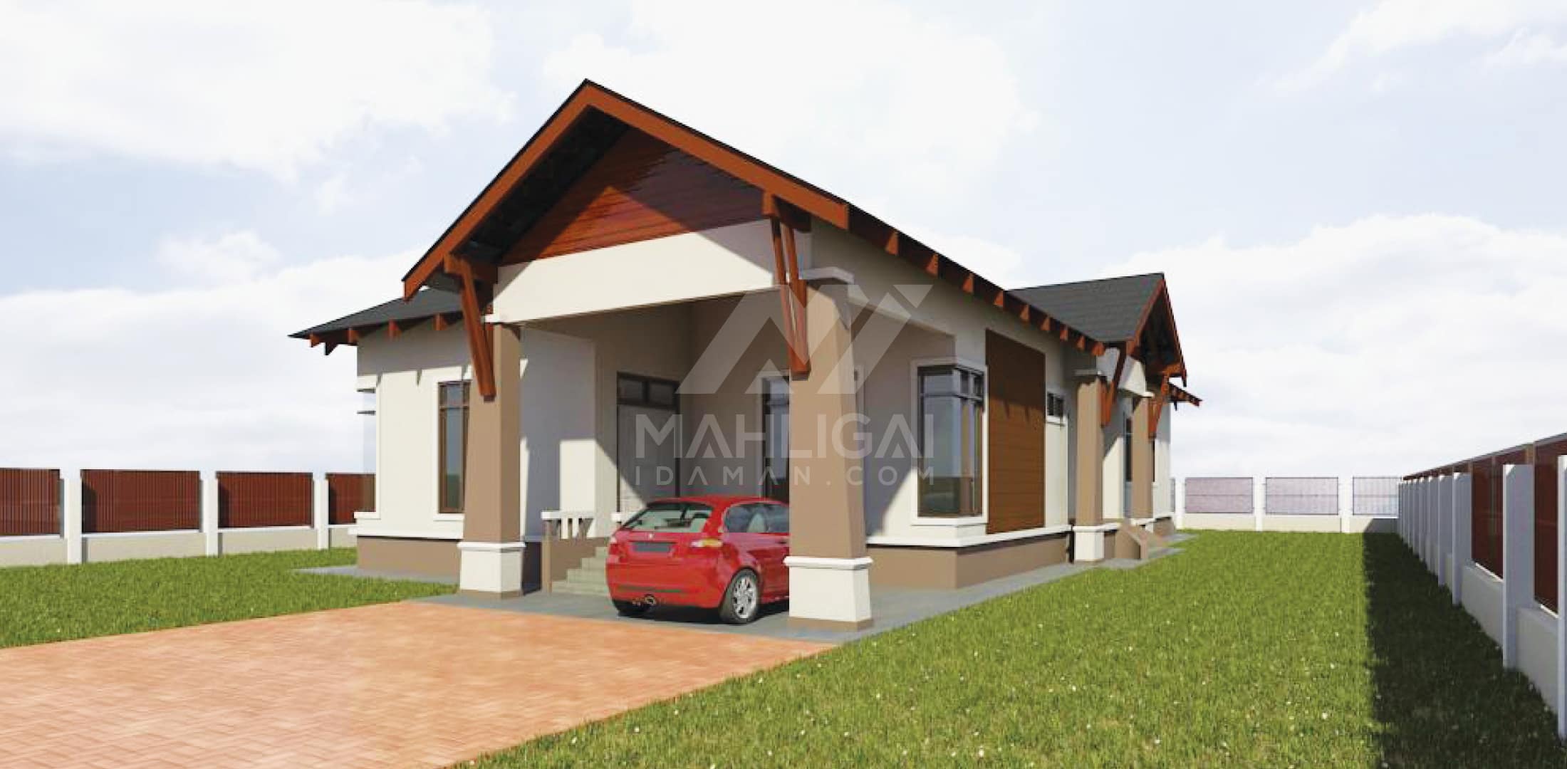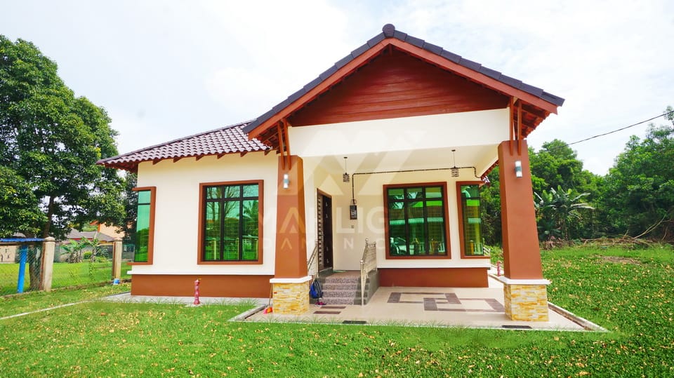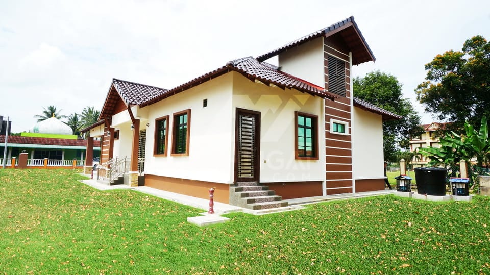 Banglo yang terletak di Tumpat, Kelantan ini mempunyai empat bilik tidur dan tiga bilik air. Penggunaan cermin berwarna hijau ‘see-through’ membuatkan banglo ini sungguh menarik dan unik. Banglo ini menggabungkan ciri-ciri banglo moden seperti bentuk atap dan gabungan warna coklat dan kuning lembut menaikkan lagi kontra warna tersebut.