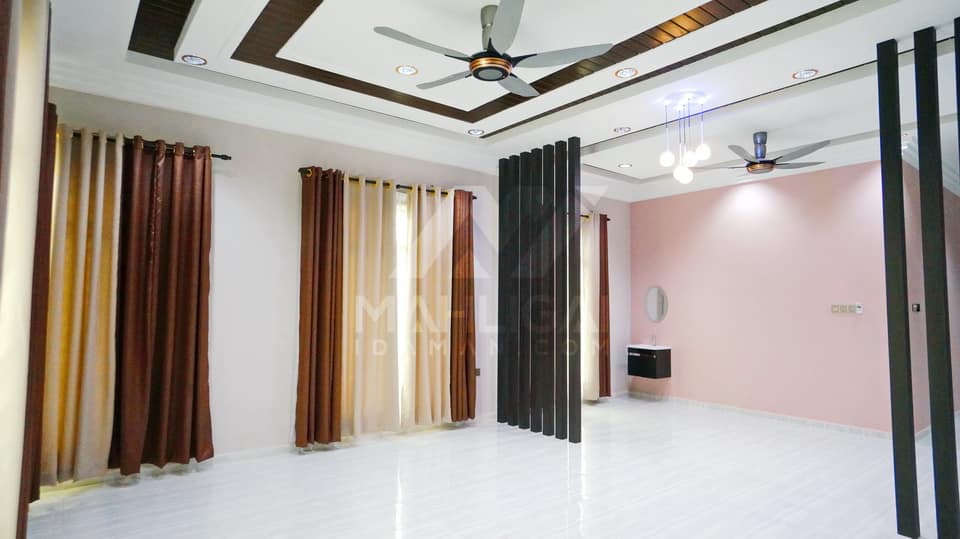 Banglo ini dibina dengan spesifikasi asas Pakej Gold dan beberapa penambahan dari sudut design pemasangan tiang formica pada bahagian ruang tamu, pemasangan bath tub di bilik air utama, pemasangan handrailing stainless steel di veranda, pemasangan batu hiasan pada tiang luar, torehan groove line pada dinding luar serta pemasangan cornice pada bahagian tingkap.