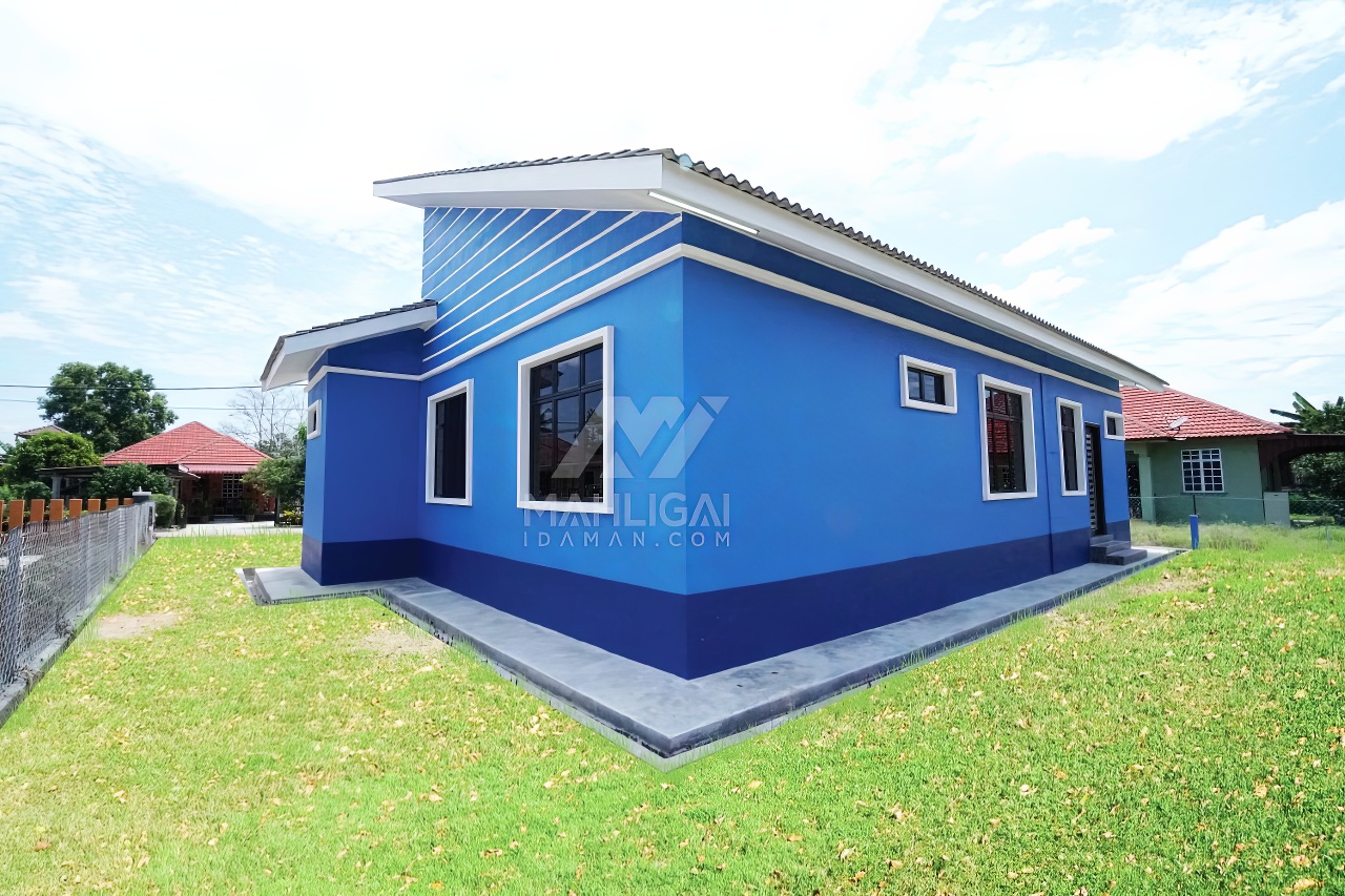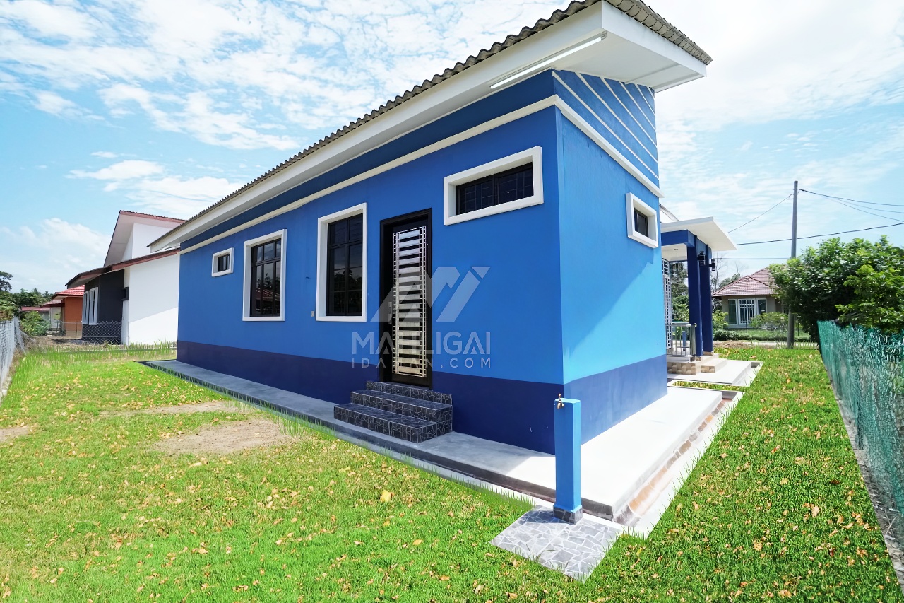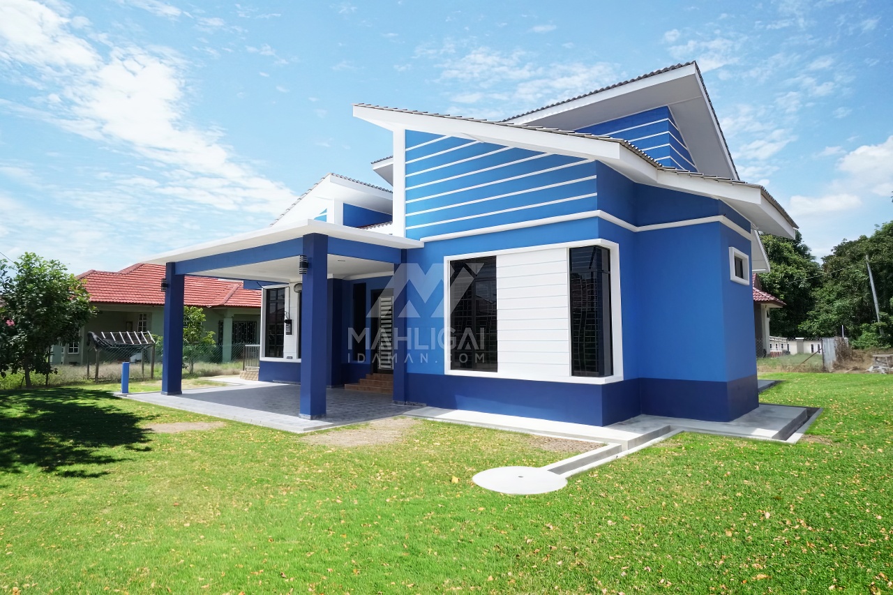 Banglo satu tingkat berwarna biru yang telah siap dibina di Besut, Terengganu ini mempunyai empat (4) bilik tidur dan tiga (3) bilik air. Banglo ini berkonsepkan banglo moden seperti penggunaan tingkap labuh dilengkapi dengan pemasangan shera board di bahagian tengah tingkap menampakkan lagi keunikan banglo ini.