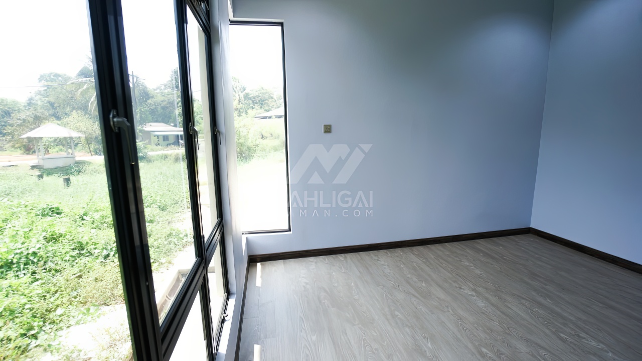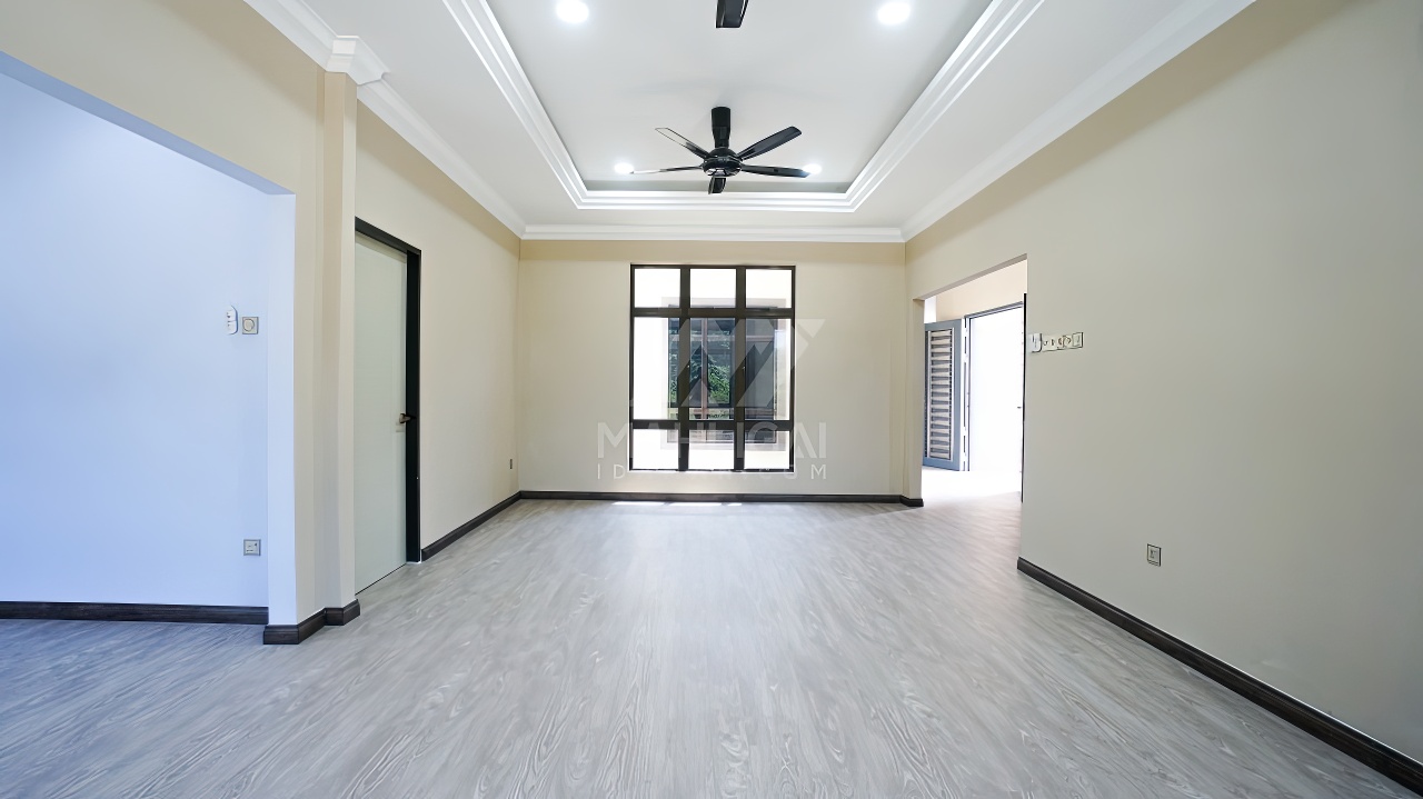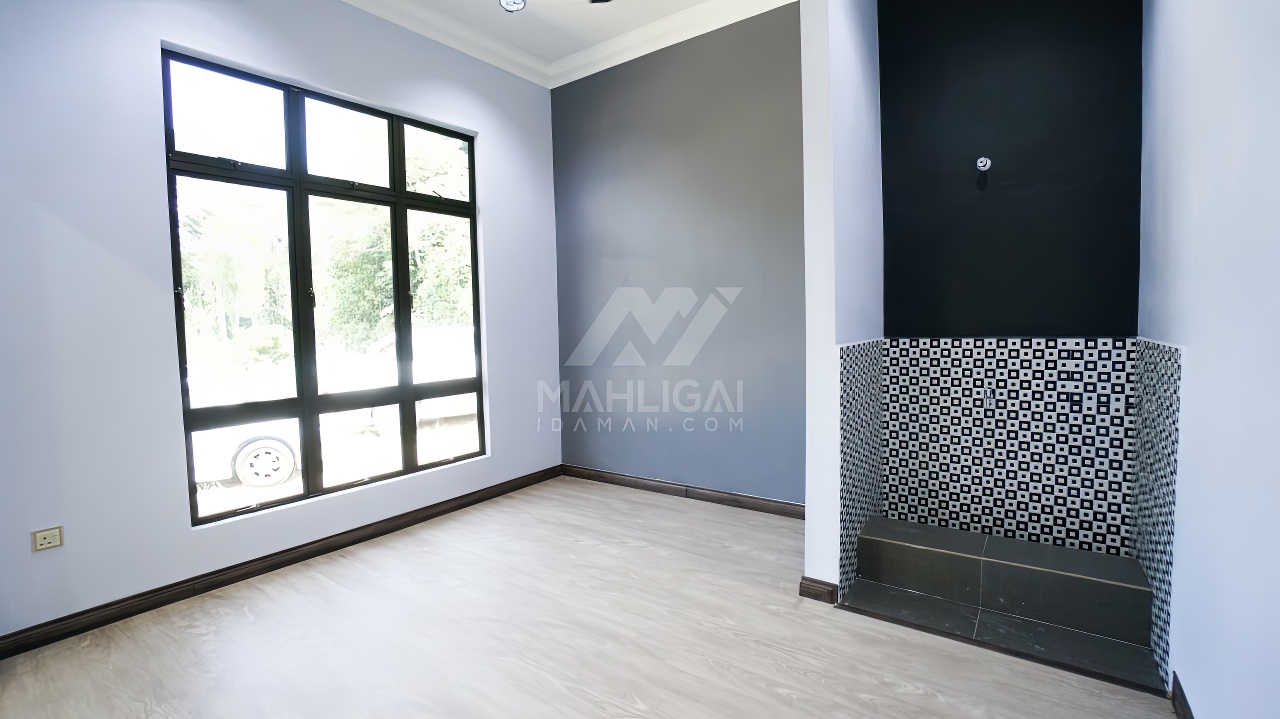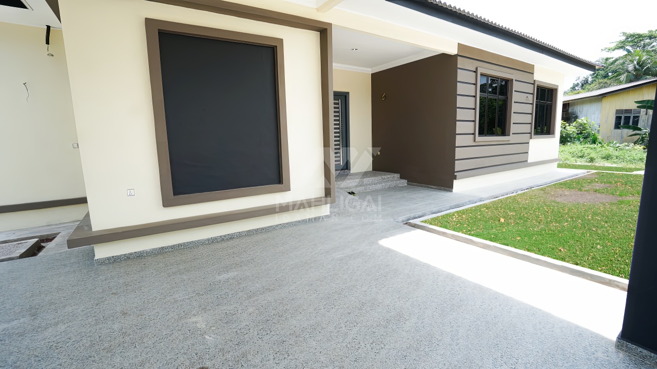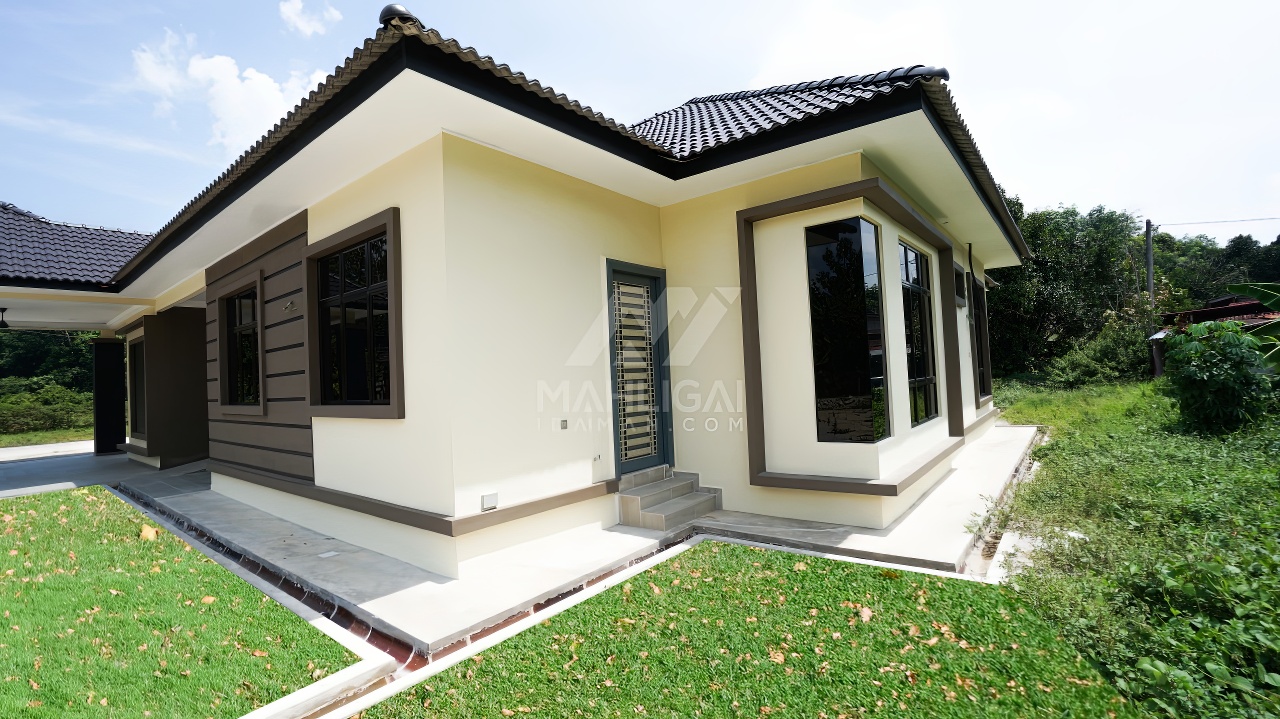 Banglo ini dibina dengan spesifikasi asas Pakej Silver dan beberapa penambahan dari sudut design seperti groove line bahagian tangga hadapan mengggunakan kemasan jenis batu ‘Pebble Wash’, tambahan hiasan skirting pada body rumah dan kelainan idea yang dicetuskan oleh pemilik rumah ini adalah menyediakan sebuah bilik cinema sebagai ruangan santai bersama keluarga.