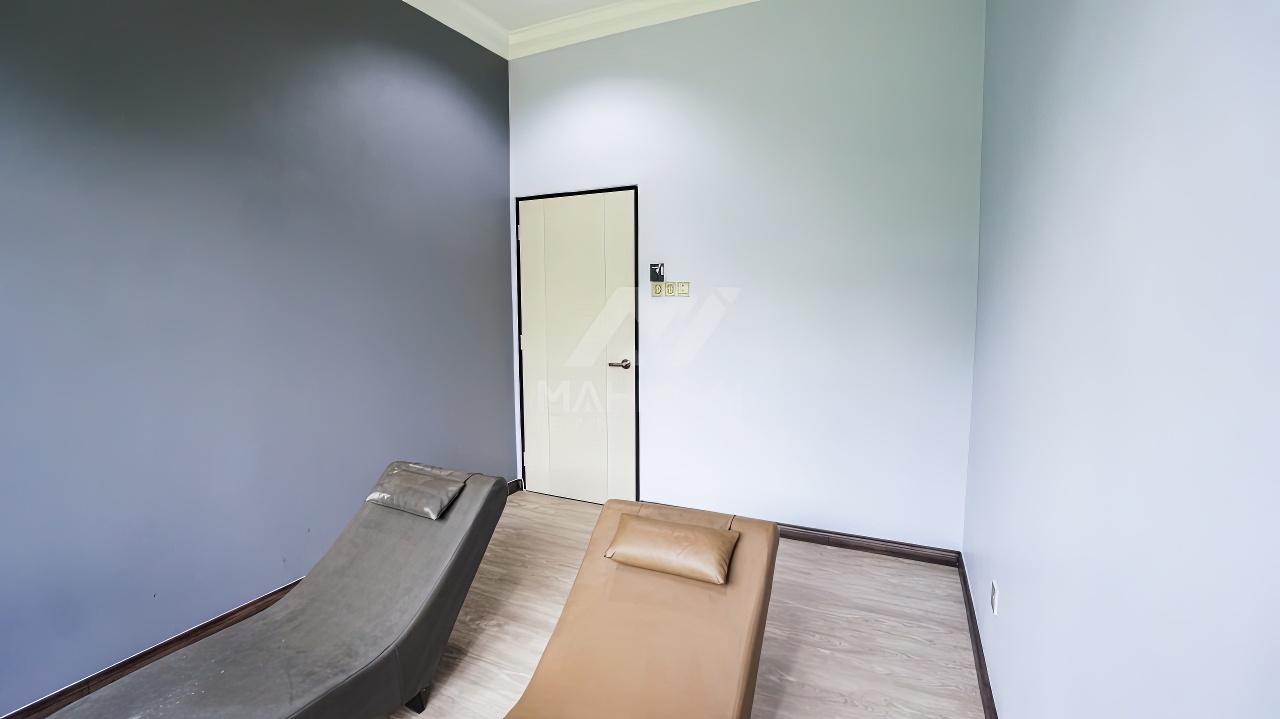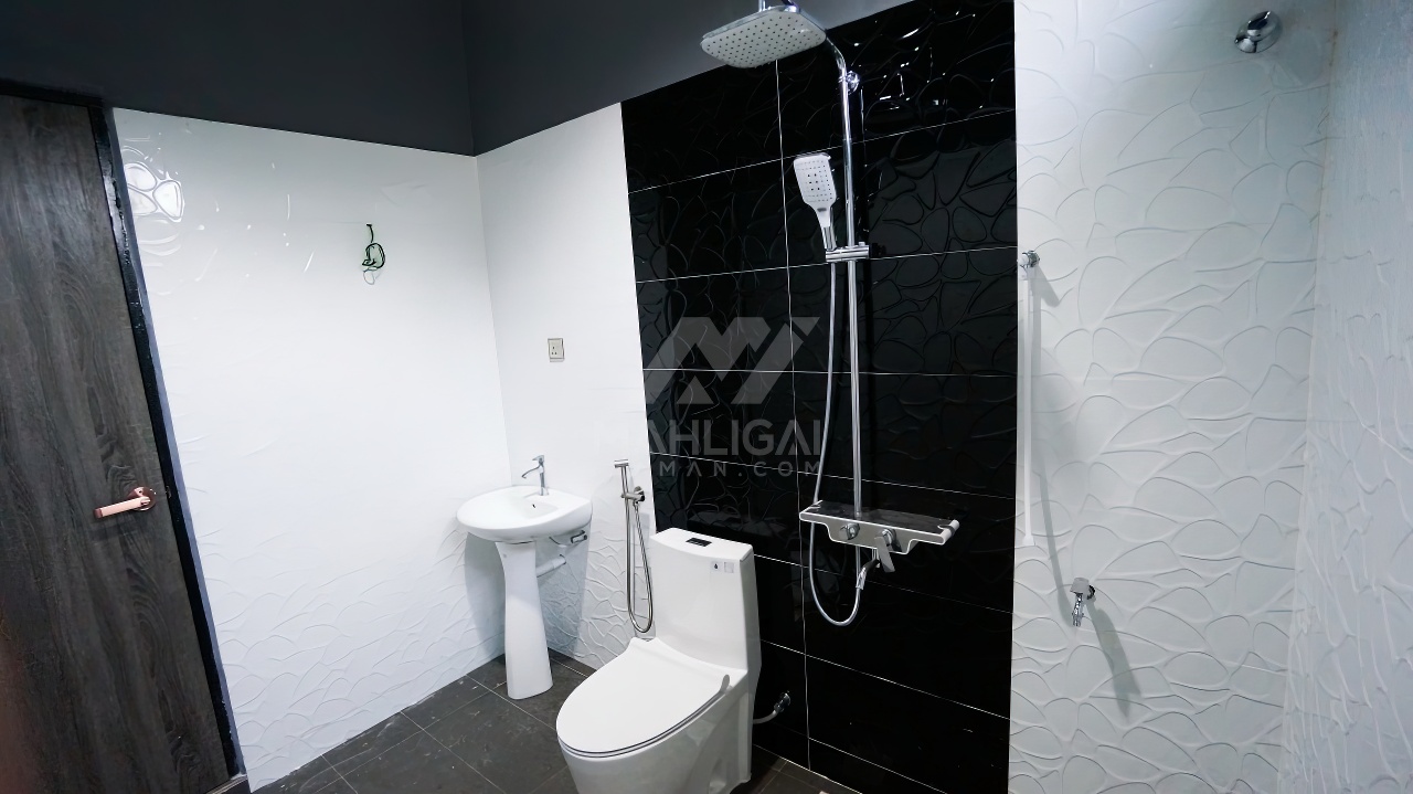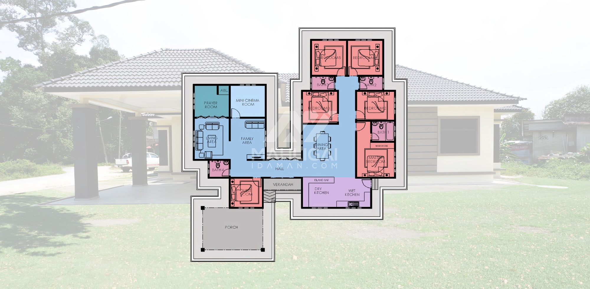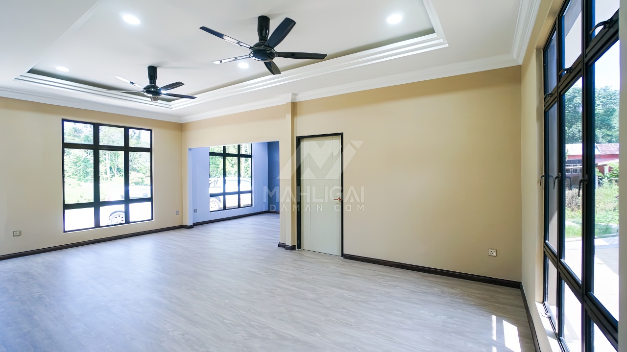 Banglo ini dibina dengan spesifikasi asas Pakej Silver dan beberapa penambahan dari sudut design seperti groove line bahagian tangga hadapan mengggunakan kemasan jenis batu ‘Pebble Wash’, tambahan hiasan skirting pada body rumah dan kelainan idea yang dicetuskan oleh pemilik rumah ini adalah menyediakan sebuah bilik cinema sebagai ruangan santai bersama keluarga.
