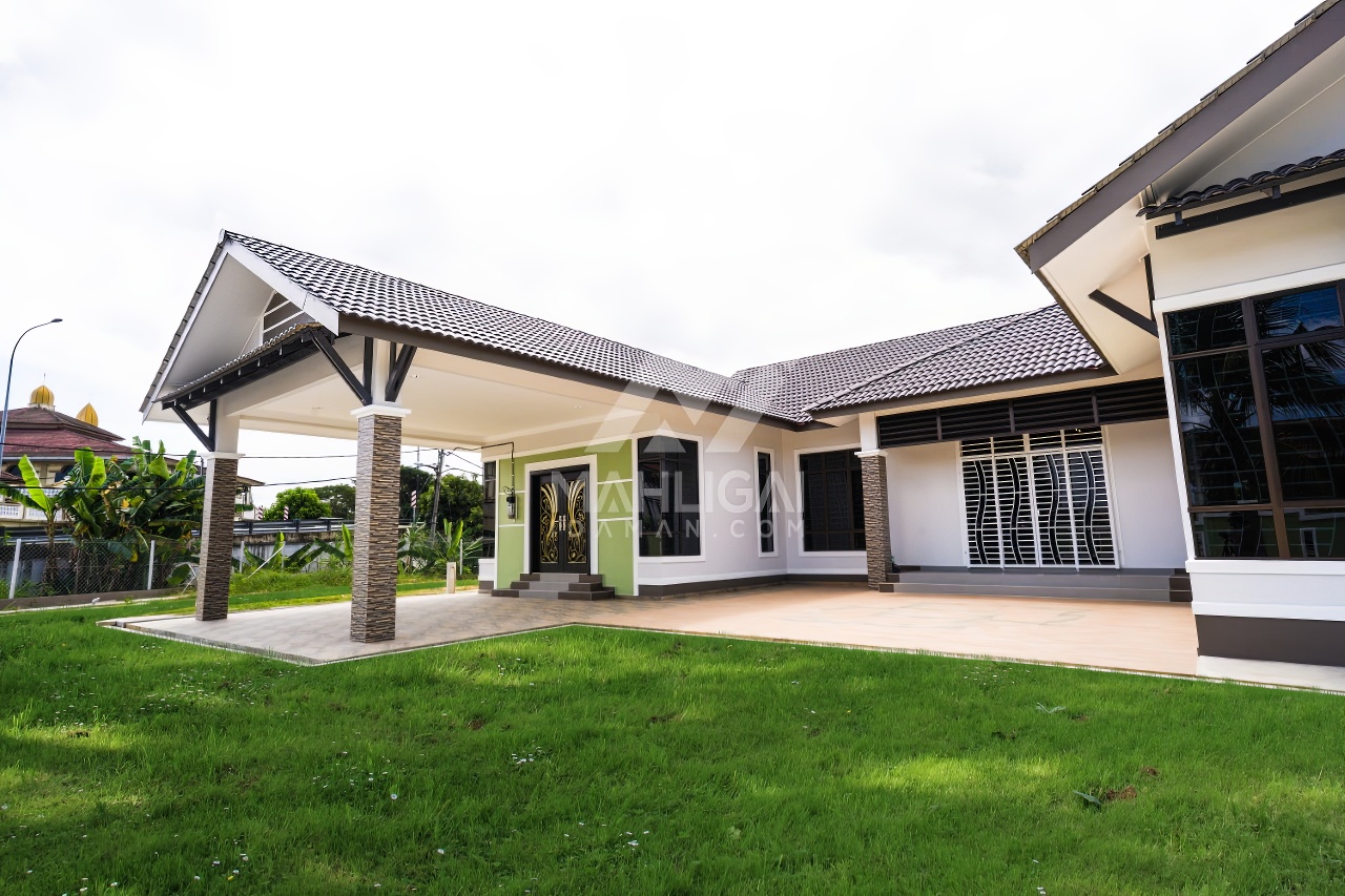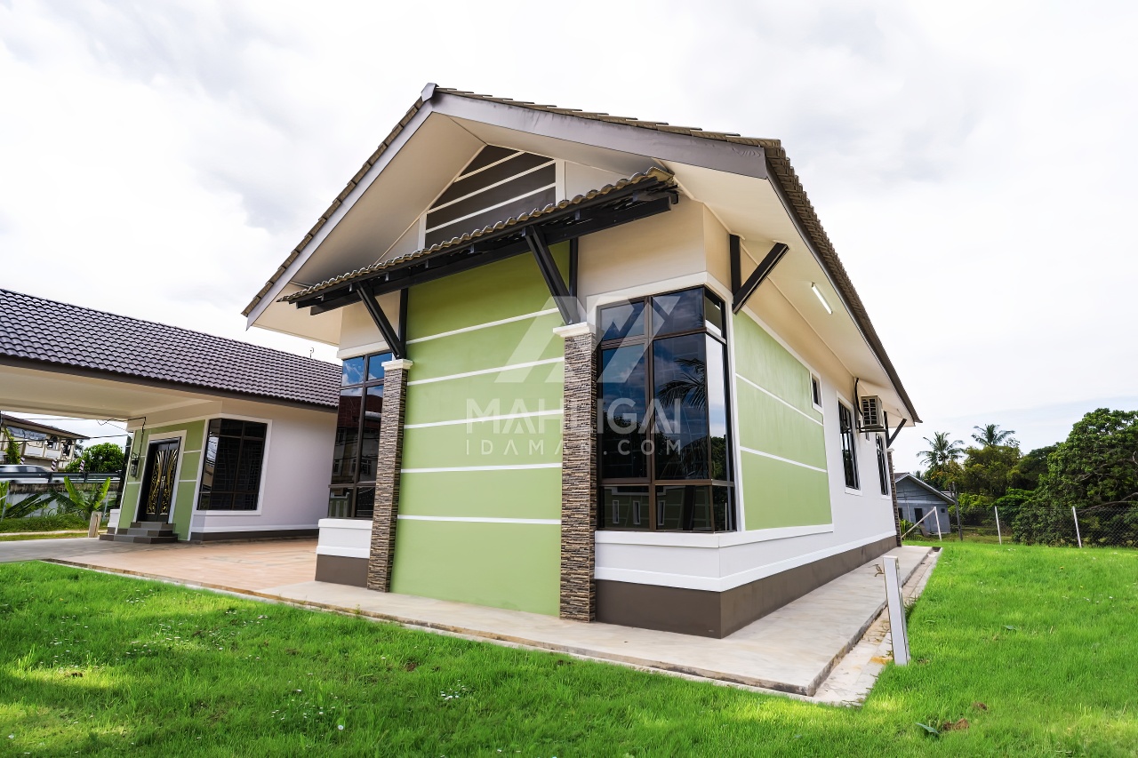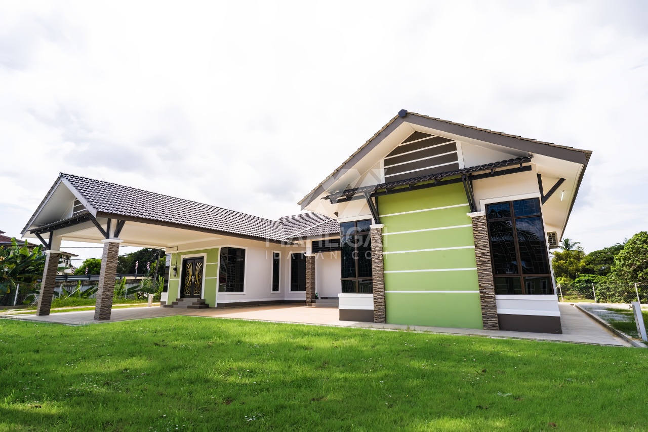 Banglo milik klien kami yang terletak di Tanjung Chat, Kota Bharu, Kelantan ini menggabungkan ciri-ciri berkonsepkan banglo moden seperti penggunaan tingkap labuh cermin hitam menampakkan banglo ini lebih premium serta kombinasi dengan pintu masuk corak kemasan. Dari segi penggunaan gabungan tona warna hijau dan putih susu menambahkan lagi keunikan banglo moden ini.