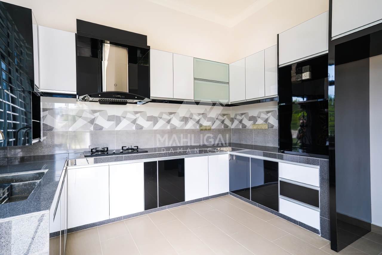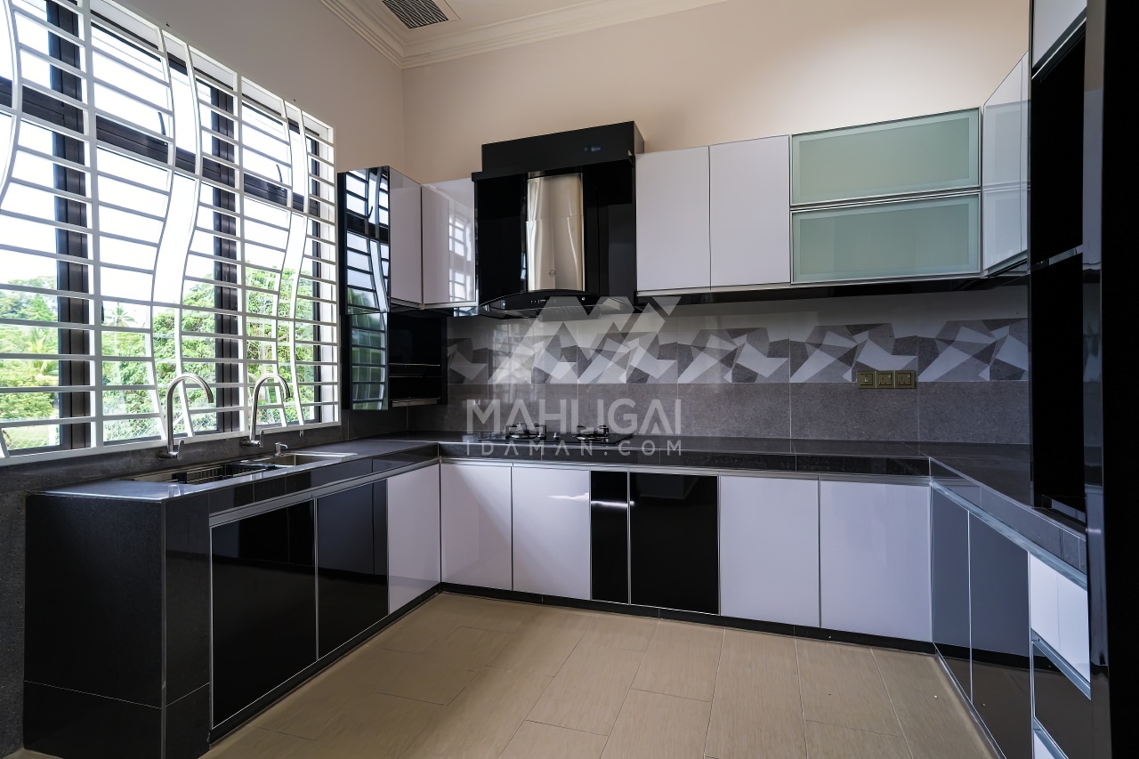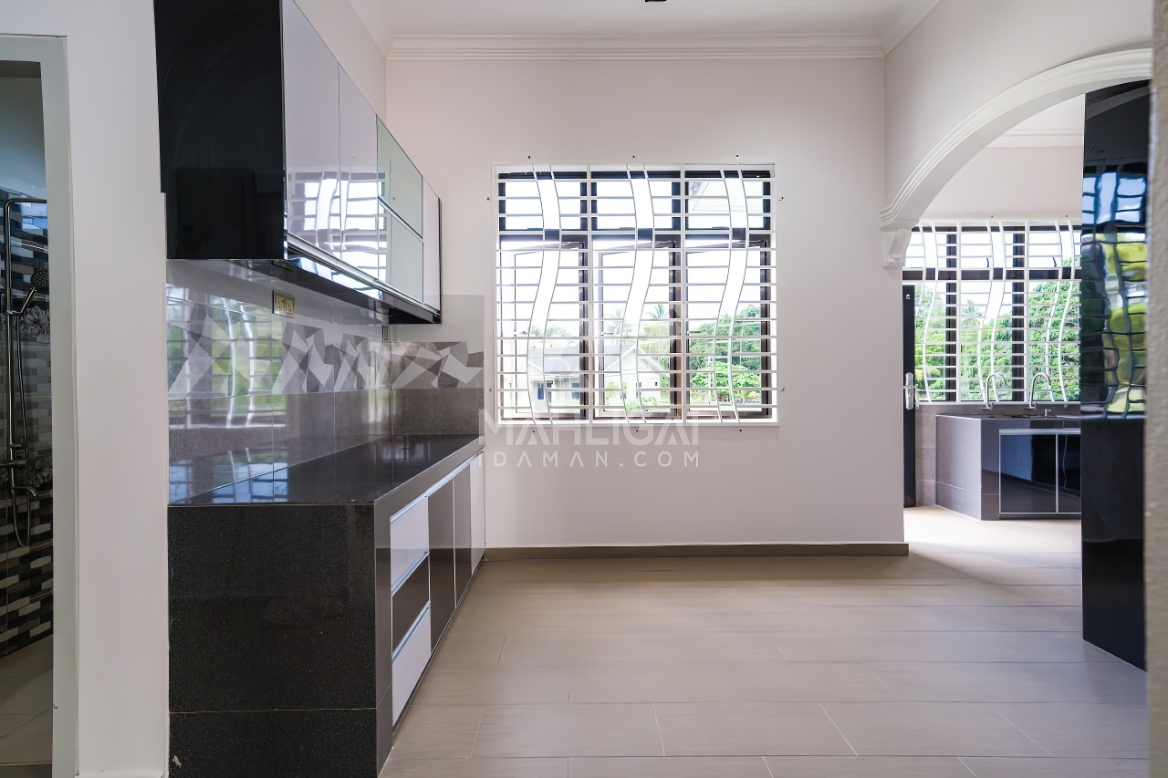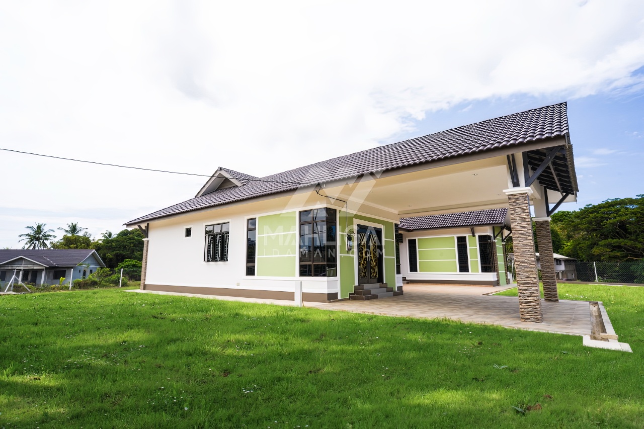 Banglo milik klien kami yang terletak di Tanjung Chat, Kota Bharu, Kelantan ini menggabungkan ciri-ciri berkonsepkan banglo moden seperti penggunaan tingkap labuh cermin hitam menampakkan banglo ini lebih premium serta kombinasi dengan pintu masuk corak kemasan. Dari segi penggunaan gabungan tona warna hijau dan putih susu menambahkan lagi keunikan banglo moden ini.