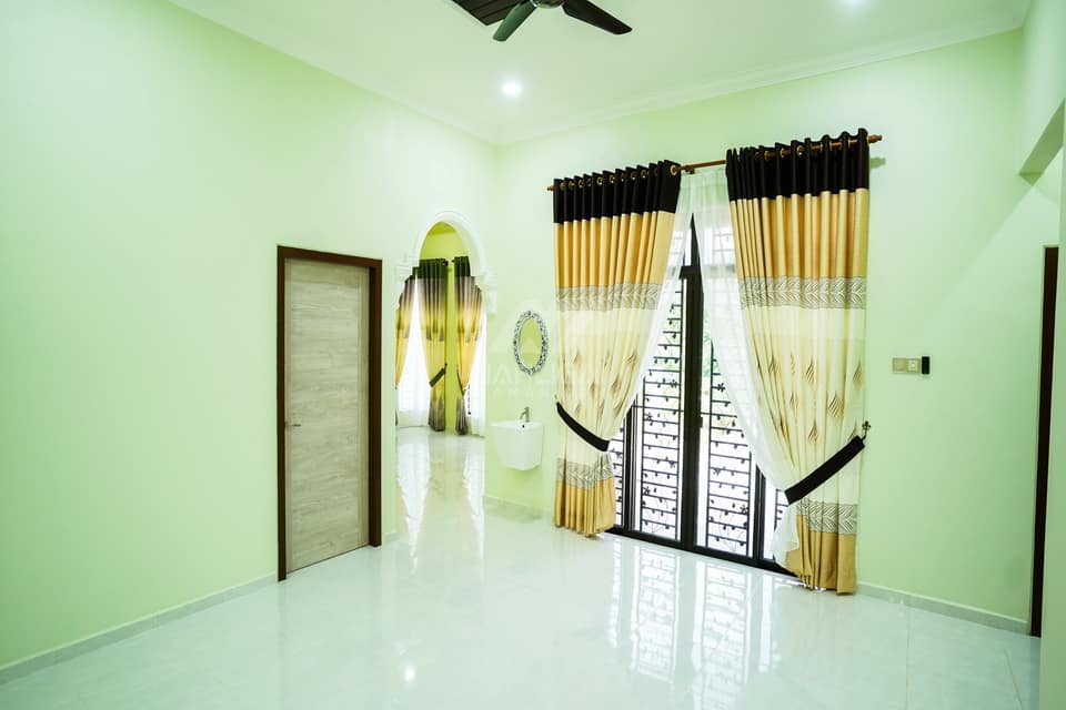 Banglo dua tingkat yang dibina di daerah Pasir Tumboh, Kelantan ini mempunyai lima bilik tidur dan lima bilik air. Banglo ini menggabungkan ciri-ciri banglo konvensional seperti bentuk atap disamping menerapkan beberapa ciri moden seperti penggunaan tingkap labuh cermin hitam dan tona warna kuning yang digabungkan dengan warna coklat dan kelabu untuk menaikkan kontra warna tersebut.