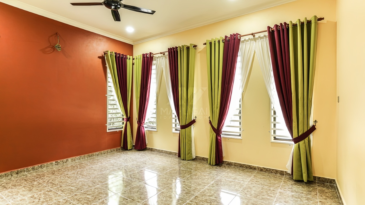 Banglo ini dibina dengan spesifikasi asas Pakej Silver dan beberapa penambahan dari sudut design seperti penggunaan batu hiasan pada tiang luar rumah, groove lines dan naik taraf cermin hitam kepada cermin berwarna hijau.