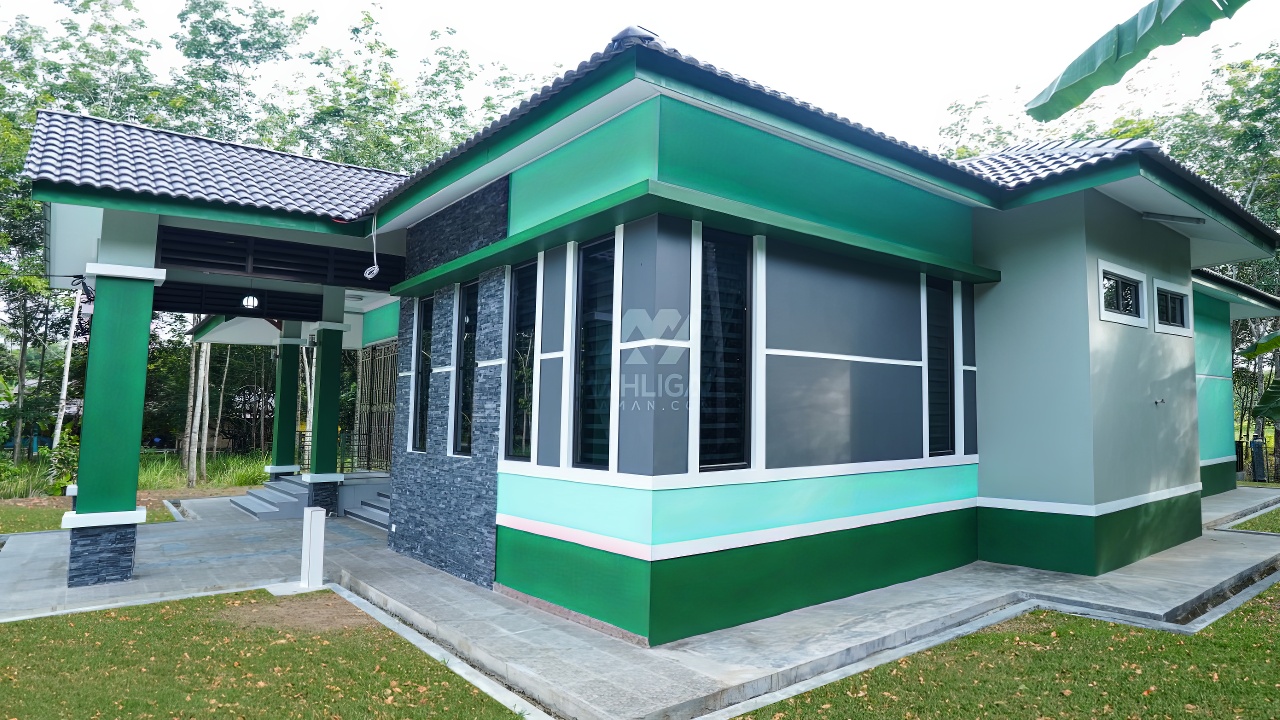 Banglo satu tingkat yang dibina di daerah Pasir Mas, Kelantan ini mempunyai empat (4) bilik tidur dan empat (4) bilik air. Banglo ini menggabungkan ciri-ciri banglo konvensional seperti bentuk atap disamping menerapkan beberapa ciri moden seperti penggunaan tingkap labuh dan tona warna green mint yang digabungkan dengan warna hijau terang untuk menaikkan kontra warna tersebut.