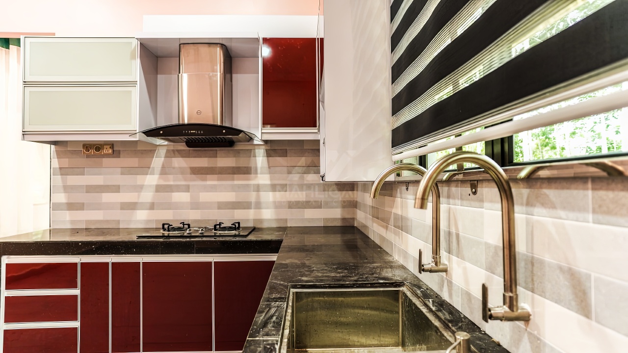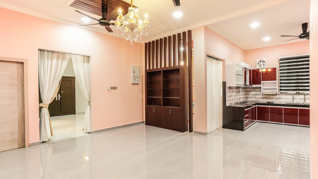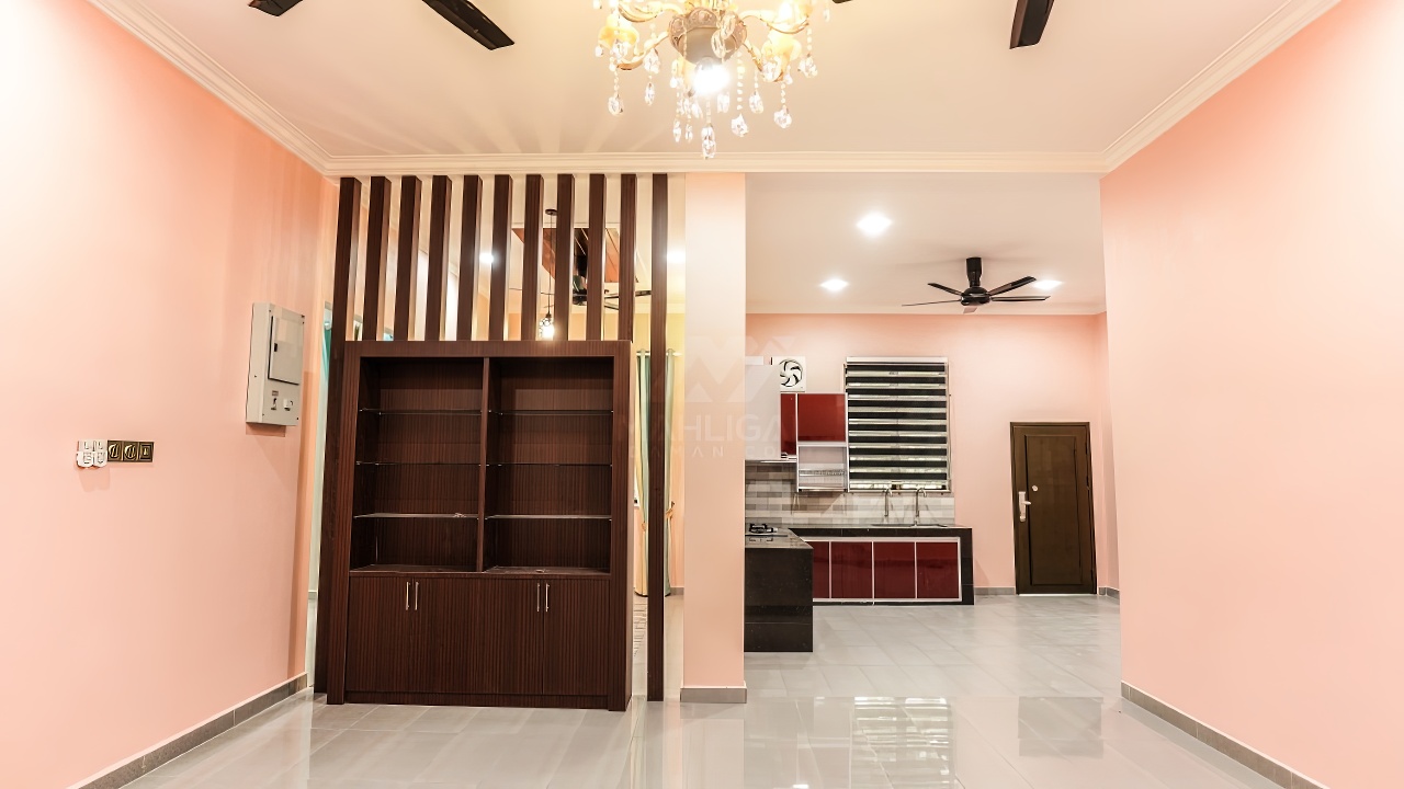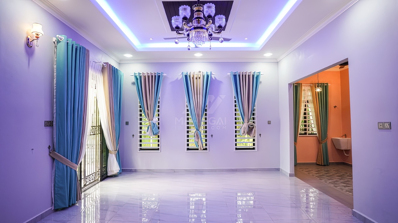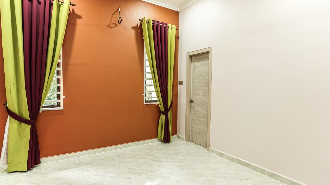 Banglo ini dibina dengan spesifikasi asas Pakej Silver dan beberapa penambahan dari sudut design seperti penggunaan batu hiasan pada tiang luar rumah, groove lines dan naik taraf cermin hitam kepada cermin berwarna hijau.