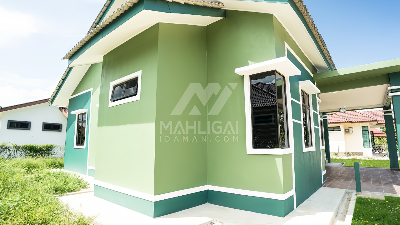 Banglo Idaman milik client kami yang terletak di daerah Besut, Terengganu ini telah siap dibina sepenuhnya dilengkapi empat bilik tidur dan tiga bilik air. Banglo ini menggabungkan ciri-ciri berkonsepkan banglo moden seperti rekabentuk rumah disamping menerapkan beberapa ciri moden seperti penggunaan tingkap labuh cermin hitam. Dari segi gabungan tona warna yang dipilih seperti dark green dan light green membuatkan banglo ini mempunyai keunikannya tersendiri.