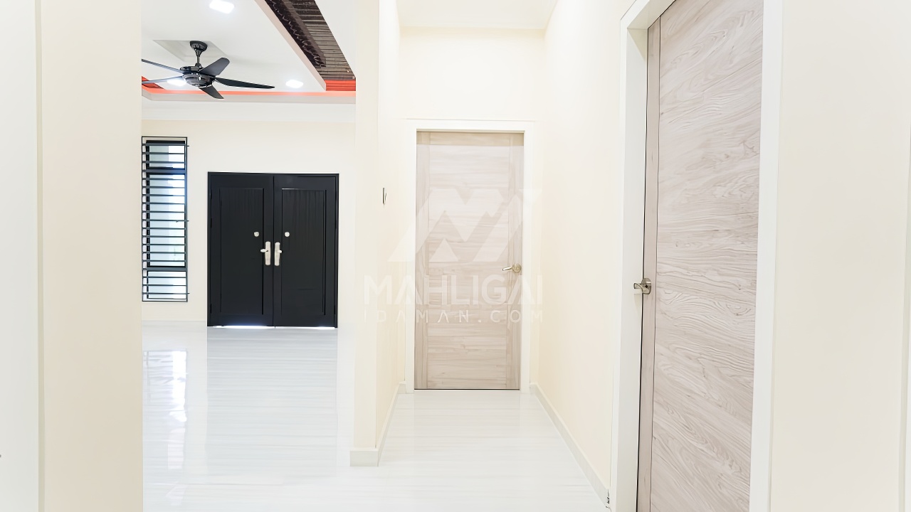 Banglo ini dibina dengan spesifikasi asas Pakej Gold dan beberapa penambahan dari sudut design seperti pemasangan cornice pada tingkap dan dinding luar rumah serta menaiktaraf pendawaian elektrik – three phase.