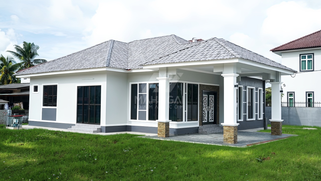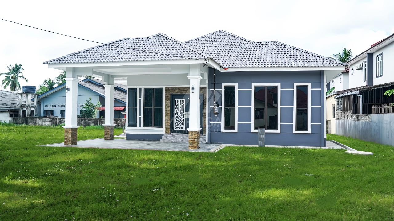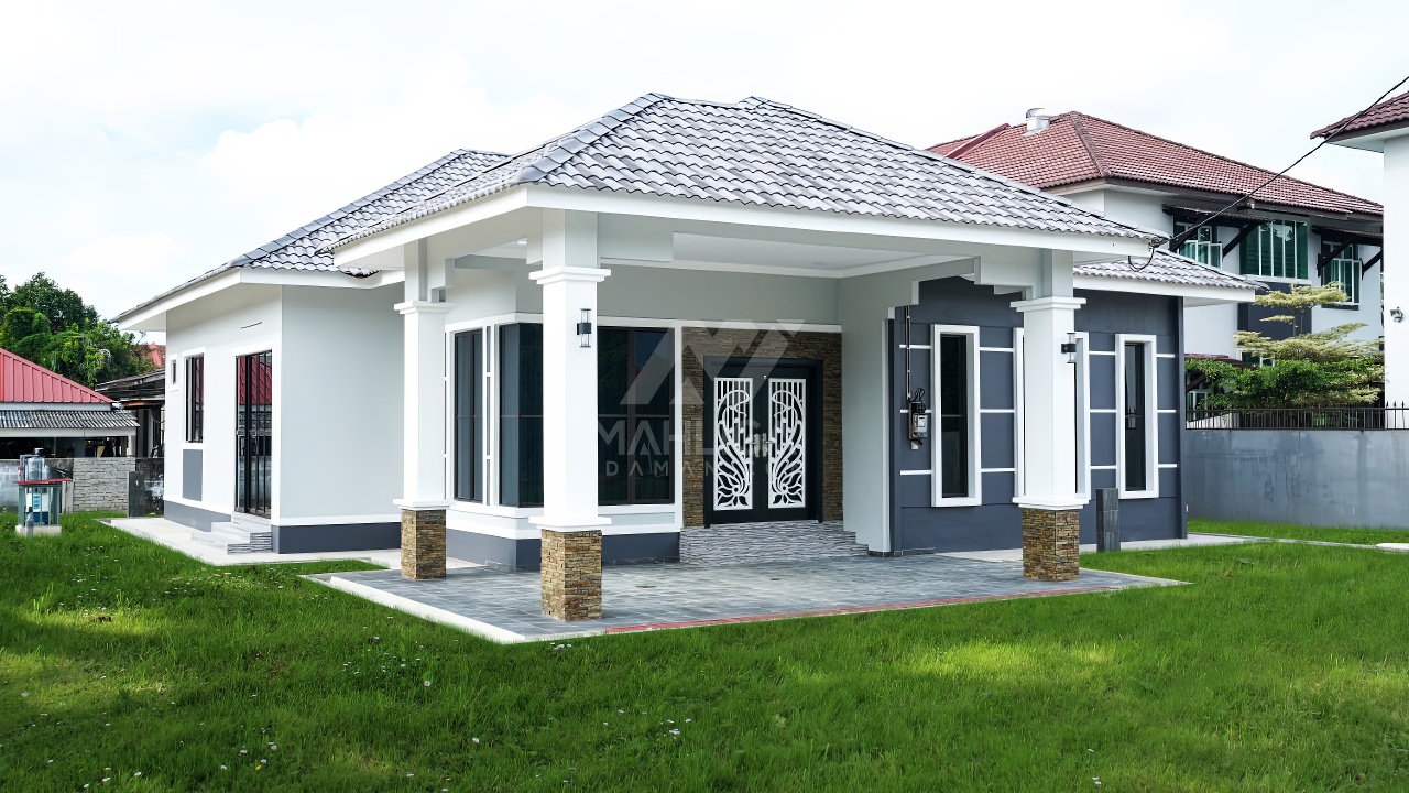 Banglo Idaman milik client kami Puan Nor Baiti yang terletak di Panji, Kota Bharu, Kelantan telah siap dibina sepenuhnya dilengkapi empat (4) bilik tidur dan tiga (3) bilik air. Banglo ini menggabungkan ciri-ciri berkonsepkan banglo konvensional seperti rekabentuk rumah disamping menerapkan beberapa ciri moden seperti penggunaan tingkap labuh. Dari segi gabungan tona warna yang dipilih, banglo ini kelihatan mempunyai keunikan tersendiri.