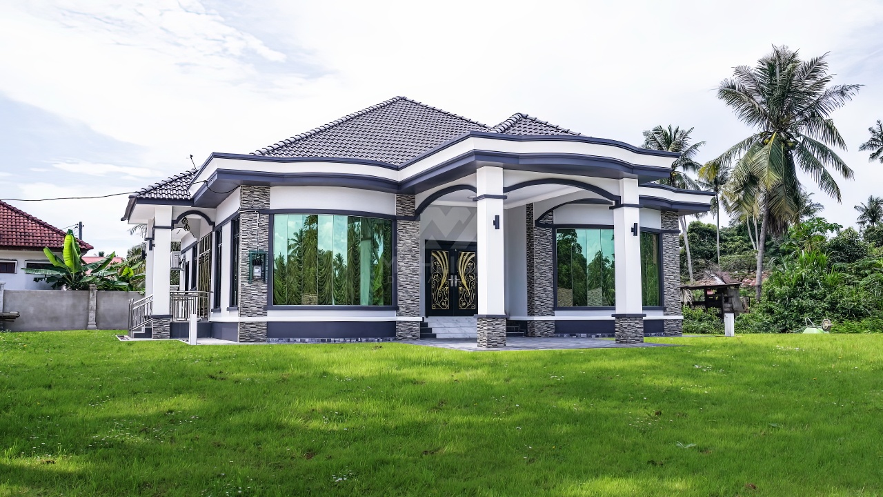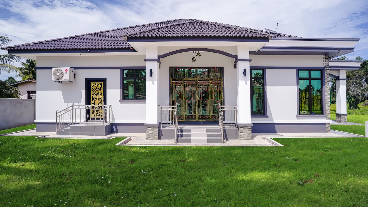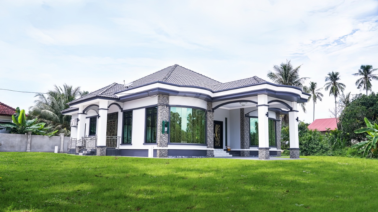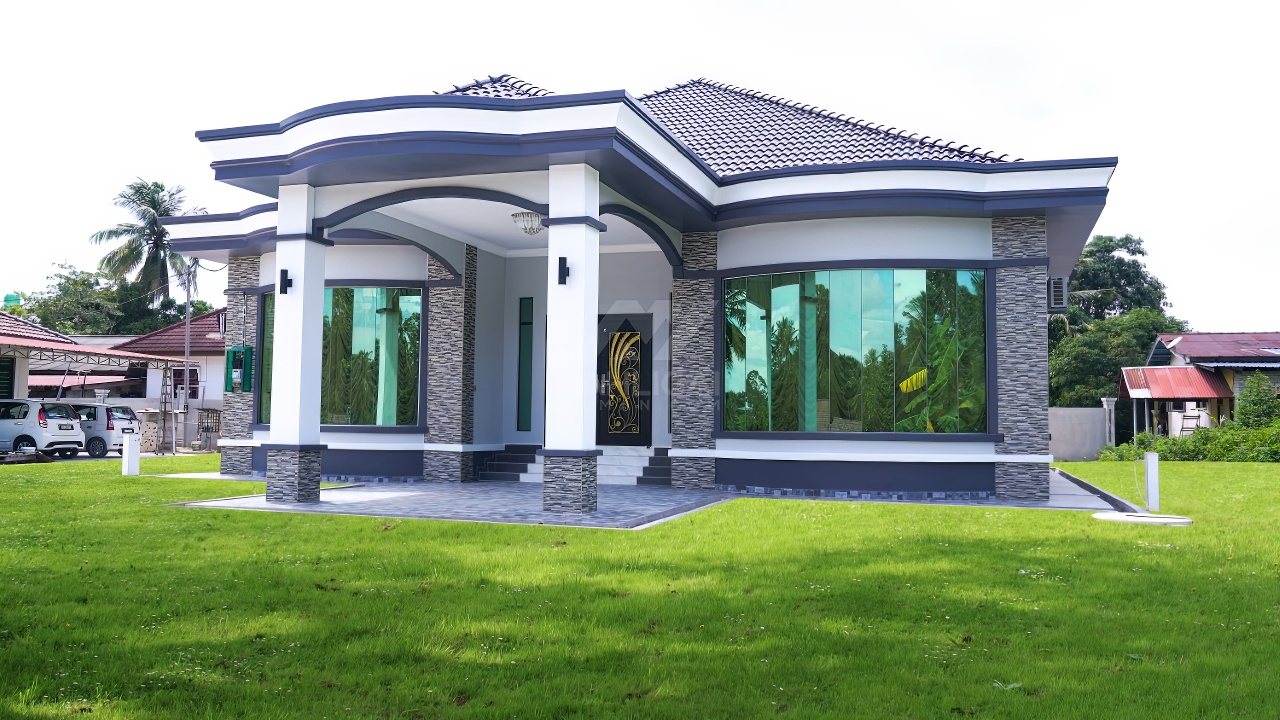 Banglo Idaman milik client kami yang terletak di Tumpat, Kelantan ini telah siap dibina sepenuhnya dengan keluasan 2328 kaki persegi dilengkapi empat (4) bilik tidur dan empat (4) bilik air. Banglo ini menggabungkan ciri-ciri berkonsepkan banglo moden seperti rekabentuk yang sangat unik disamping menerapkan beberapa ciri moden seperti penggunaan tingkap labuh bercermin gelap. Dari segi gabungan tona warna yang dipilih, banglo ini kelihatan mempunyai keunikan tersendiri dengan menggunakan warna putih dan kelabu.