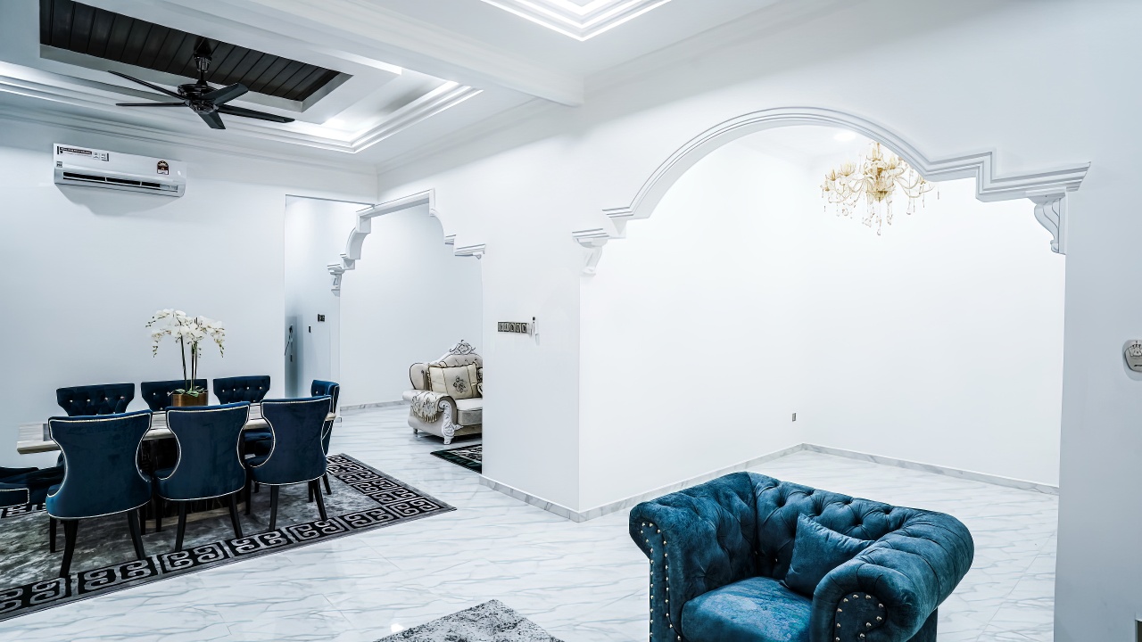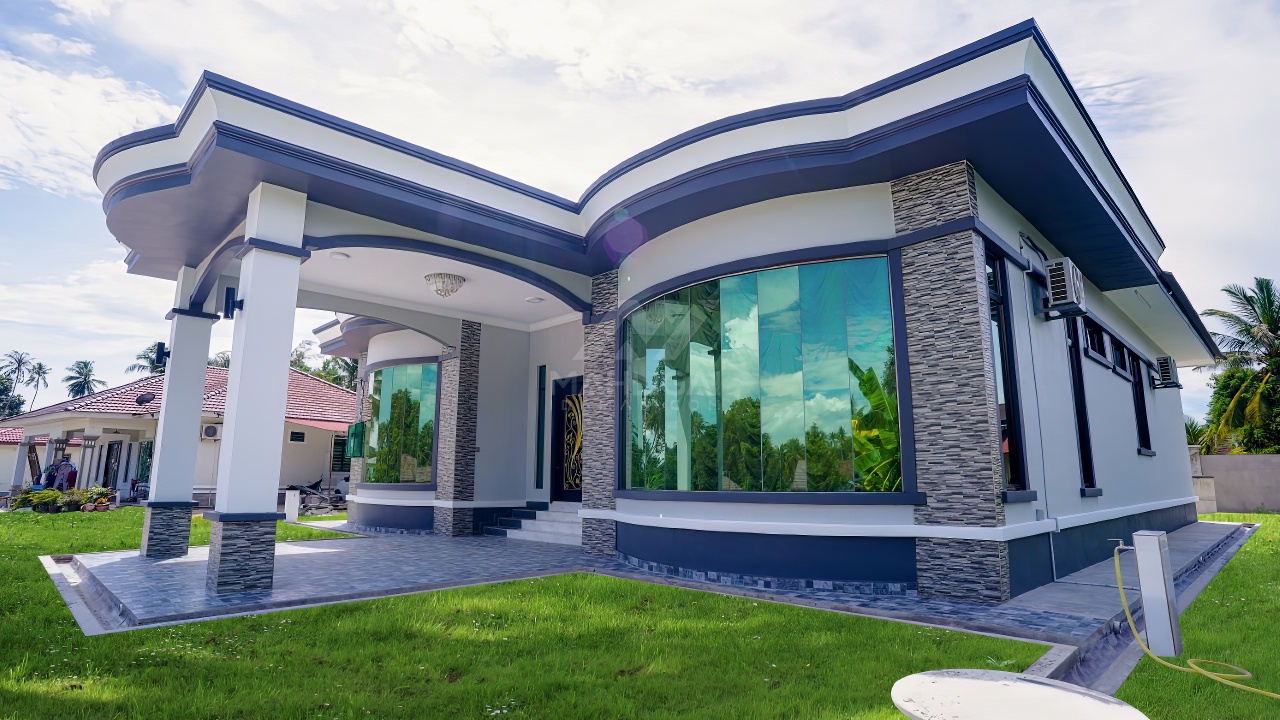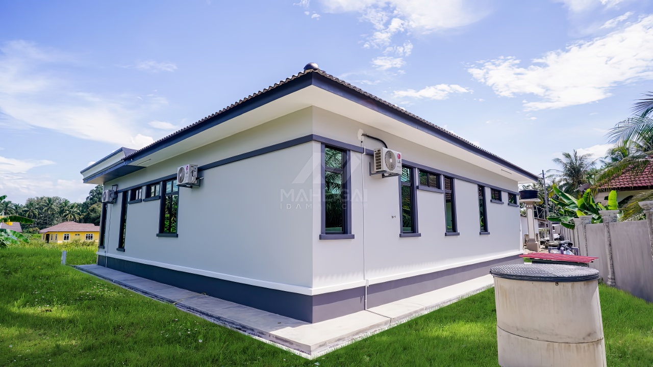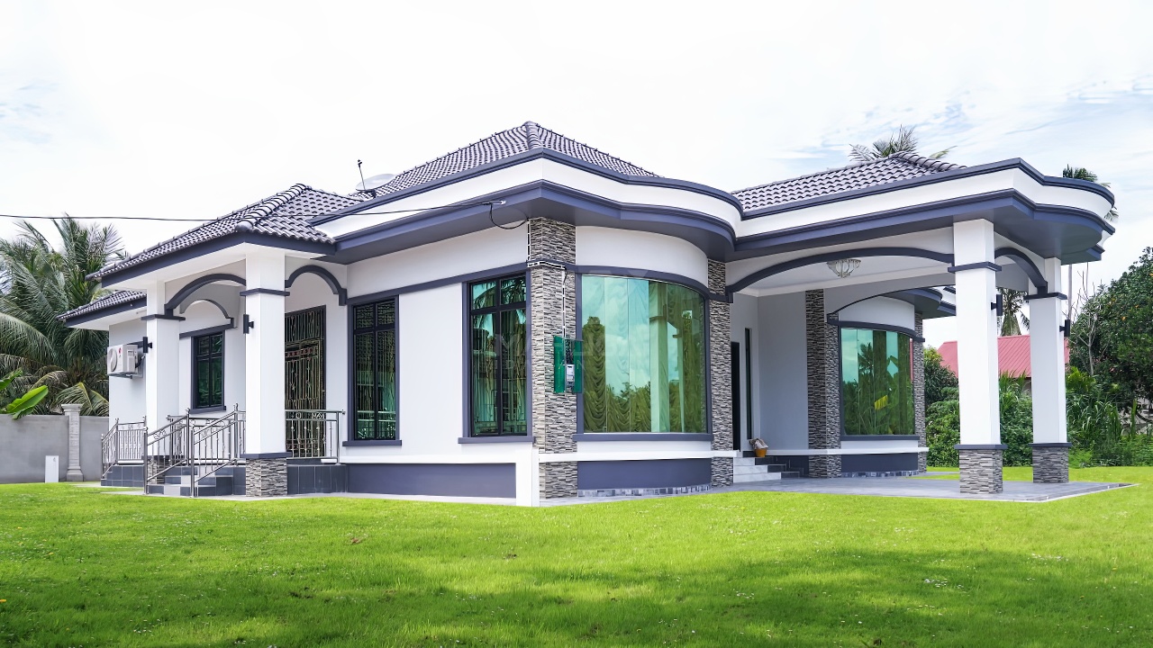 Banglo Idaman milik client kami yang terletak di Tumpat, Kelantan ini telah siap dibina sepenuhnya dengan keluasan 2328 kaki persegi dilengkapi empat (4) bilik tidur dan empat (4) bilik air. Banglo ini menggabungkan ciri-ciri berkonsepkan banglo moden seperti rekabentuk yang sangat unik disamping menerapkan beberapa ciri moden seperti penggunaan tingkap labuh bercermin gelap. Dari segi gabungan tona warna yang dipilih, banglo ini kelihatan mempunyai keunikan tersendiri dengan menggunakan warna putih dan kelabu.
