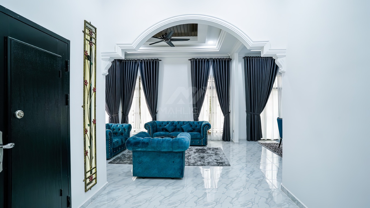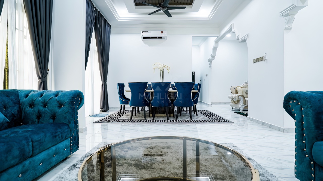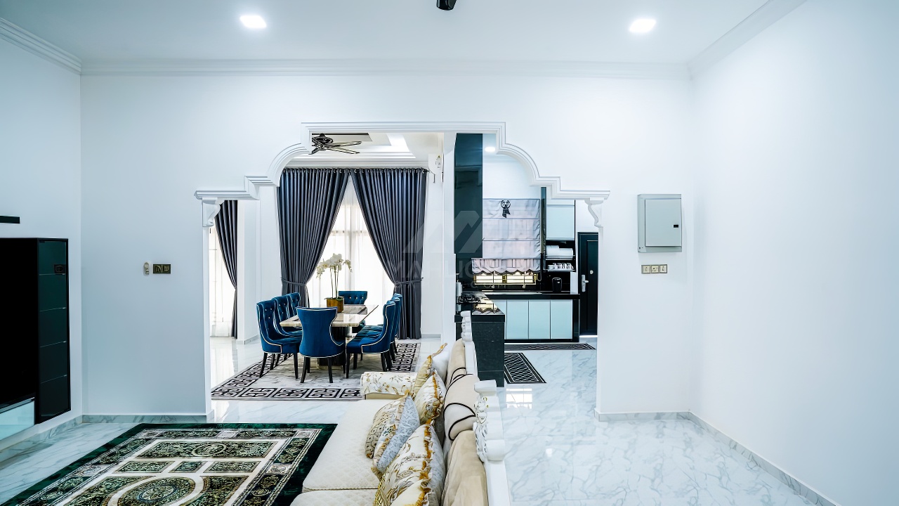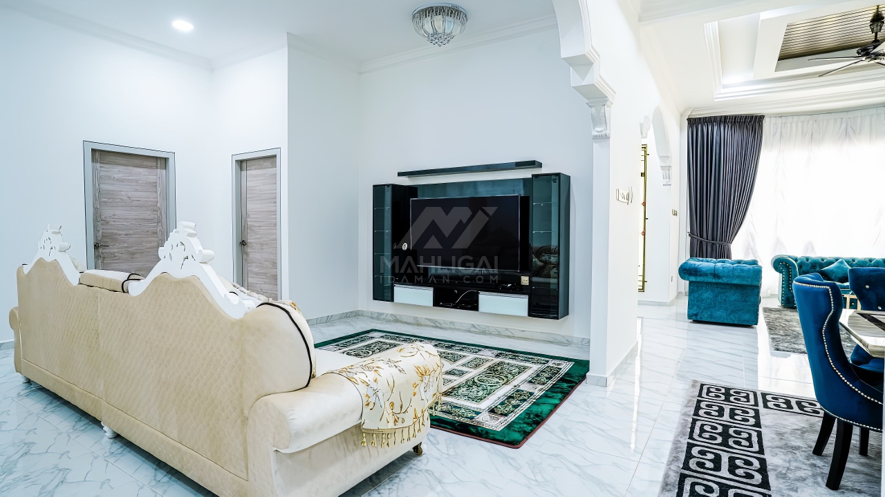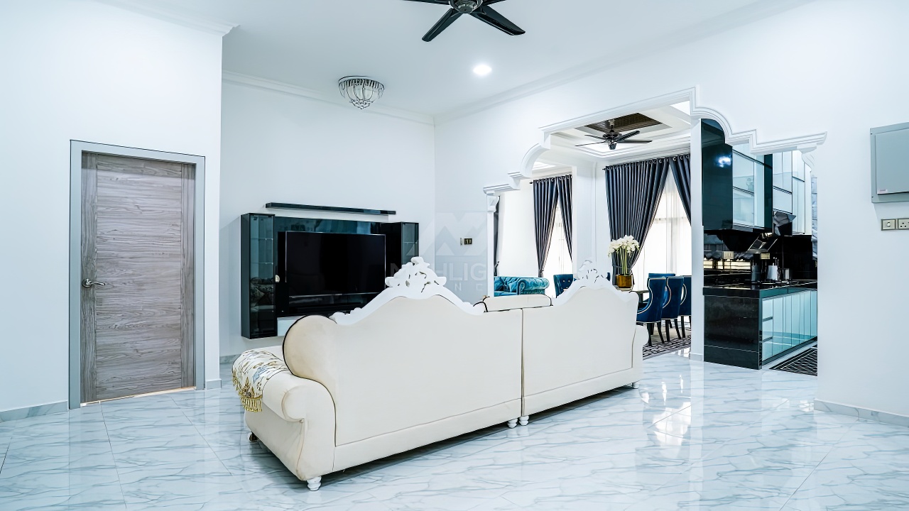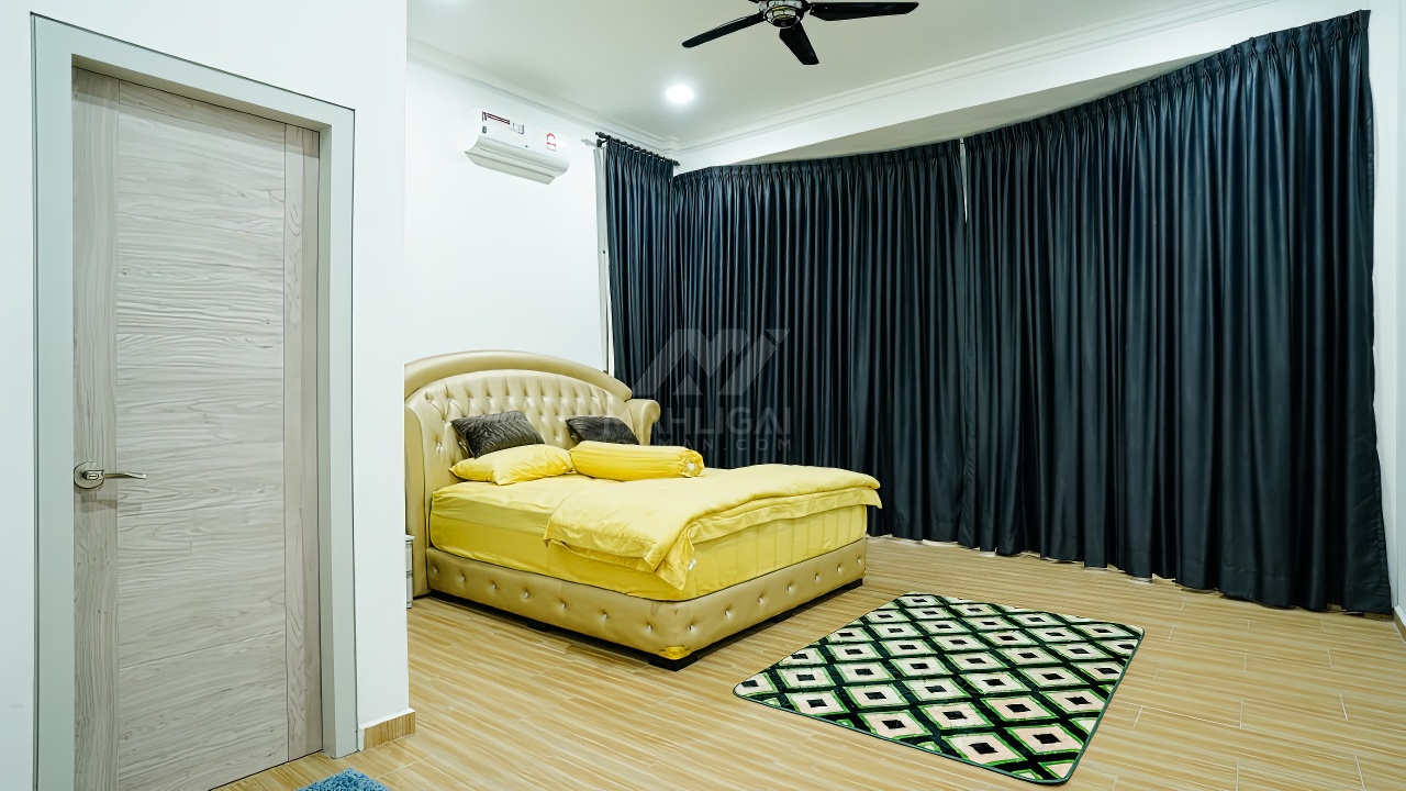 Banglo ini dibina dengan spesifikasi asas Pakej Gold dan beberapa penambahan dari sudut design seperti bilik solat dan dihiasi dengan corak bercirikan islamik, pemasangan cornice pada tingkap rumah, pemasangan hiasan aluminium (louvres) pada bahagian porch, torehan (groove line) pada dinding bahagian luar rumah, pemasangan batu hiasan pada dinding bahgian luar rumah, pemasangan tempered glass – aluminium handrailing pada bahagian entrance dan cermin berwarna hijau ‘see-through’.
