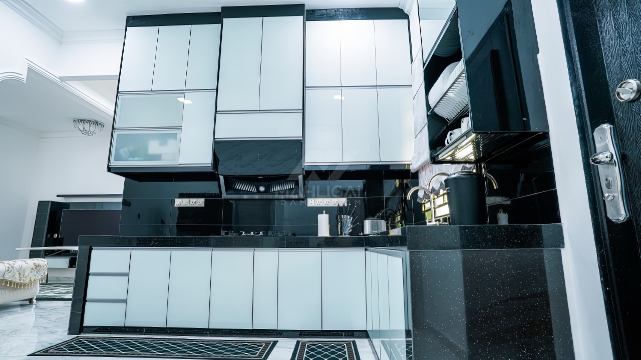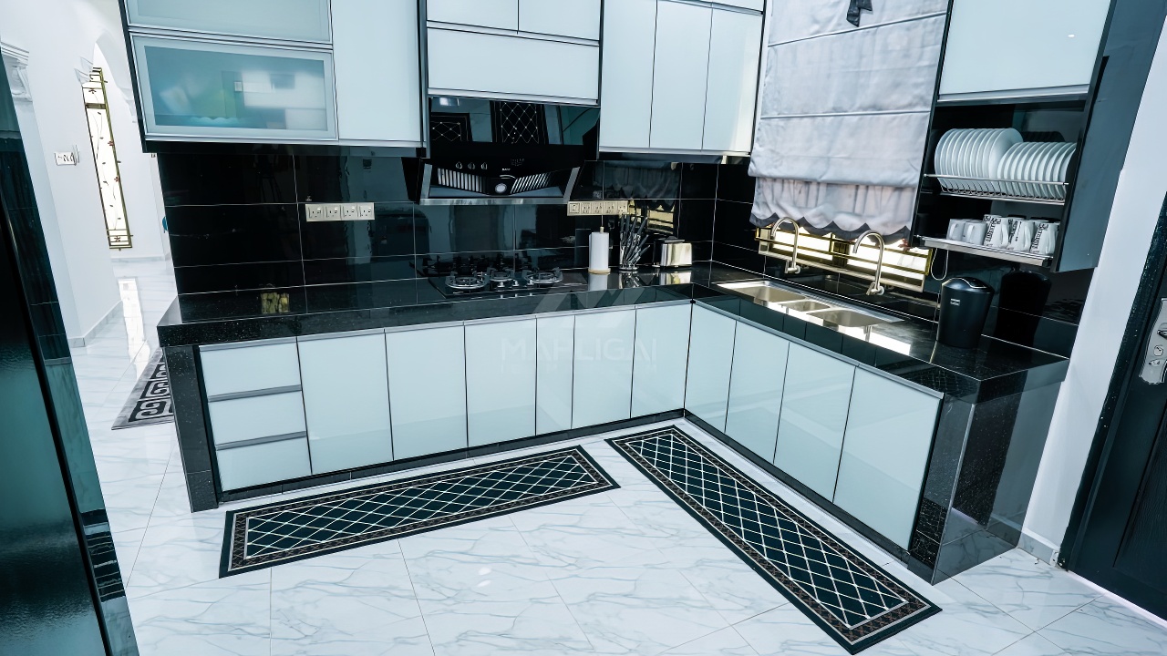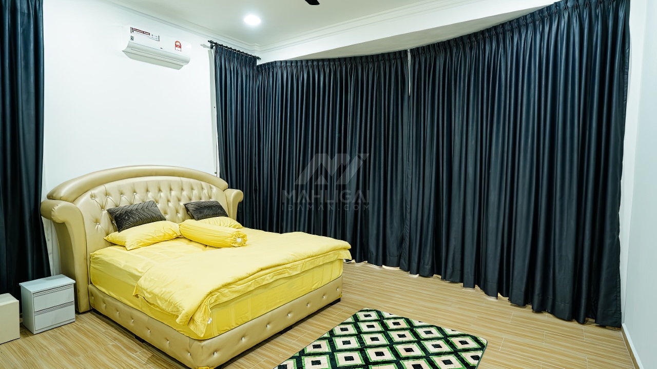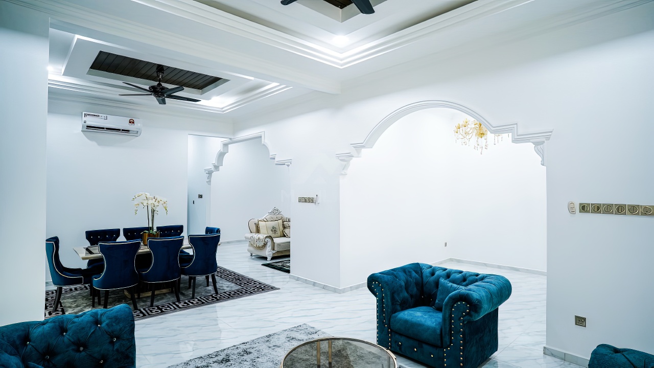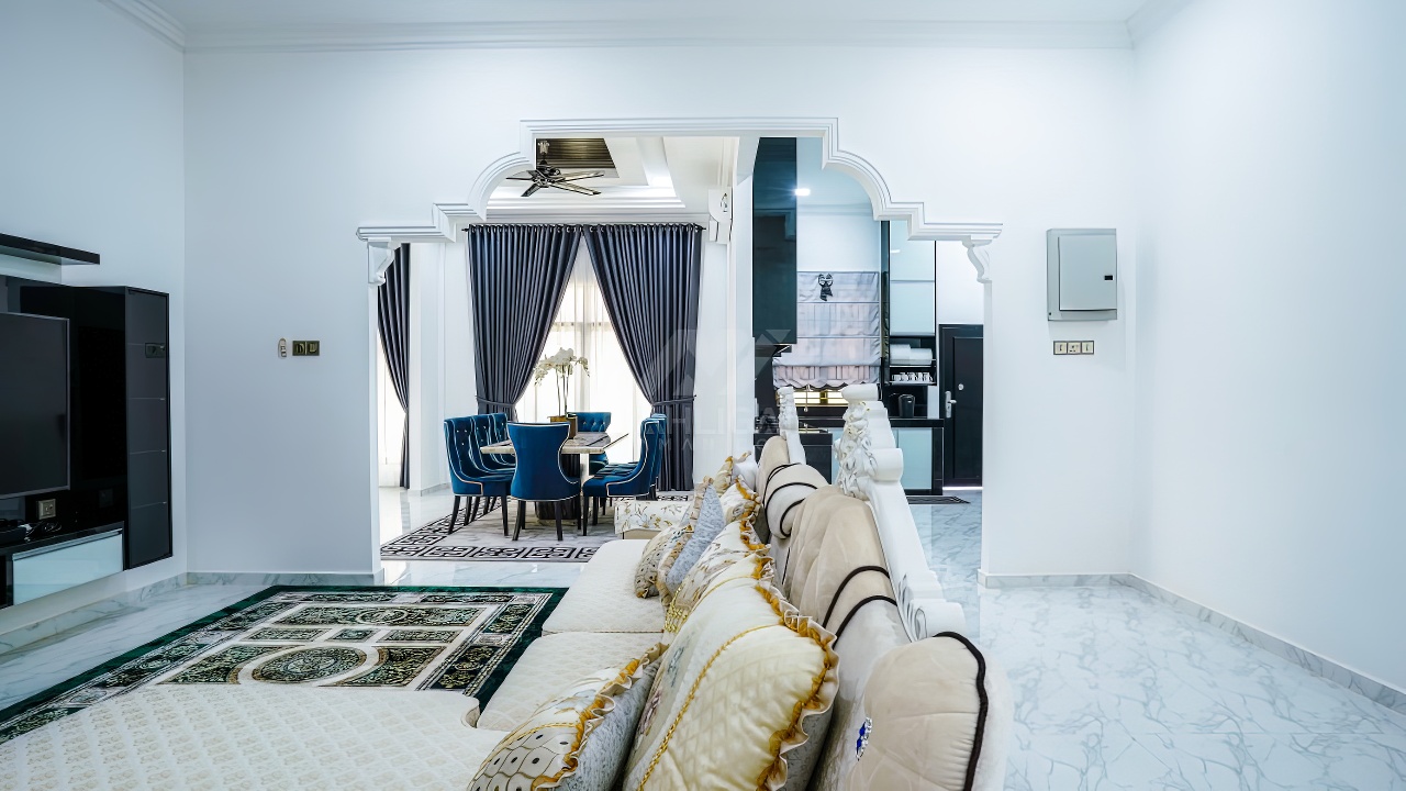 Banglo ini dibina dengan spesifikasi asas Pakej Gold dan beberapa penambahan dari sudut design seperti bilik solat dan dihiasi dengan corak bercirikan islamik, pemasangan cornice pada tingkap rumah, pemasangan hiasan aluminium (louvres) pada bahagian porch, torehan (groove line) pada dinding bahagian luar rumah, pemasangan batu hiasan pada dinding bahgian luar rumah, pemasangan tempered glass – aluminium handrailing pada bahagian entrance dan cermin berwarna hijau ‘see-through’.