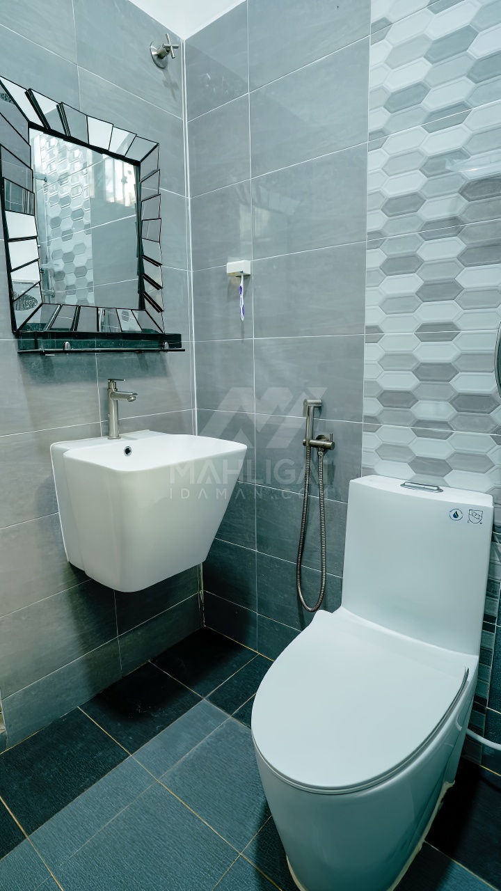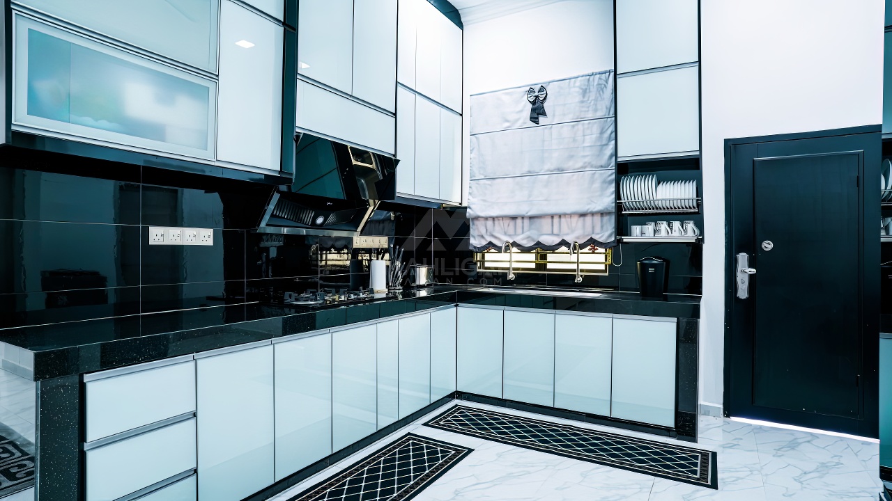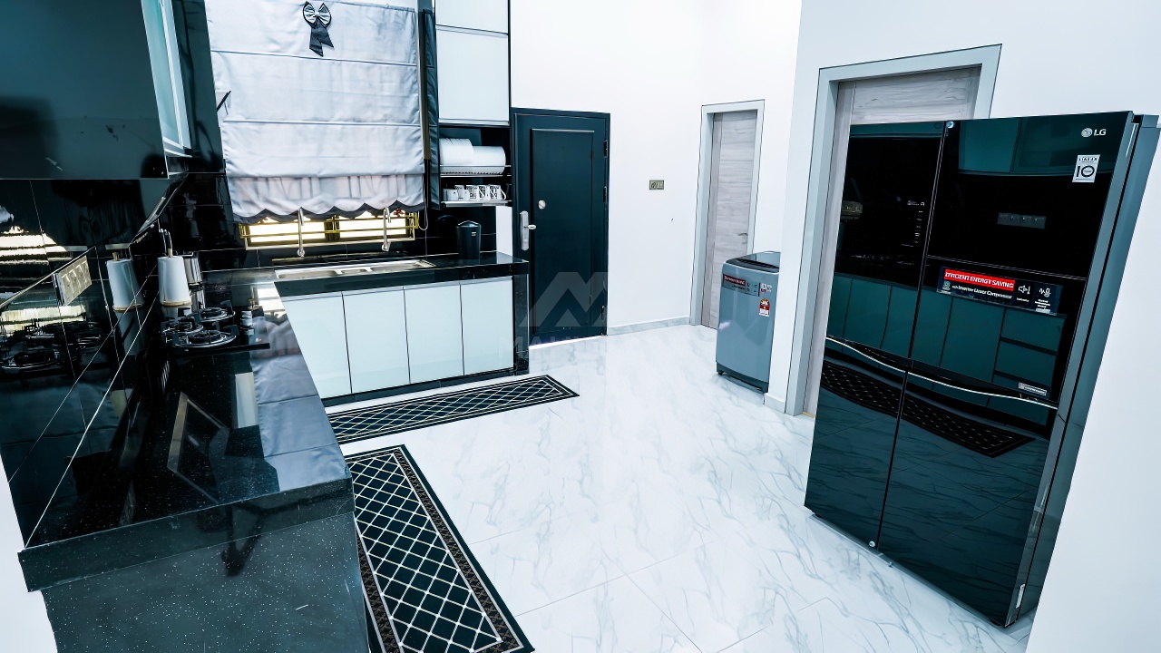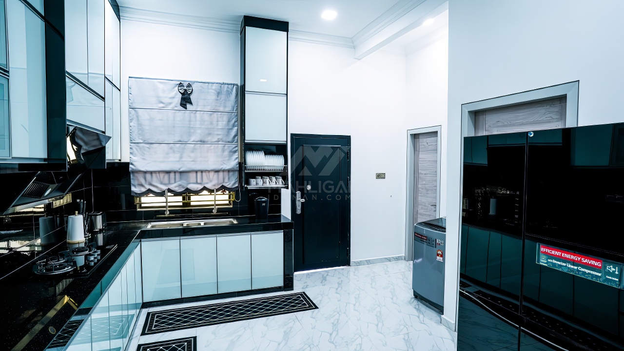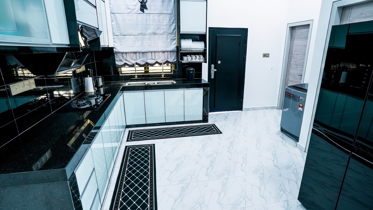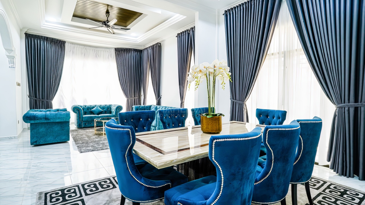 Banglo ini dibina dengan spesifikasi asas Pakej Gold dan beberapa penambahan dari sudut design seperti bilik solat dan dihiasi dengan corak bercirikan islamik, pemasangan cornice pada tingkap rumah, pemasangan hiasan aluminium (louvres) pada bahagian porch, torehan (groove line) pada dinding bahagian luar rumah, pemasangan batu hiasan pada dinding bahgian luar rumah, pemasangan tempered glass – aluminium handrailing pada bahagian entrance dan cermin berwarna hijau ‘see-through’.