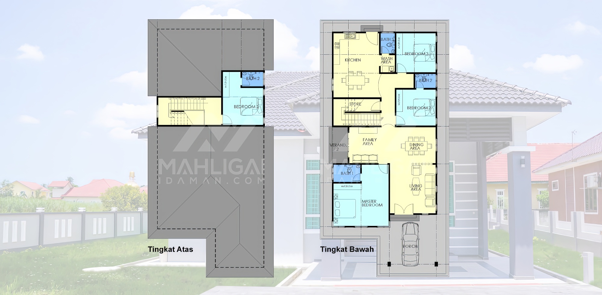 Banglo ini dibina dengan spesifikasi asas Pakej Silver dan beberapa penambahan dari sudut design seperti groove line pada bahagian dinding luar rumah, pemasangan cornice pada bahagian tingkap dan dinding luar rumah, penggunaan powder coating white frame + see through green glass pada keseluruhan tingkap serta naiktaraf pemasangan stainless steel handrailing pada bahagian tangga dalam – upstairs.