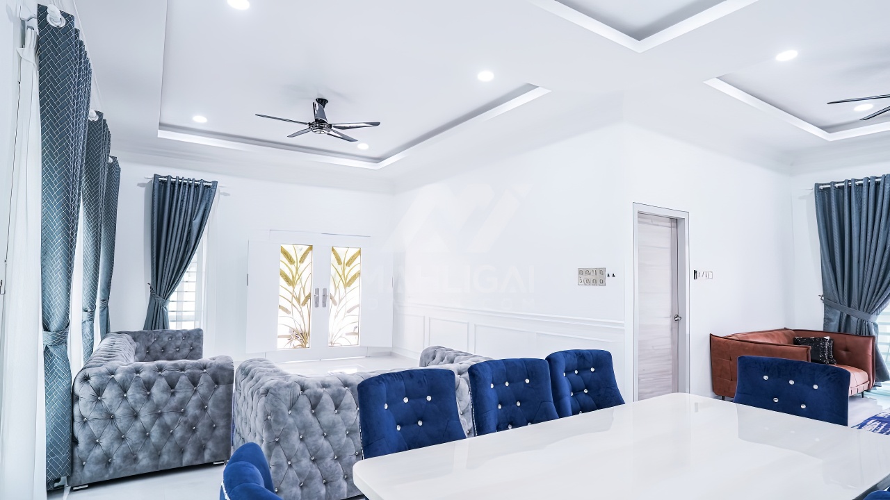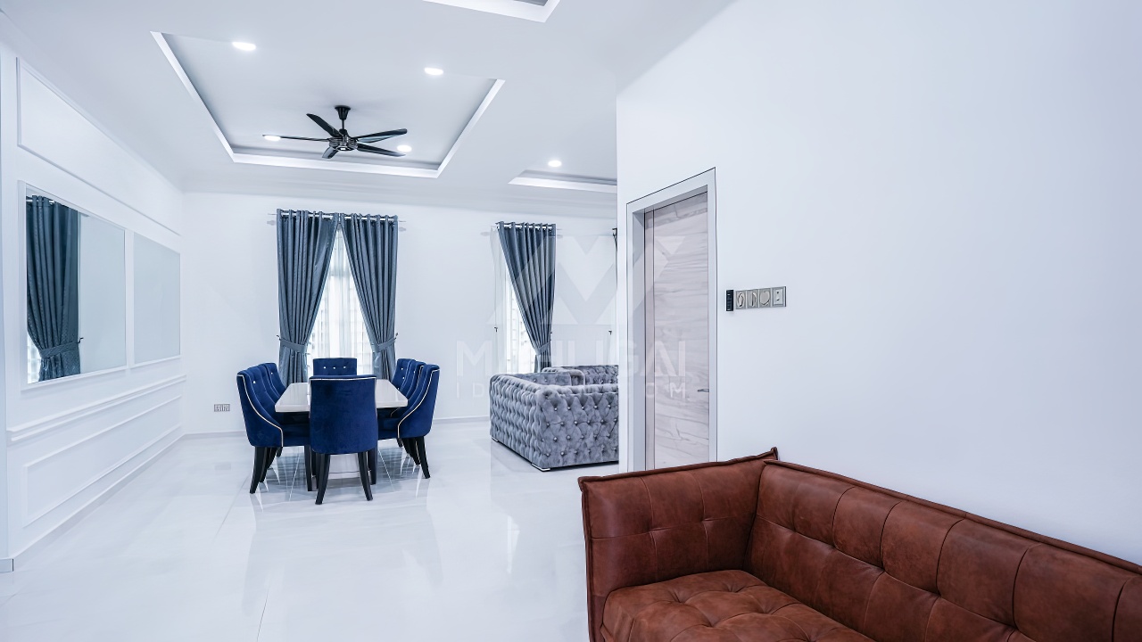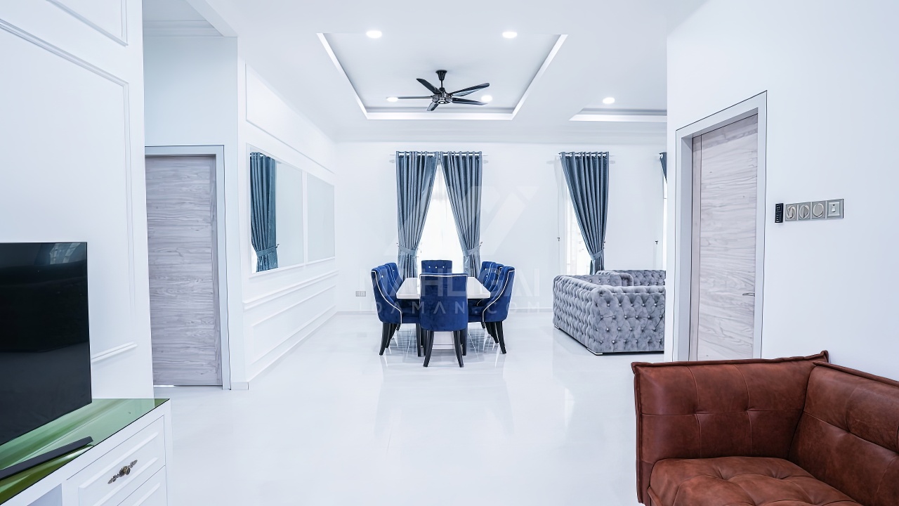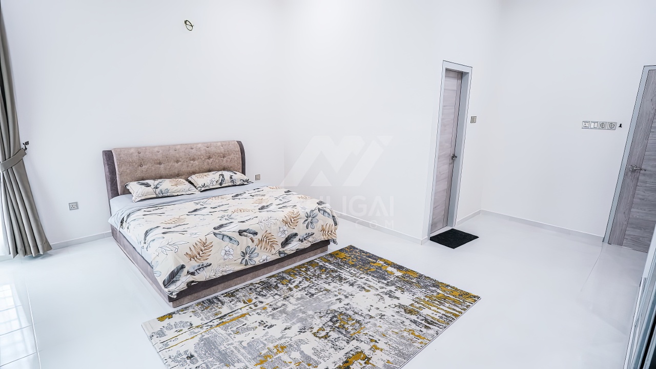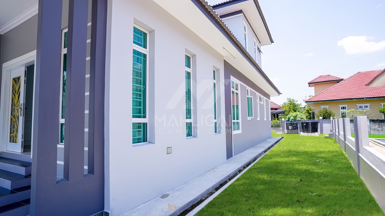 Banglo ini dibina dengan spesifikasi asas Pakej Silver dan beberapa penambahan dari sudut design seperti groove line pada bahagian dinding luar rumah, pemasangan cornice pada bahagian tingkap dan dinding luar rumah, penggunaan powder coating white frame + see through green glass pada keseluruhan tingkap serta naiktaraf pemasangan stainless steel handrailing pada bahagian tangga dalam – upstairs.