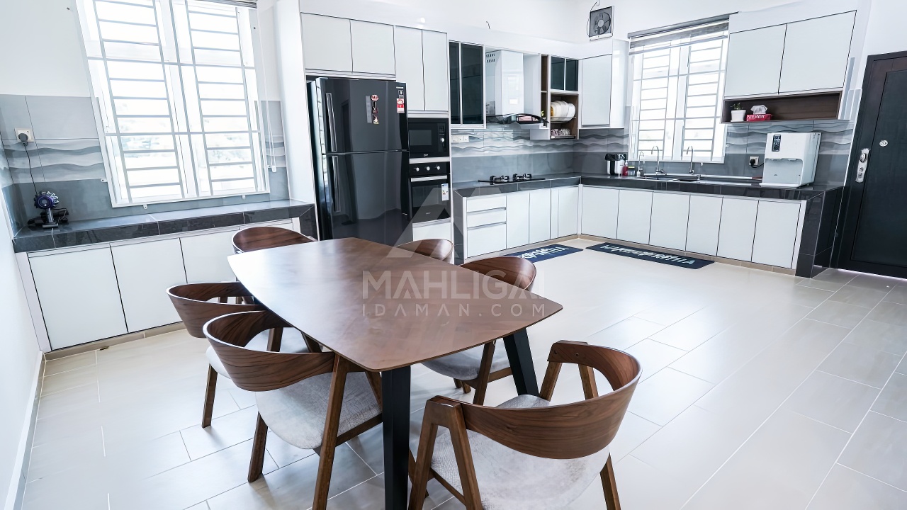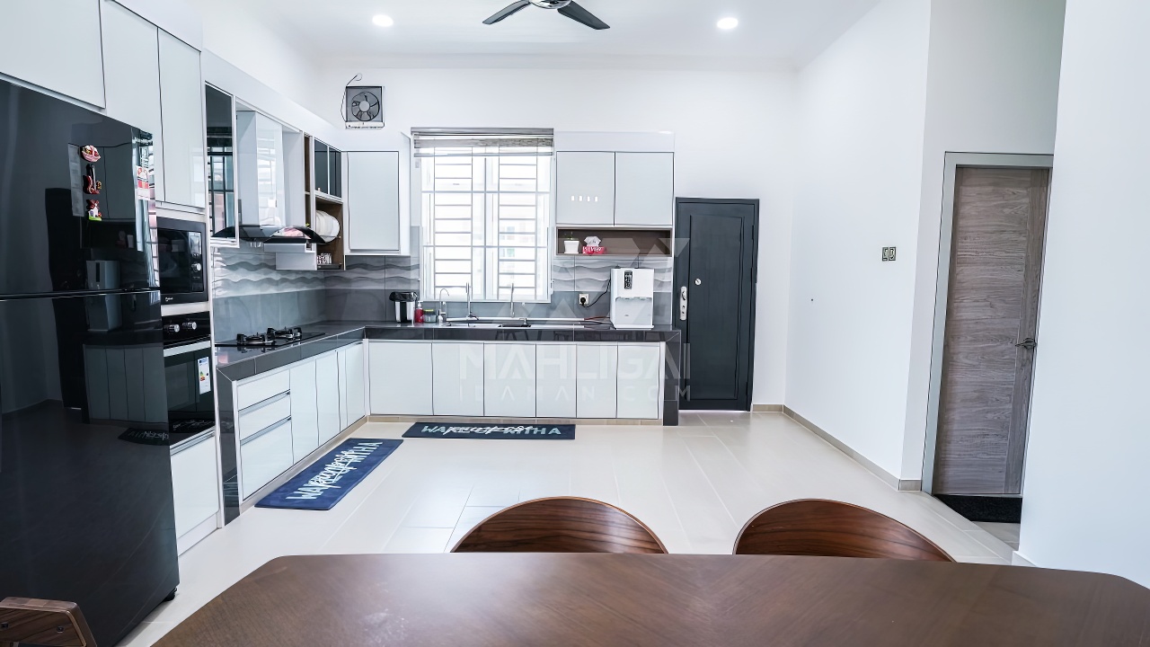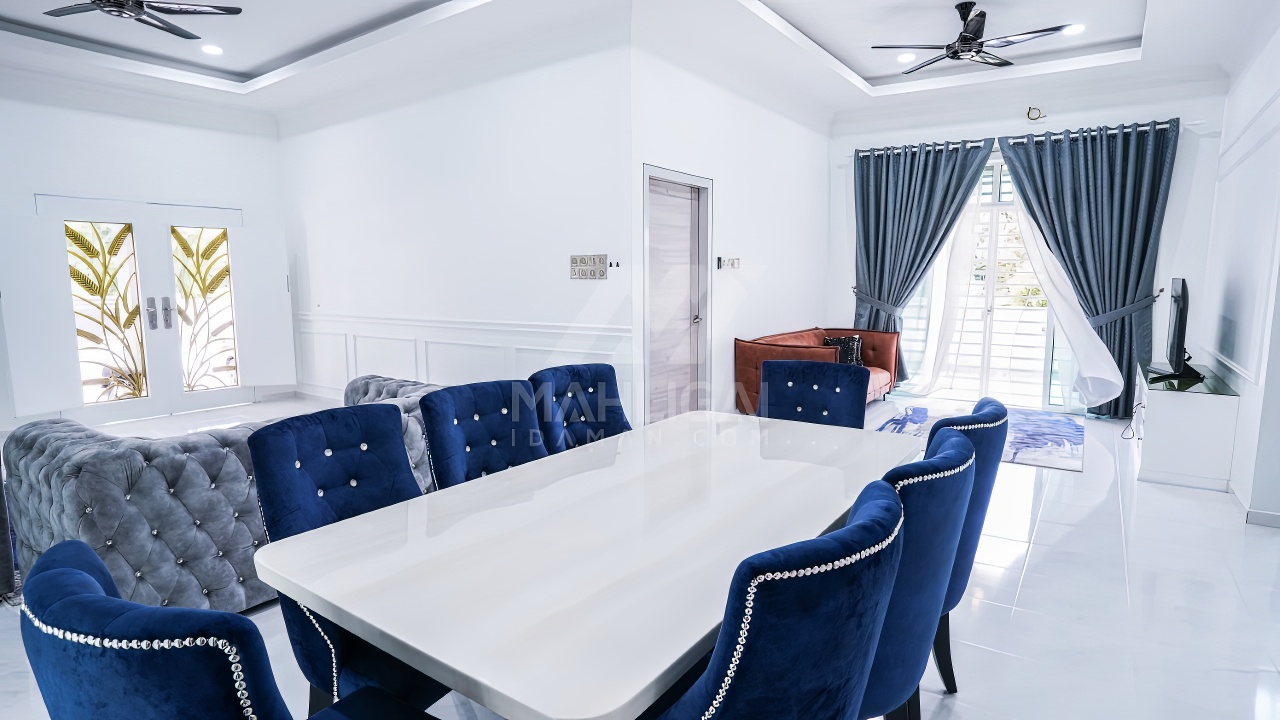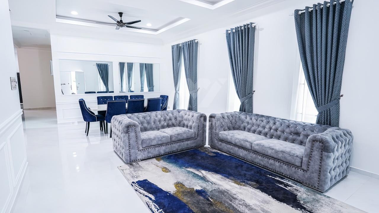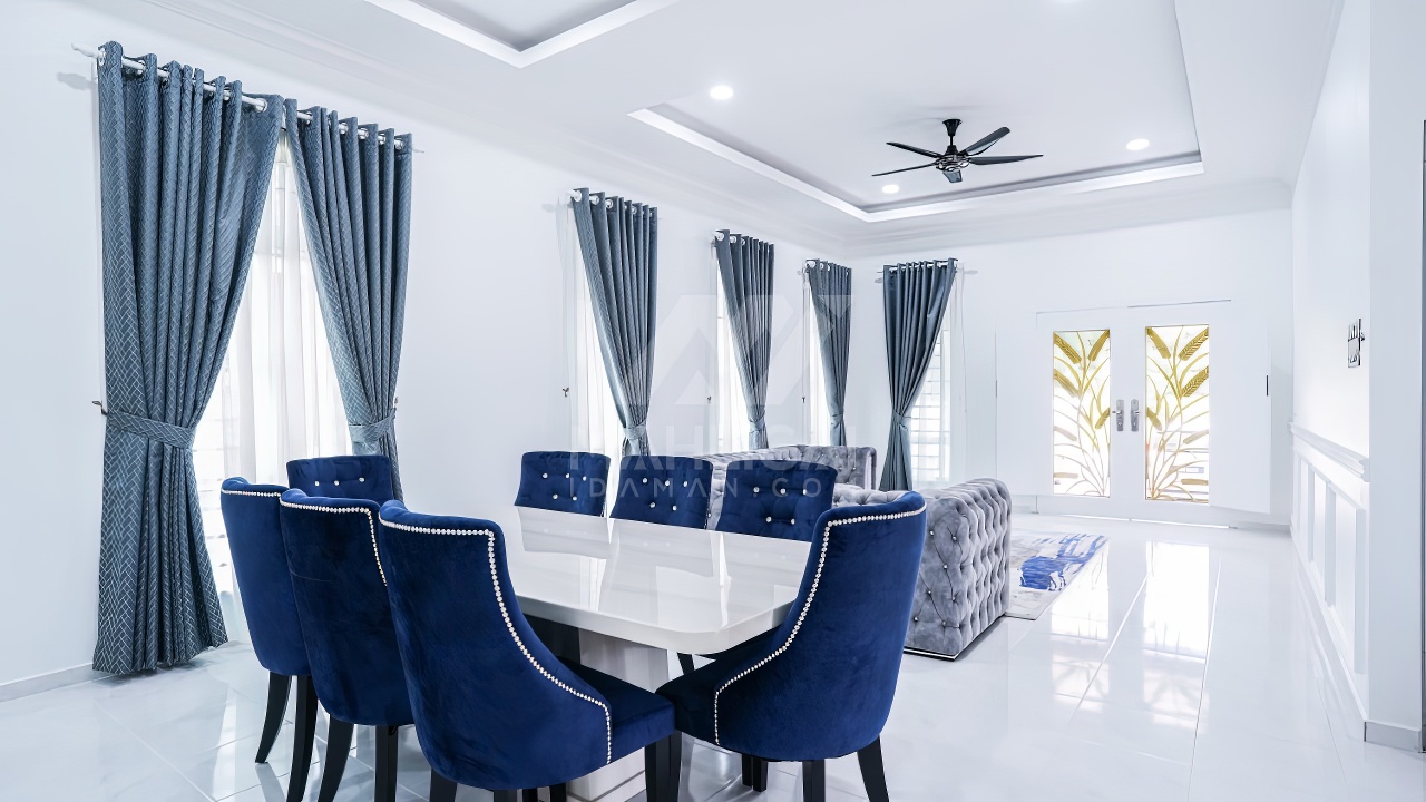 Banglo ini dibina dengan spesifikasi asas Pakej Silver dan beberapa penambahan dari sudut design seperti groove line pada bahagian dinding luar rumah, pemasangan cornice pada bahagian tingkap dan dinding luar rumah, penggunaan powder coating white frame + see through green glass pada keseluruhan tingkap serta naiktaraf pemasangan stainless steel handrailing pada bahagian tangga dalam – upstairs.