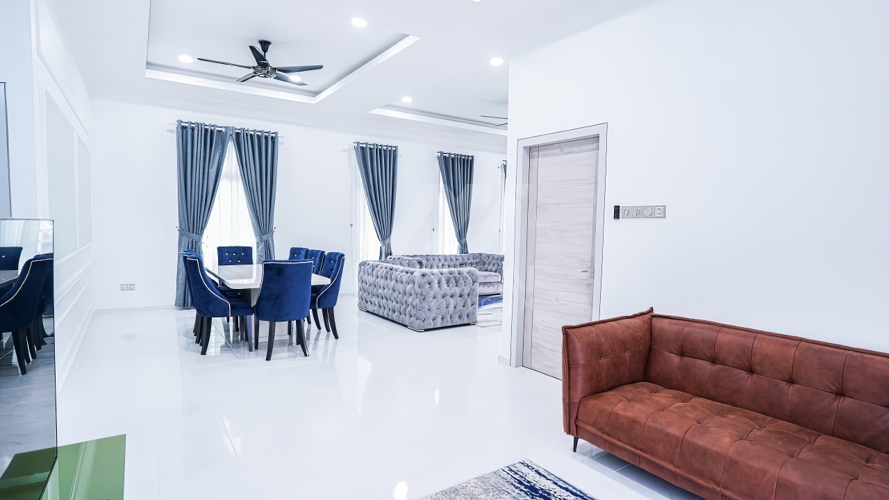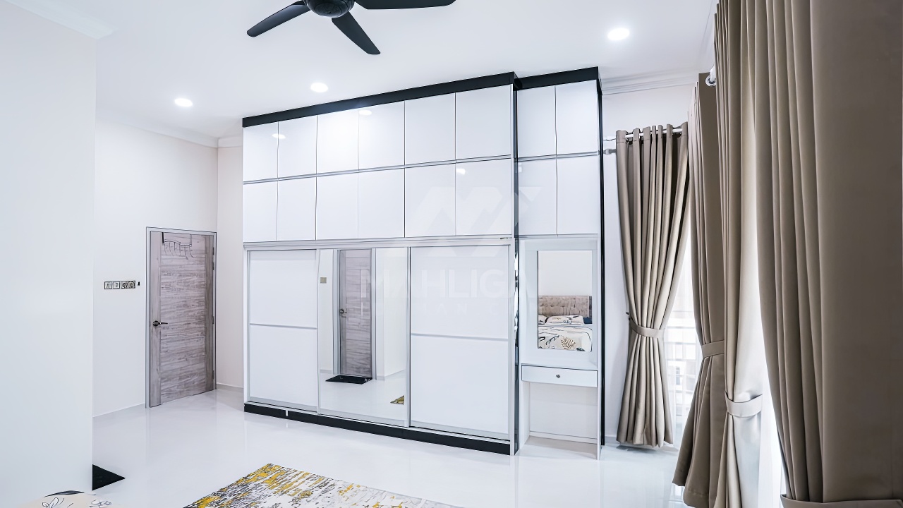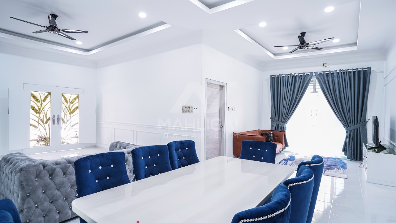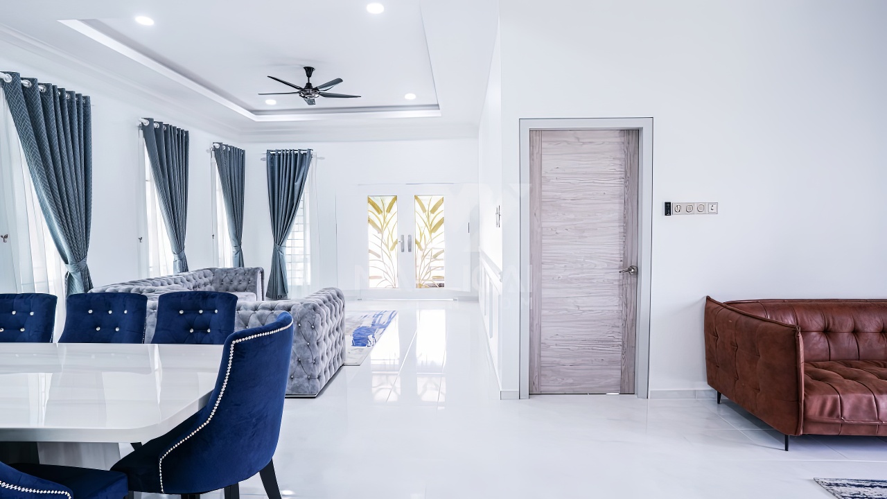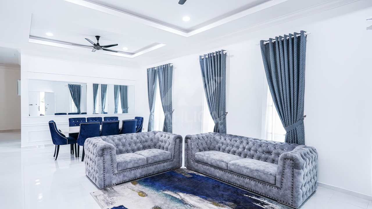 Banglo ini dibina dengan spesifikasi asas Pakej Silver dan beberapa penambahan dari sudut design seperti groove line pada bahagian dinding luar rumah, pemasangan cornice pada bahagian tingkap dan dinding luar rumah, penggunaan powder coating white frame + see through green glass pada keseluruhan tingkap serta naiktaraf pemasangan stainless steel handrailing pada bahagian tangga dalam – upstairs.