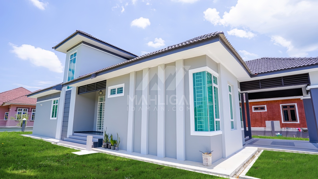 Banglo satu tingkat yang dibina di Wakaf Bharu, Kelantan ini mempunyai empat (4) bilik tidur dan empat (4) bilik air. Banglo ini menggabungkan ciri-ciri banglo moden seperti penggunaan tingkap labuh see through green glass pada keseluruhan tingkap dan penggunaan tona warna purple yang digabungkan dengan warna kelabu menaikkan lagi kontra warna tersebut.