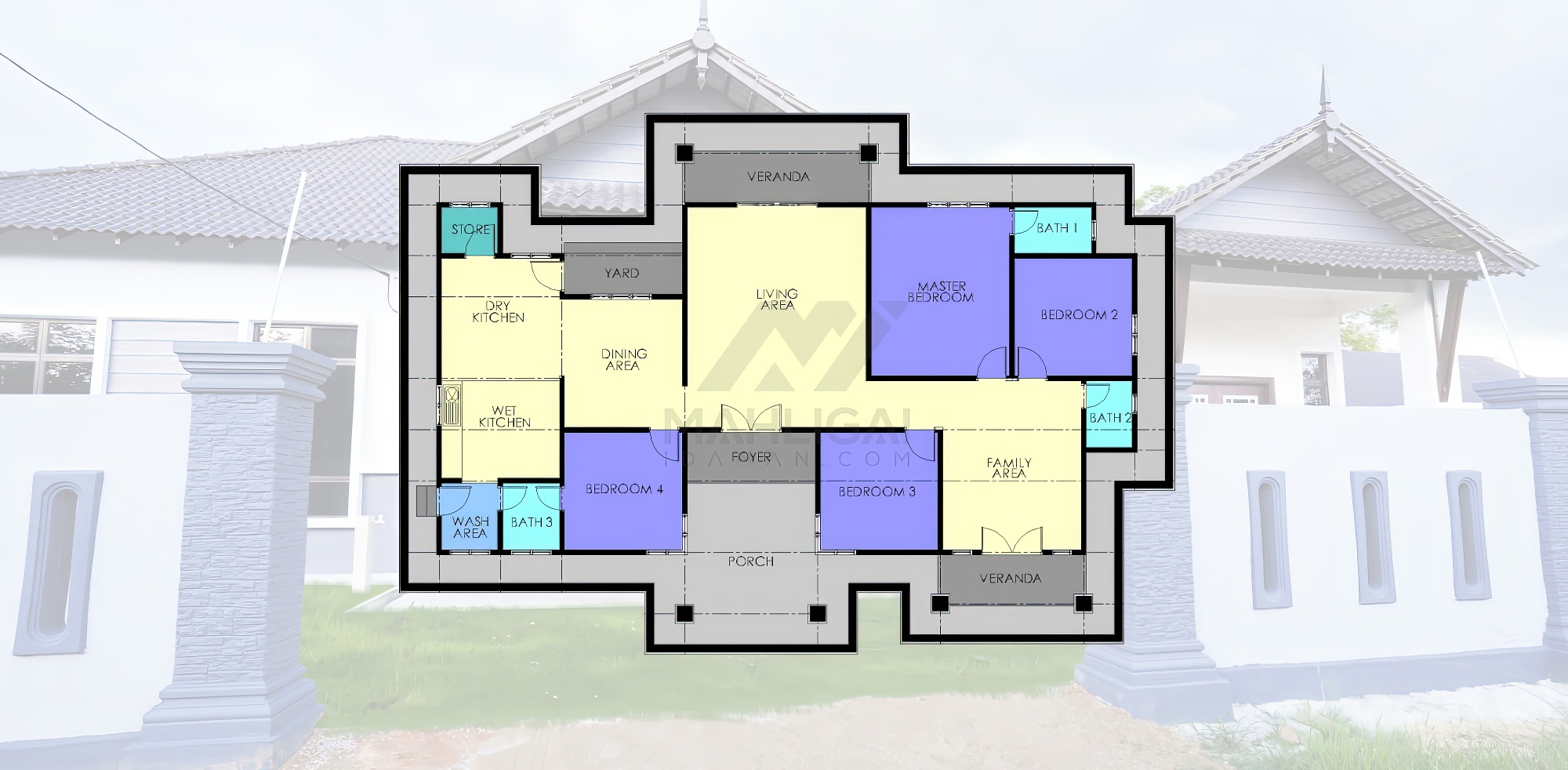 Banglo satu tingkat milik klien kami yang telah siap dibina sepenuhnya di Kuala Berang, Terengganu ini mempunyai empat (4) bilik tidur dan tiga (3) bilik air. Banglo ini menggabungkan ciri-ciri banglo moden tradisional seperti penggunaan kayu petunjuk langit di bahagian bumbung serta penggunaan kayu hiasan tetupang pada bahagian bumbung rumah. Dari segi penggunaan tona warna pula, pemilik memilih warna putih dan kelabu menaikkan lagi kontra warna tersebut.