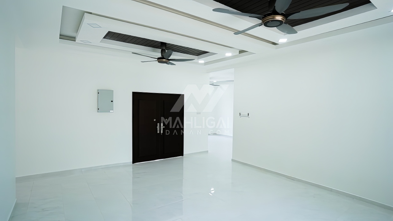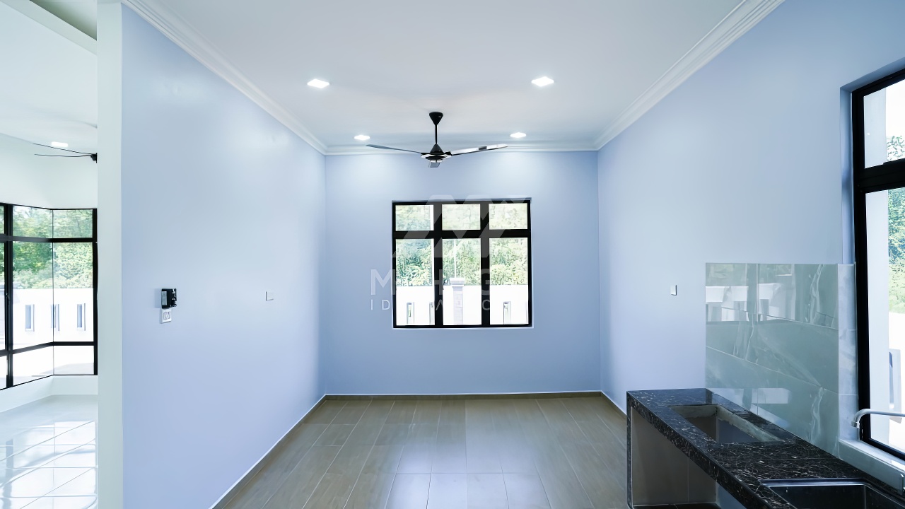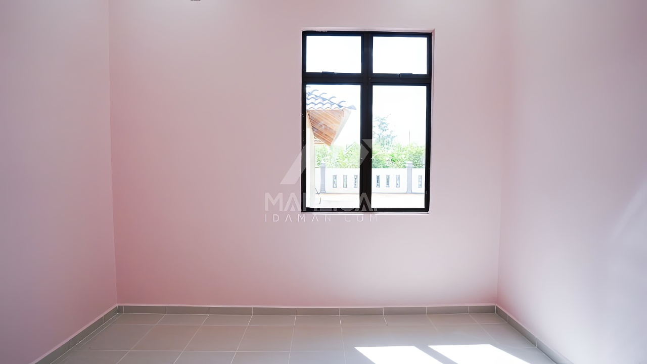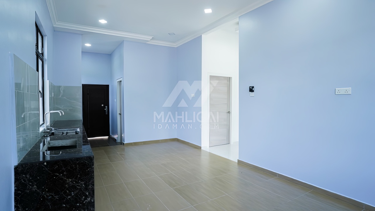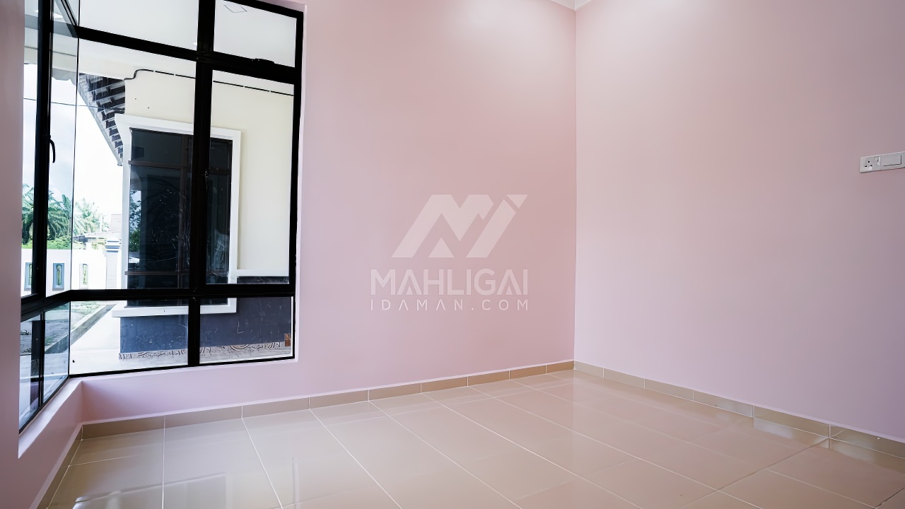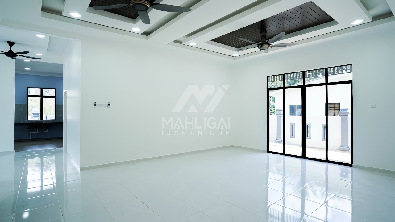 Banglo satu tingkat milik klien kami yang telah siap dibina sepenuhnya di Kuala Berang, Terengganu ini mempunyai empat (4) bilik tidur dan tiga (3) bilik air. Banglo ini menggabungkan ciri-ciri banglo moden tradisional seperti penggunaan kayu petunjuk langit di bahagian bumbung serta penggunaan kayu hiasan tetupang pada bahagian bumbung rumah. Dari segi penggunaan tona warna pula, pemilik memilih warna putih dan kelabu menaikkan lagi kontra warna tersebut.