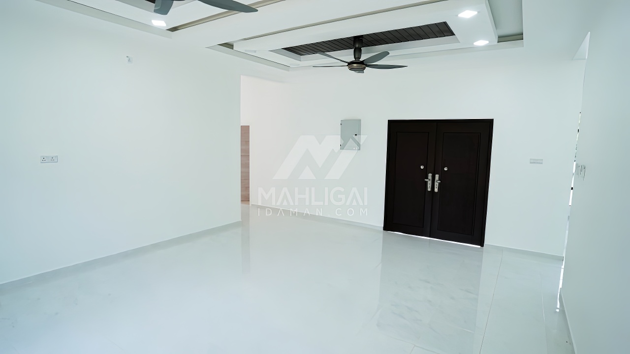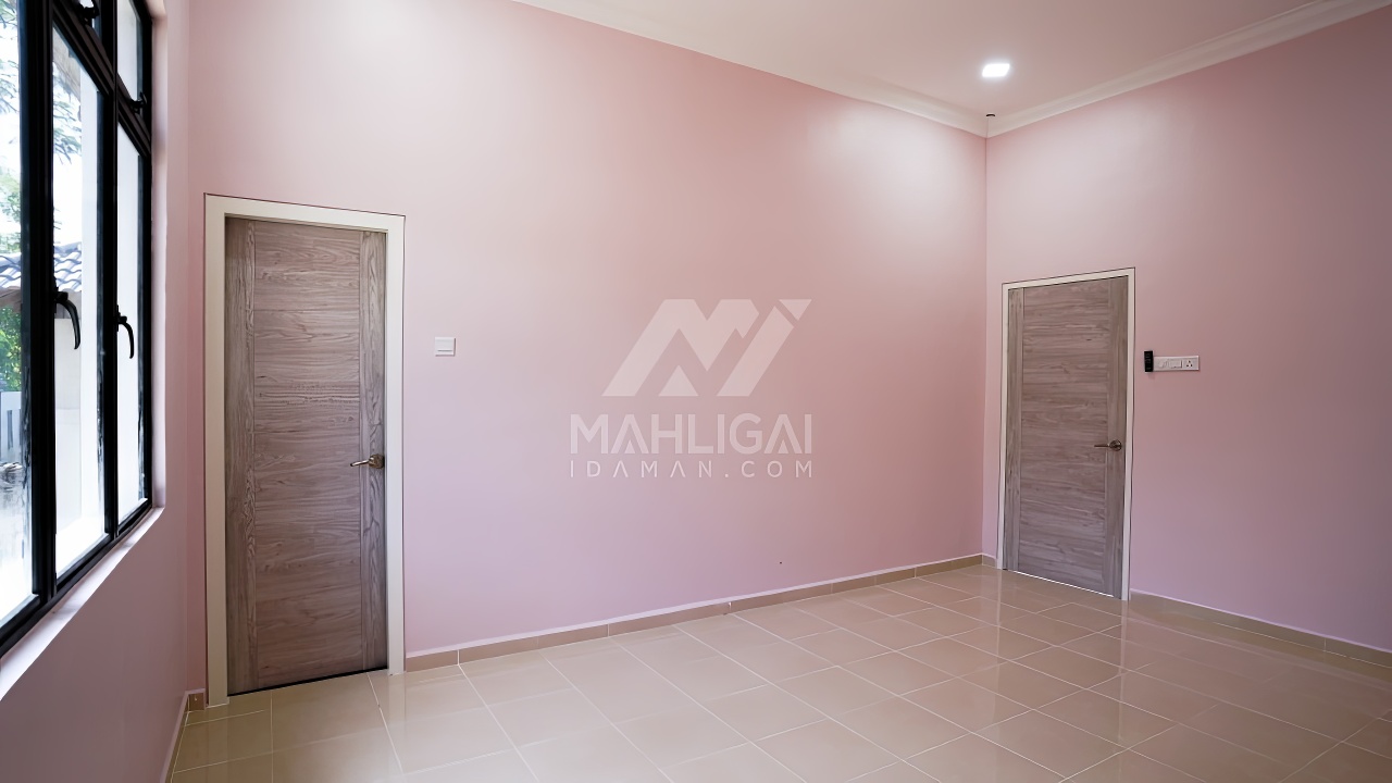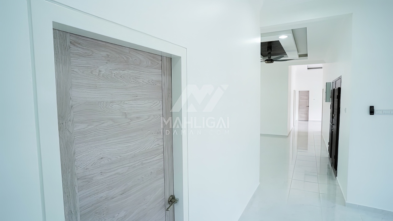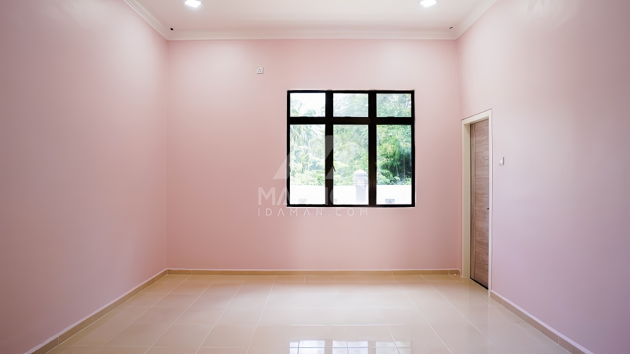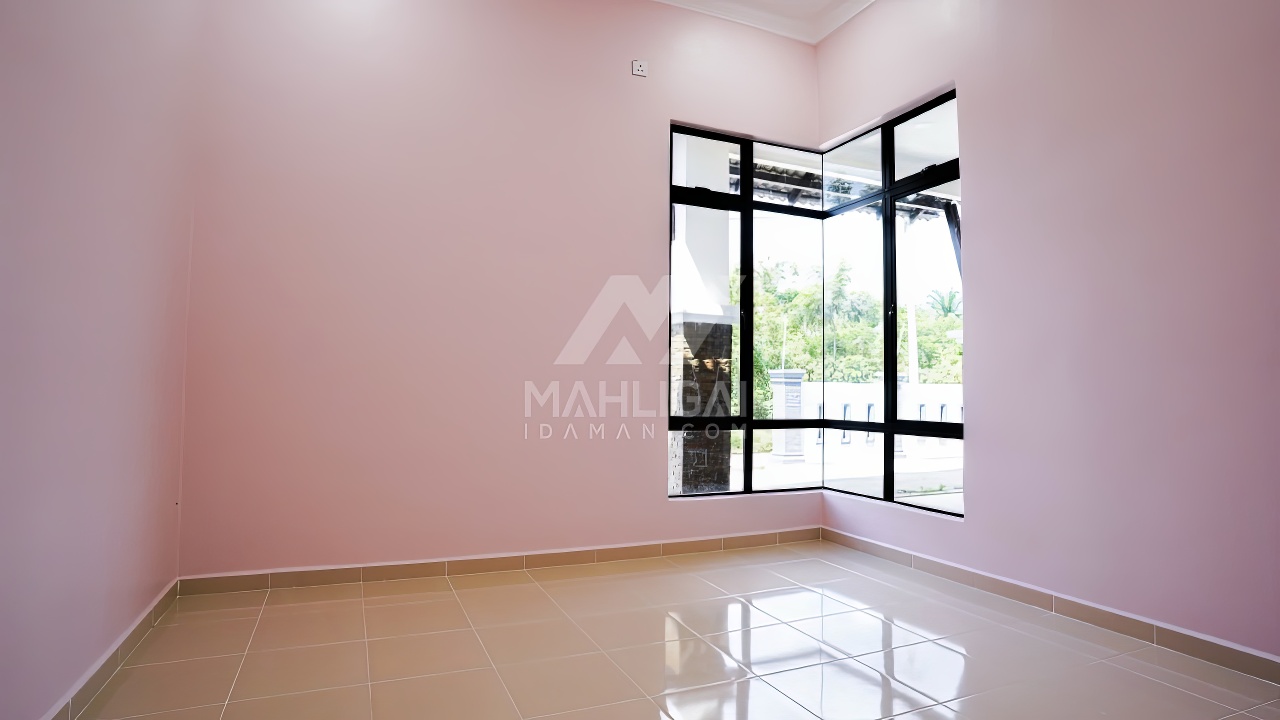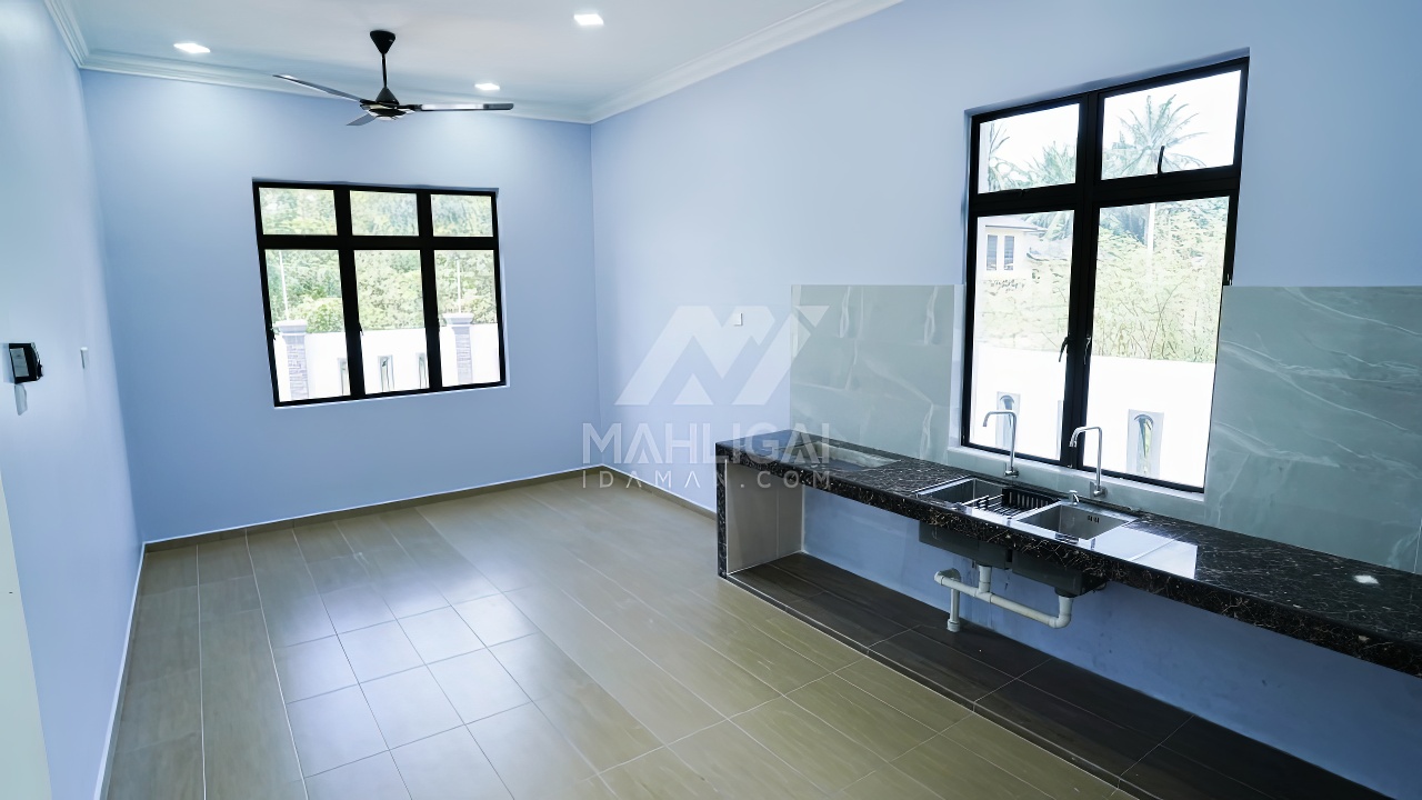 Banglo satu tingkat milik klien kami yang telah siap dibina sepenuhnya di Kuala Berang, Terengganu ini mempunyai empat (4) bilik tidur dan tiga (3) bilik air. Banglo ini menggabungkan ciri-ciri banglo moden tradisional seperti penggunaan kayu petunjuk langit di bahagian bumbung serta penggunaan kayu hiasan tetupang pada bahagian bumbung rumah. Dari segi penggunaan tona warna pula, pemilik memilih warna putih dan kelabu menaikkan lagi kontra warna tersebut.