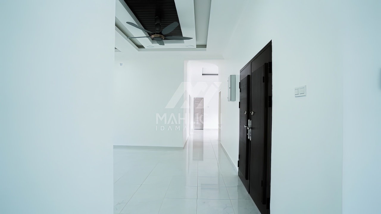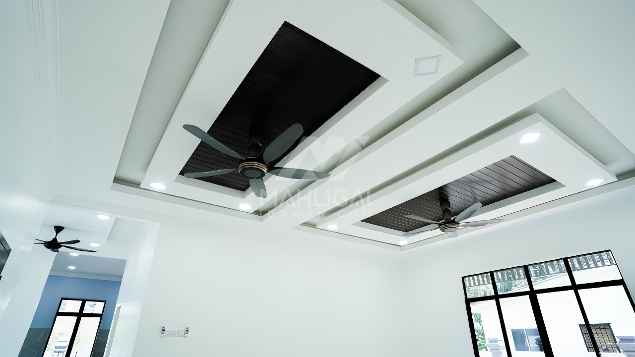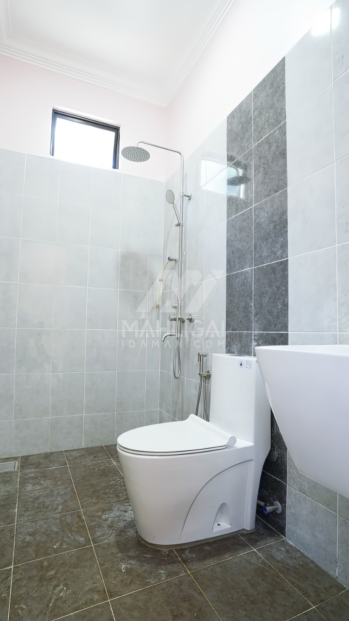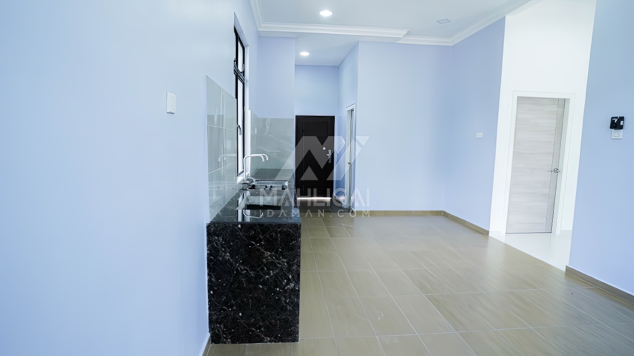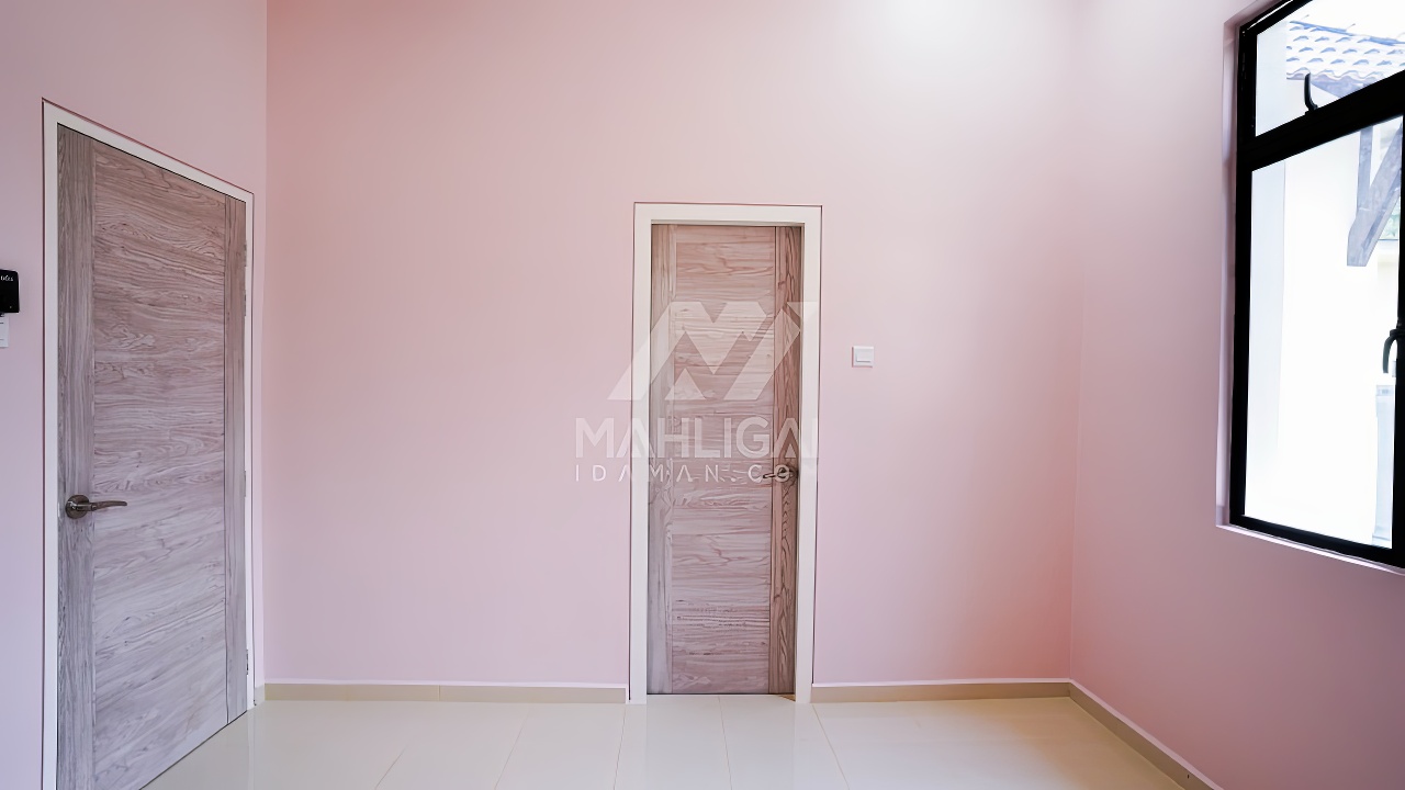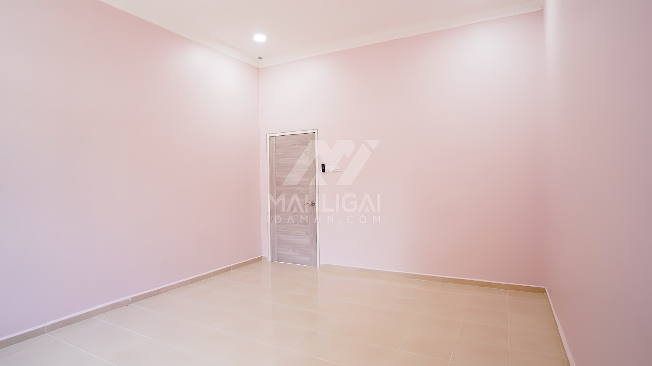 Banglo satu tingkat milik klien kami yang telah siap dibina sepenuhnya di Kuala Berang, Terengganu ini mempunyai empat (4) bilik tidur dan tiga (3) bilik air. Banglo ini menggabungkan ciri-ciri banglo moden tradisional seperti penggunaan kayu petunjuk langit di bahagian bumbung serta penggunaan kayu hiasan tetupang pada bahagian bumbung rumah. Dari segi penggunaan tona warna pula, pemilik memilih warna putih dan kelabu menaikkan lagi kontra warna tersebut.