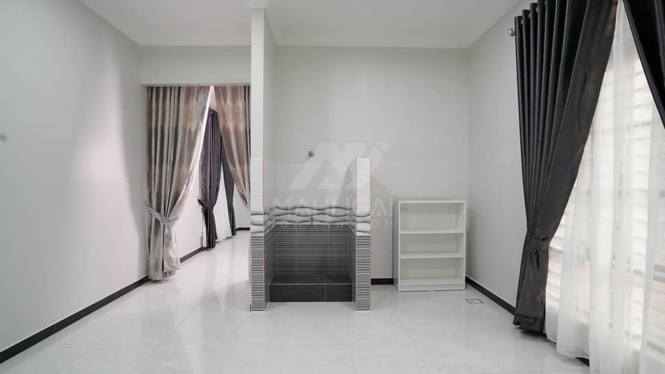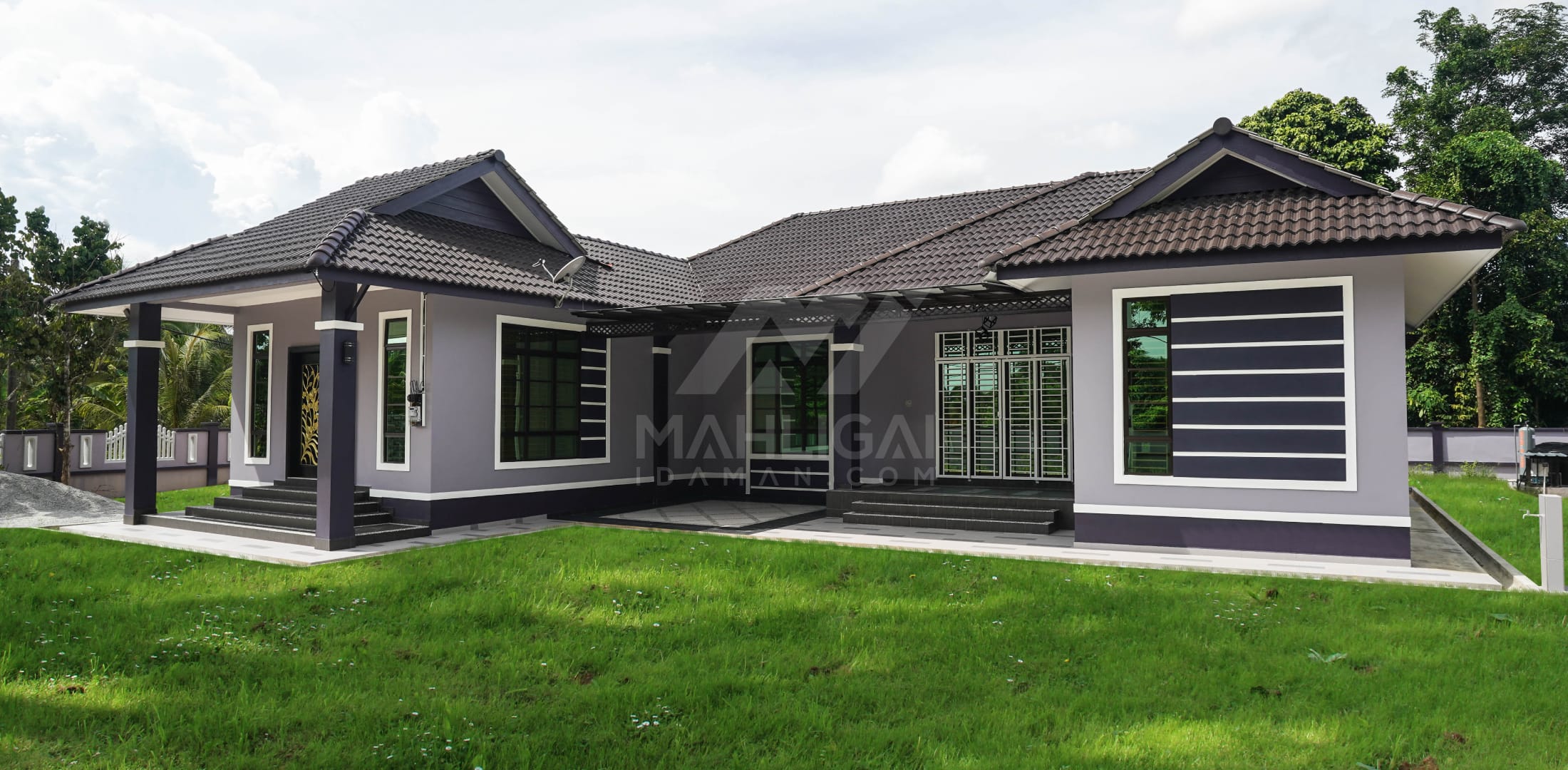 Banglo 1 tingkat milik klien kami yang telah siap dibina sepenuhnya di Pasir Tumboh, Kelantan ini mempunyai empat bilik tidur dan empat bilik air. Dengan keluasan 2338 kaki persegi, banglo ini menggabungkan ciri-ciri banglo moden iaitu dari segi rekabentuk yang menarik. Dari segi penggunaan tona warna pula, gabungan warna purple dan kelabu akan menaikkan lagi kontra warna tersebut.