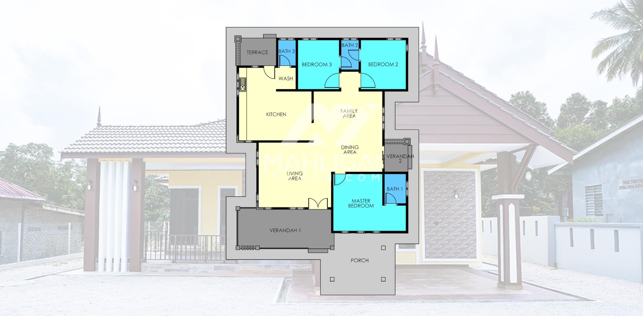 Banglo milik klien kami En Zaman telah siap dibina sepenuhnya di Jeli dilengkapi dengan tiga bilik tidur dan tiga bilik air. Banglo yang berkeluasan 2,196 kaki persegi, banglo ini menggabungkan ciri-ciri banglo moden iaitu dari segi rekabentuk dalaman dan luaran yang sangat menarik. Dari segi penggunaan tona warna pula, gabungan warna coklat dan kuning akan menaikkan lagi kontra warna tersebut serta kelihatan lebih menarik.