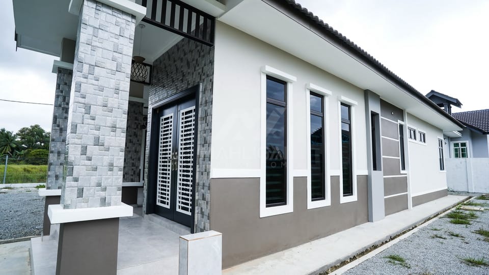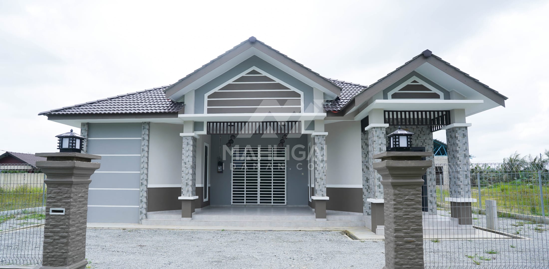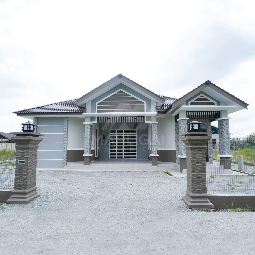 Kini banglo milik klien kami En Harith telah siap dibina sepenuhnya di Pasir Tumboh, Kelantan dilengkapi dengan empat bilik tidur dan empat bilik air. Banglo yang berkeluasan 2,134 kaki persegi, banglo ini menggabungkan ciri-ciri banglo moden iaitu dari segi rekabentuk dalaman dan luaran yang sangat menarik. Dari segi penggunaan tona warna pula, gabungan warna brown dan light grey akan menaikkan lagi kontra warna tersebut serta kelihatan lebih menarik.